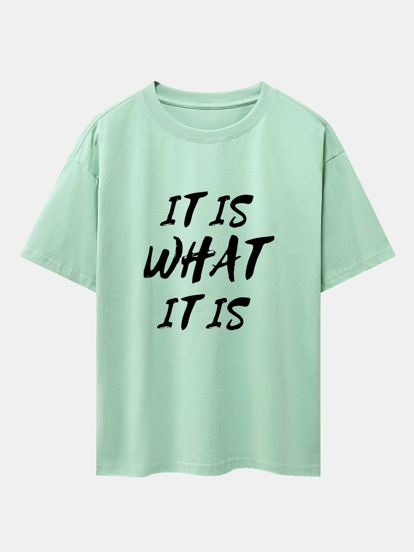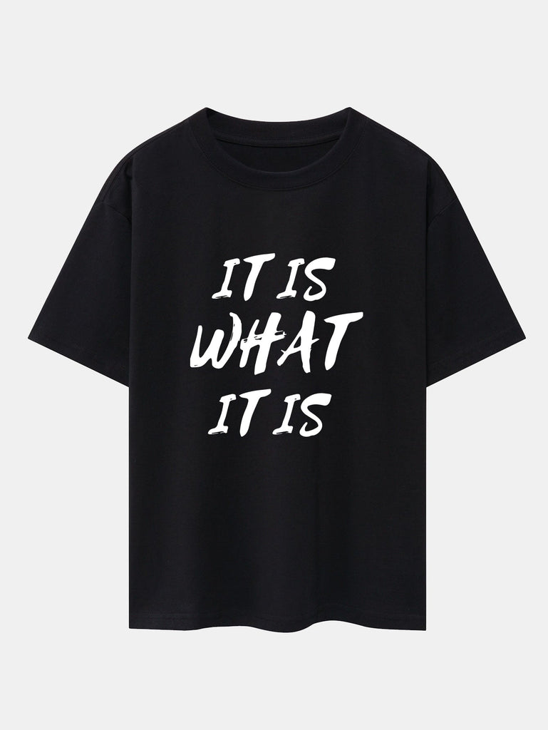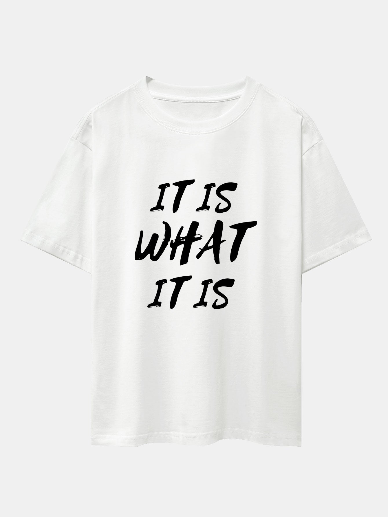 It Is What It Is Print Drop Shoulder Oversize T-Shirt