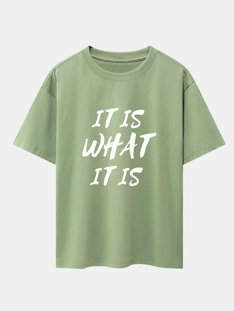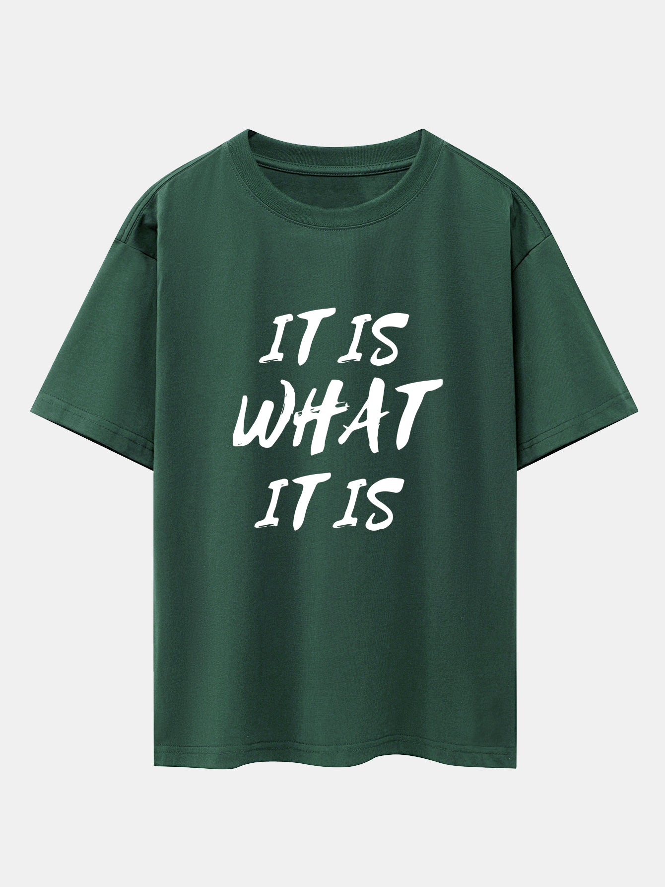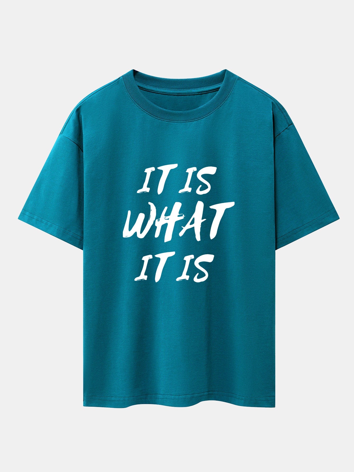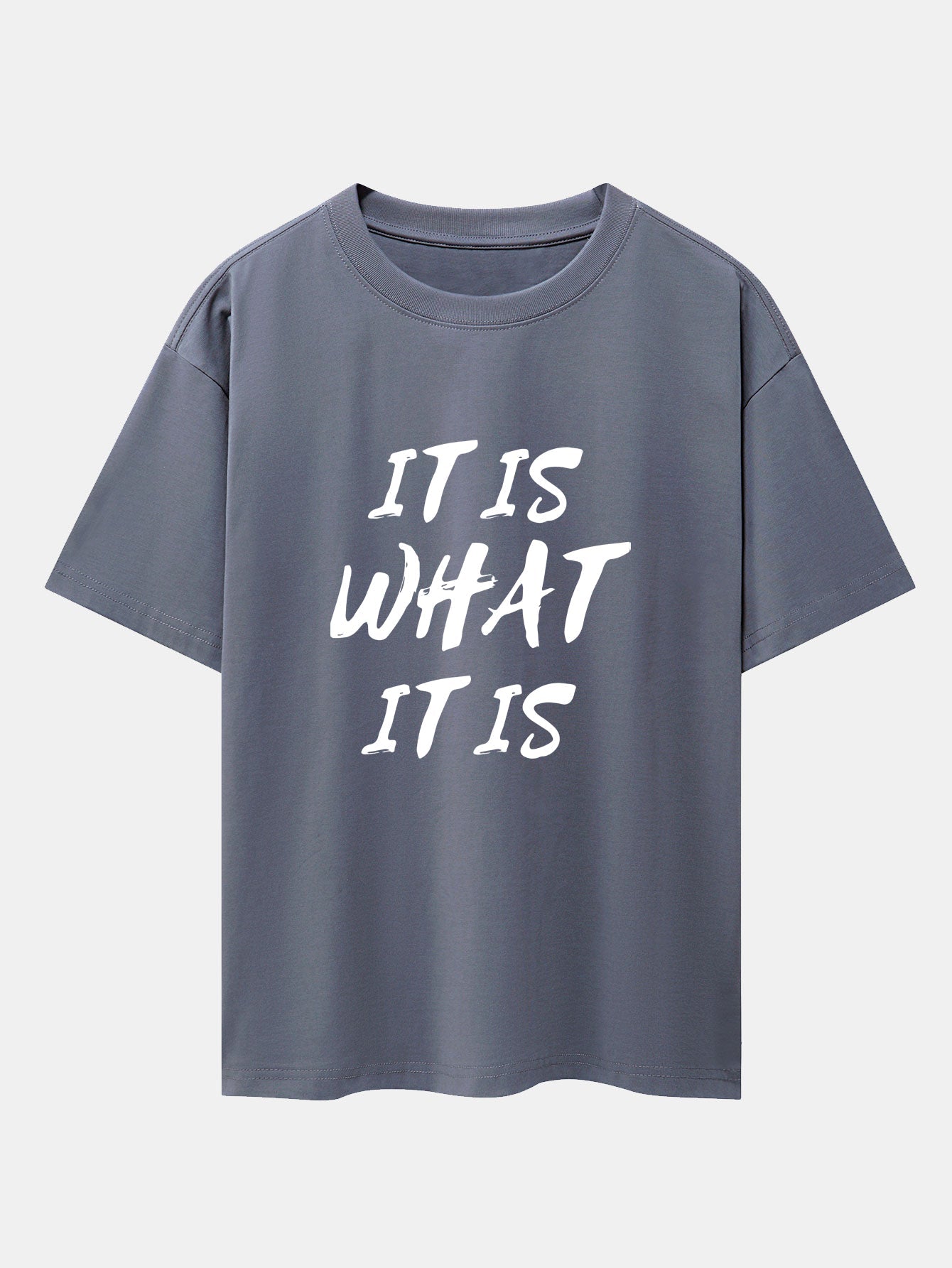 It Is What It Is Print Drop Shoulder Oversize T-Shirt