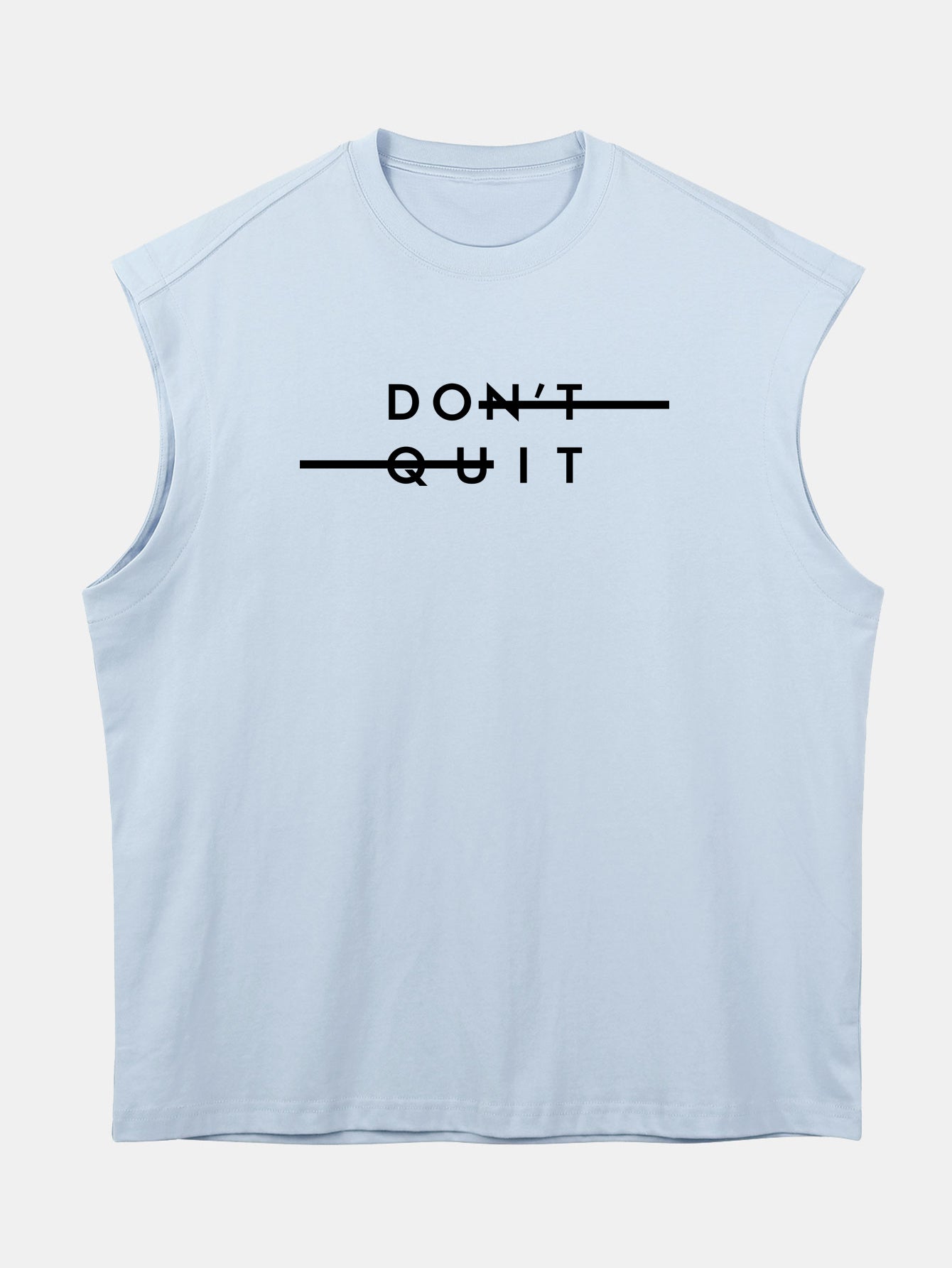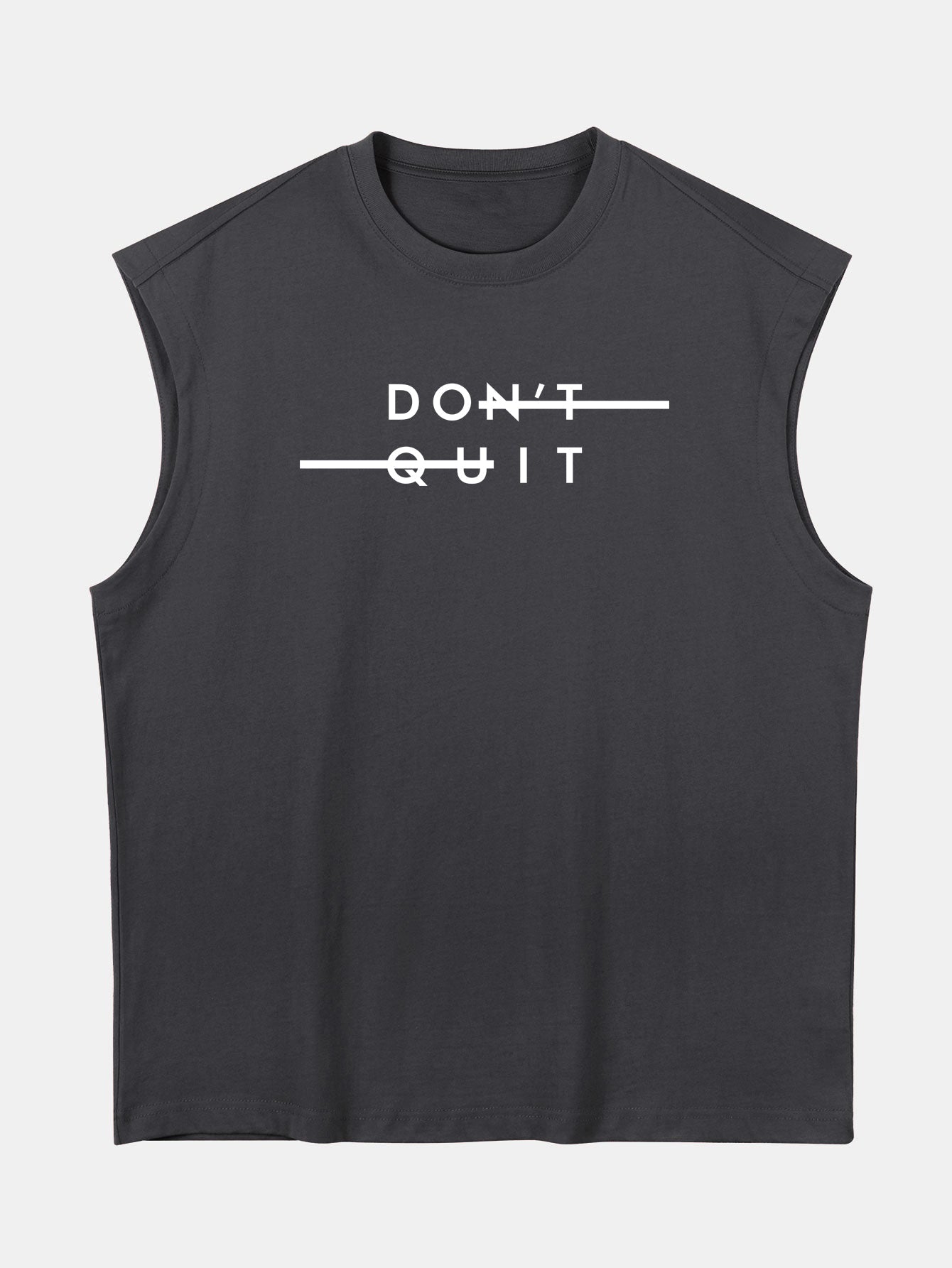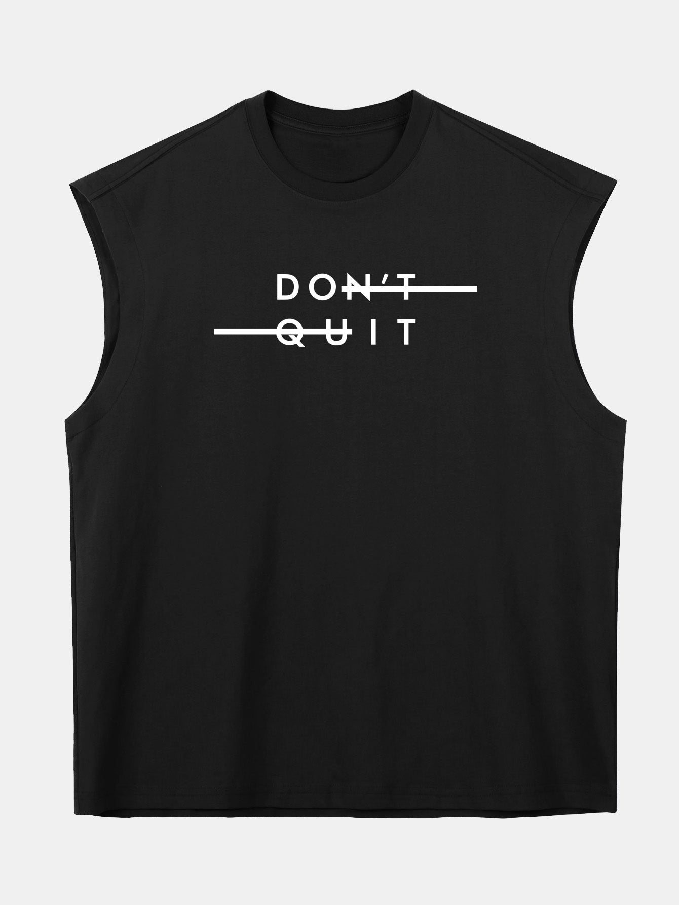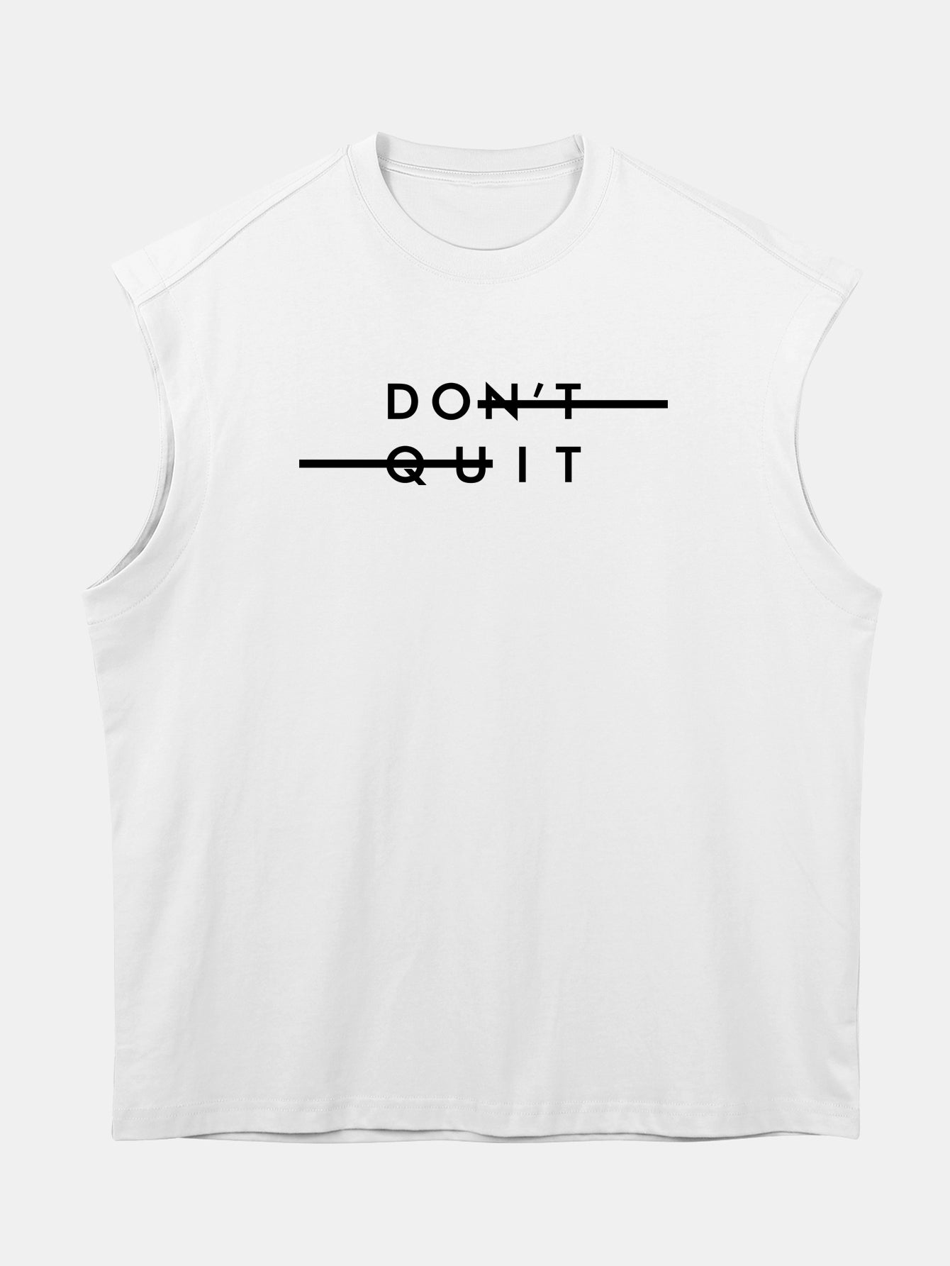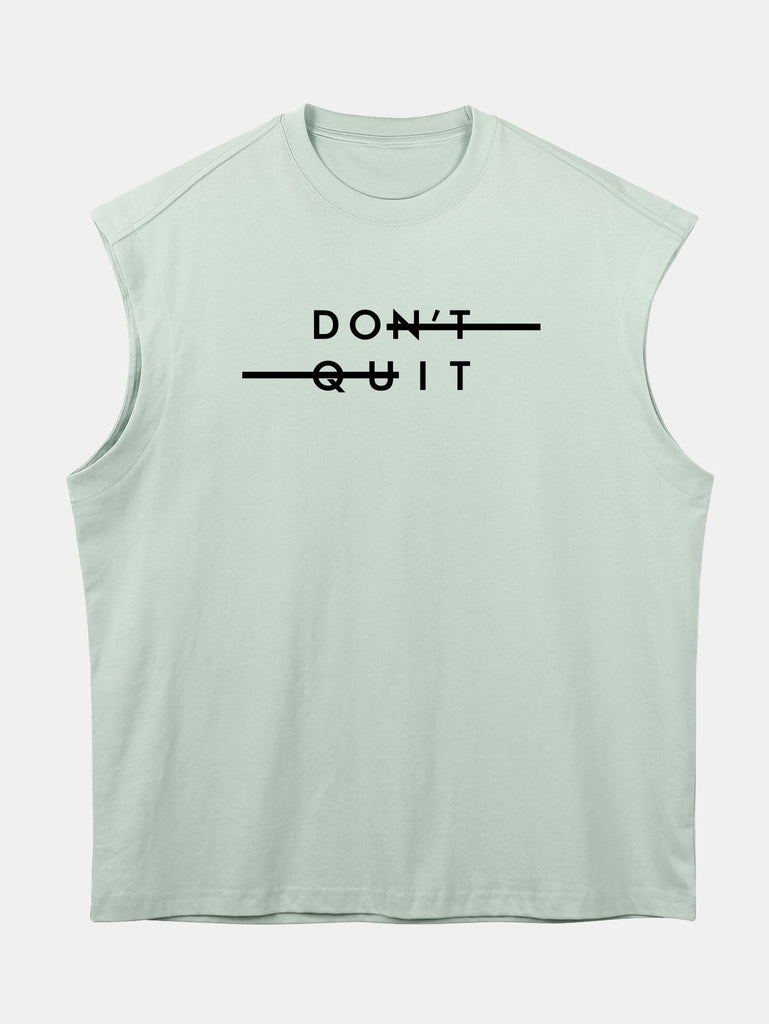 Stay inspired in style with this relaxed-fit sleeveless T-shirt. Featuring a bold ¡°Don¡¯t Quit¡± slogan print, it¡¯s a reminder to keep pushing forward. Made from soft, breathable cotton with drop shoulders and an oversized silhouette, this tee combines comfort with a confident, street-smart vibe.