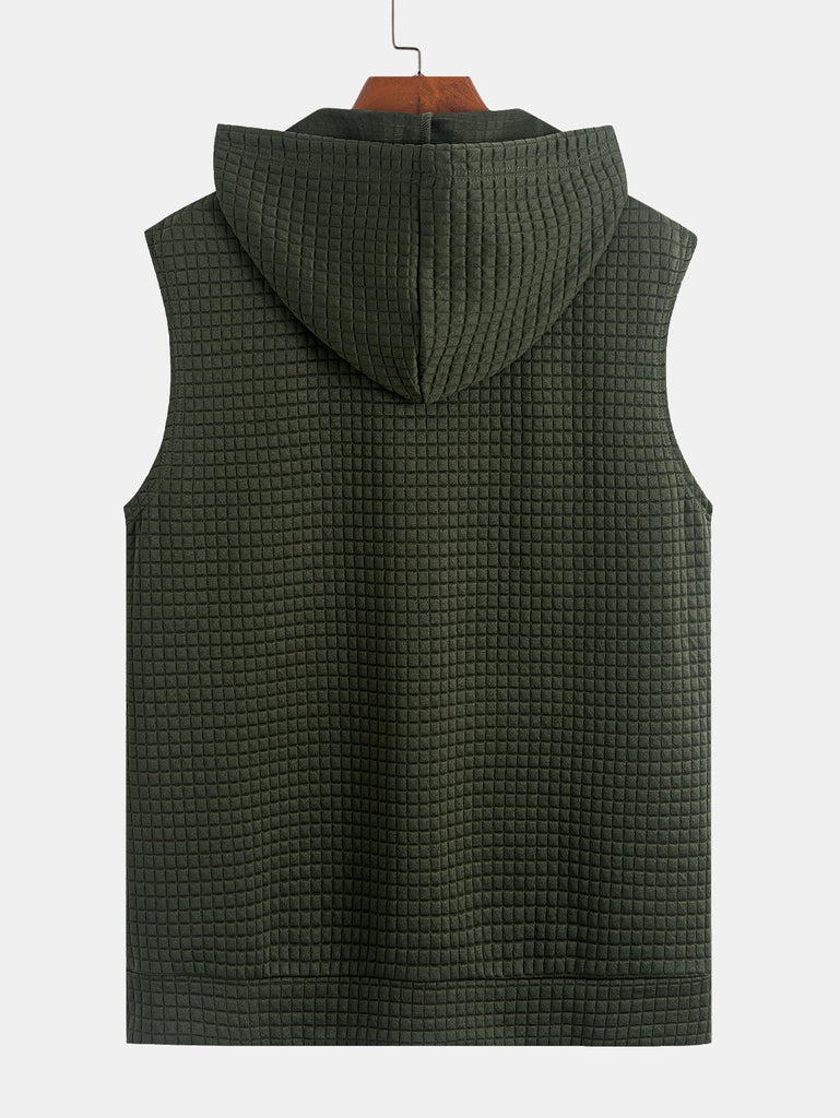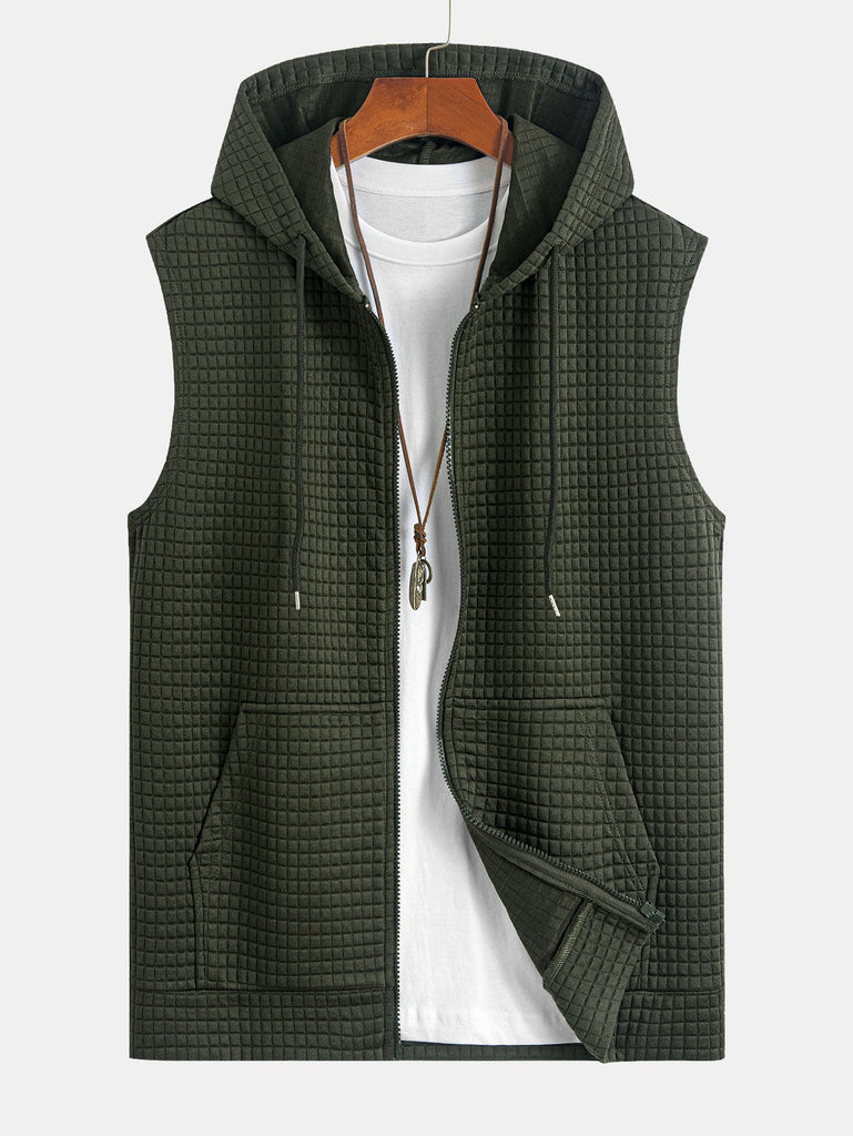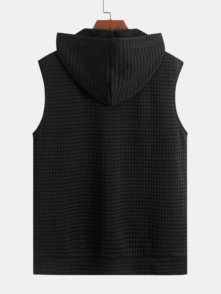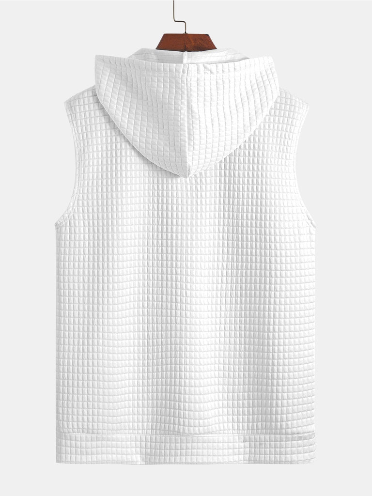 Sleeveless Waffle Zipper Hoodie