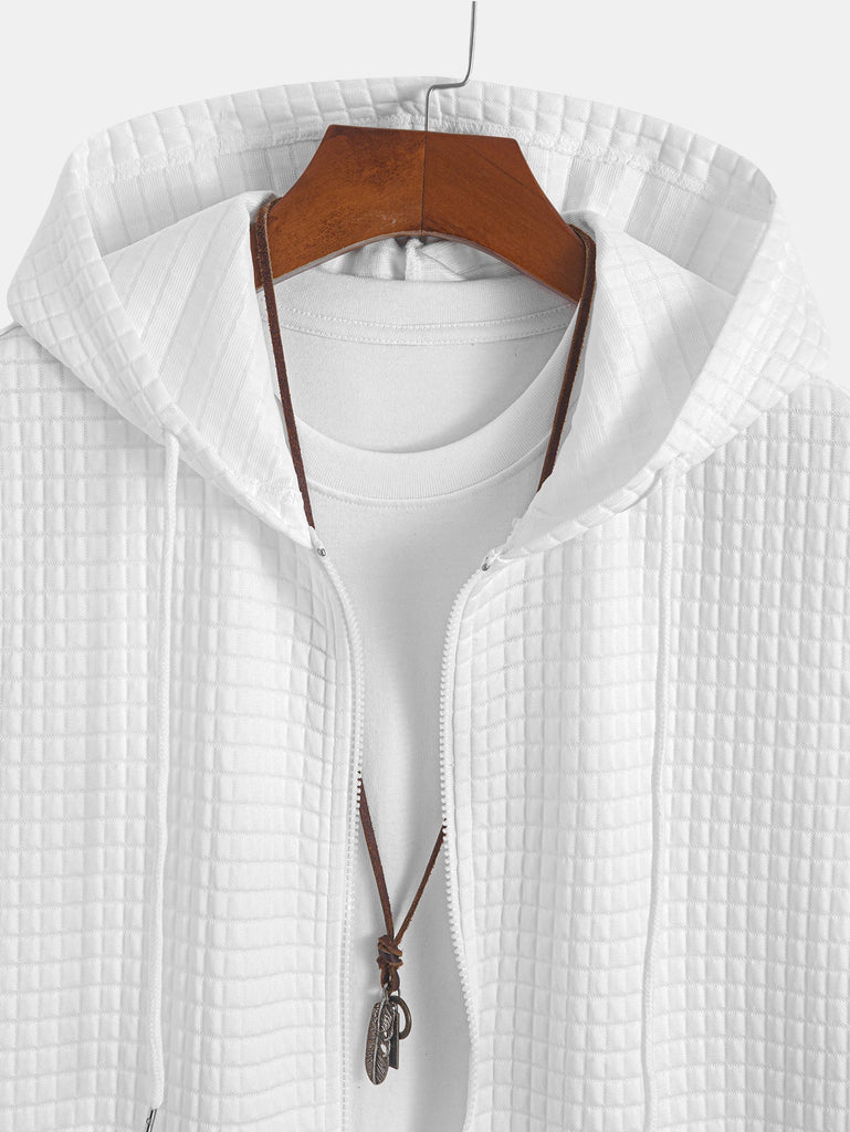 Add a bold touch to your wardrobe with this sleeveless hooded T-shirt featuring a stylish plaid jacquard texture. The front zipper detail offers adjustable comfort and a sporty edge, while the hood brings an urban vibe. Designed for versatility, it¡¯s perfect for layering or making a statement on its own¡ªgreat for casual outings, workouts, or weekend streetwear.