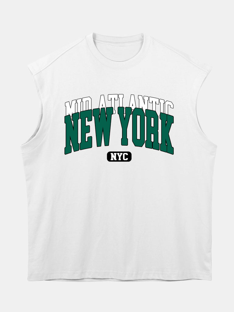 Relax Fit New York Print Cotton Drop Shoulder Sleeveless T-Shirt