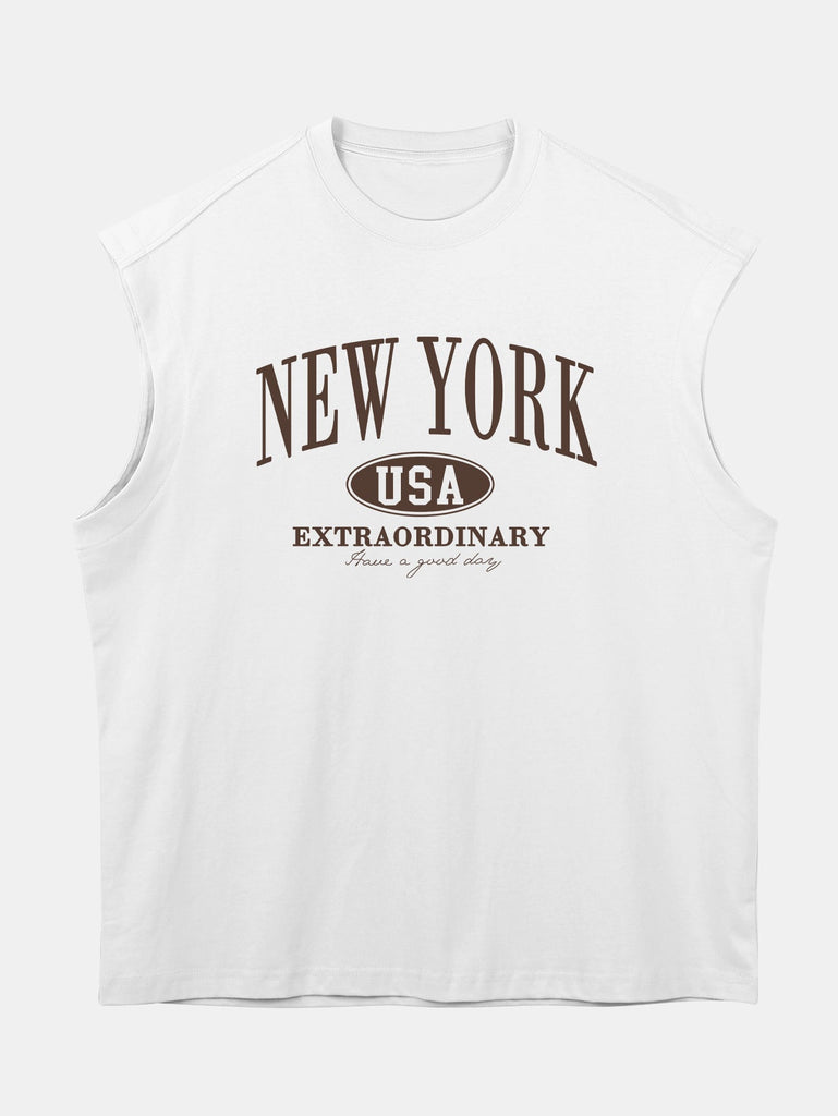 Relax Fit New York Print Cotton Drop Shoulder Sleeveless T-Shirt