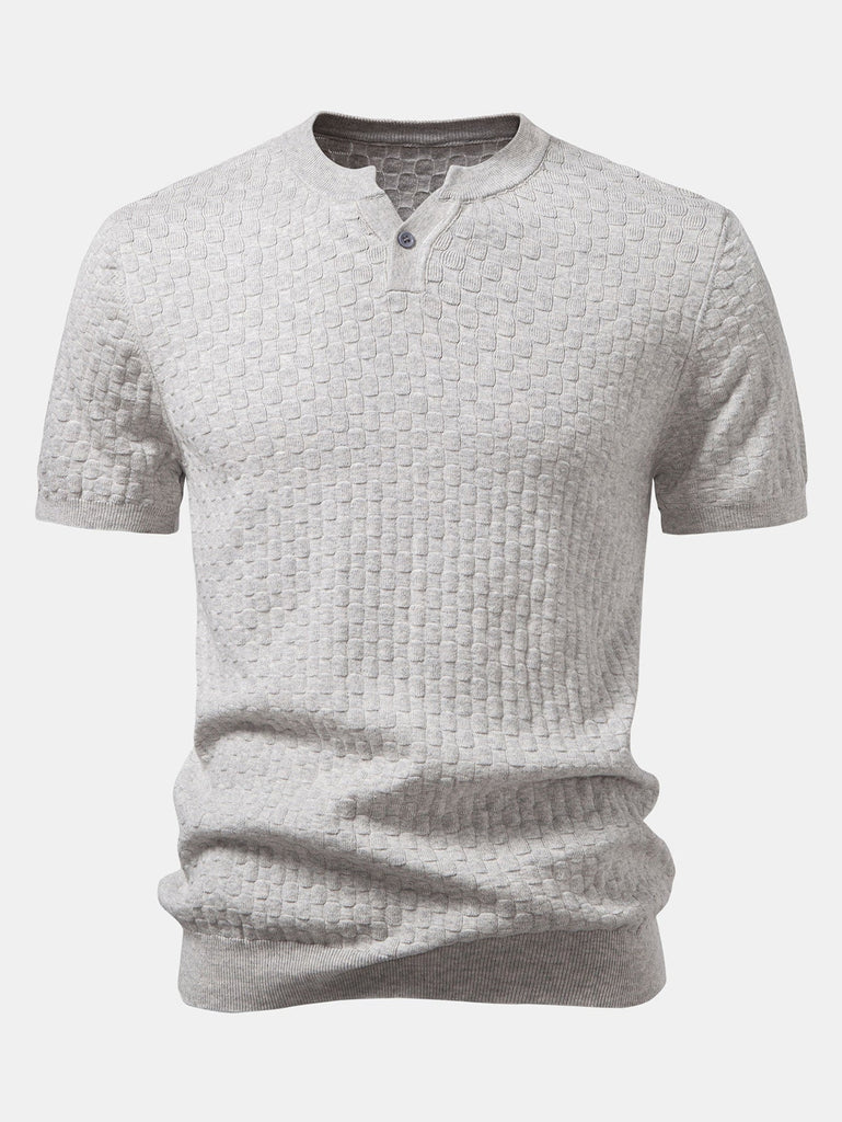 Checkerboard Henley Collar Sweater Knitted T-Shirt