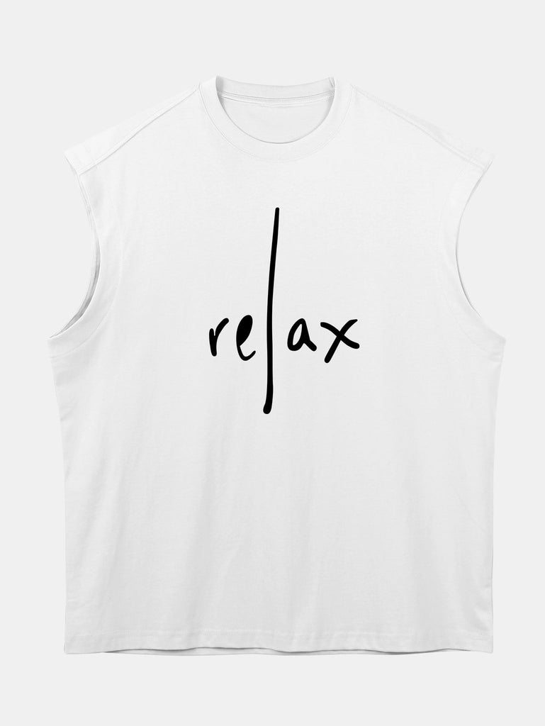 Relax Fit Relax Print Cotton Drop Shoulder Sleeveless T-Shirt