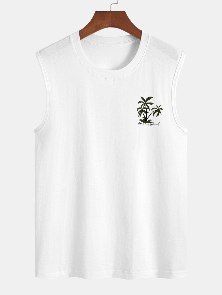 Hawaii Lsland Palm Tree Print Cotton Sleeveless T-Shirt