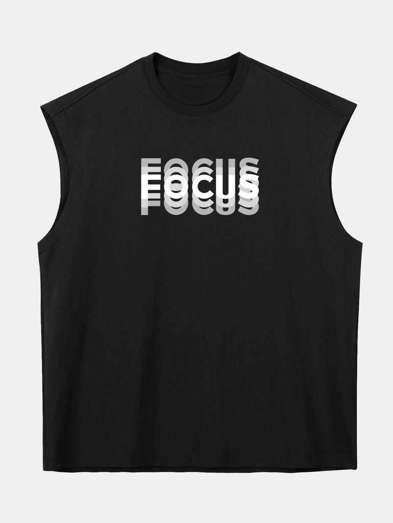 Relax Fit Focus Slogan Print Cotton Drop Shoulder Sleeveless T-Shirt
