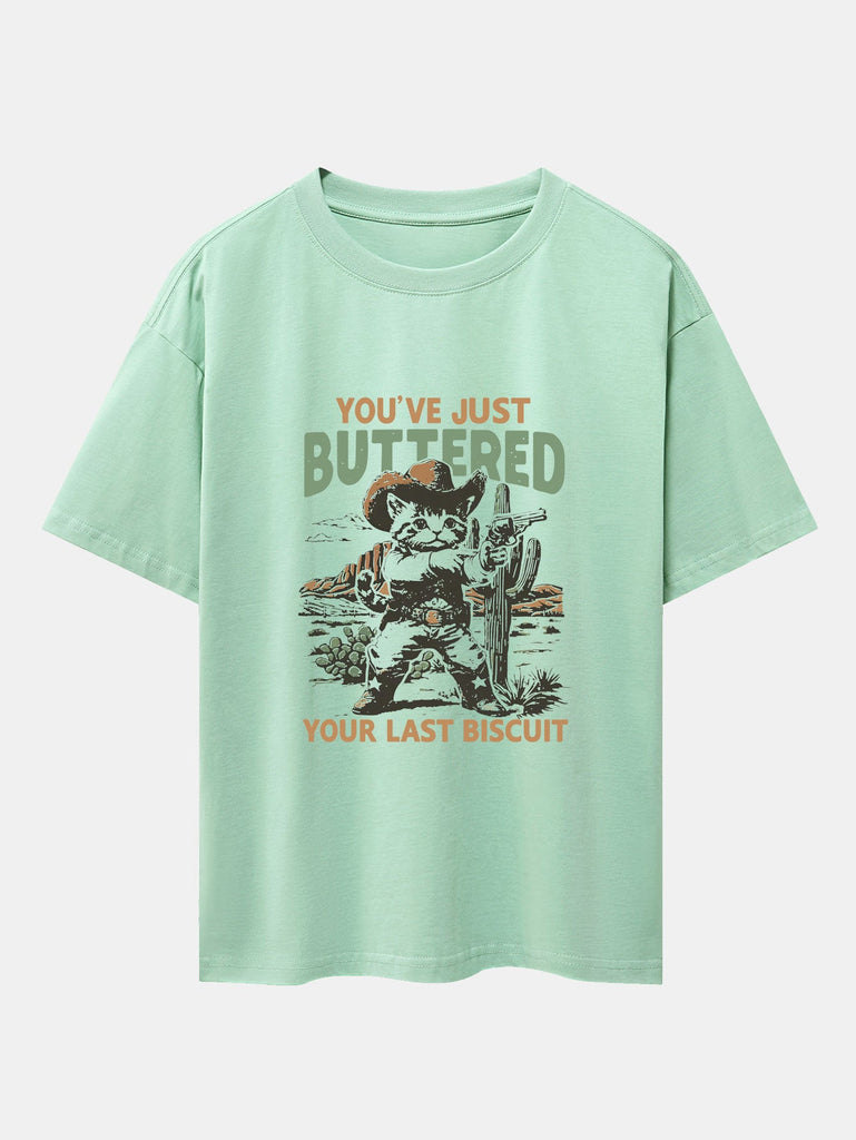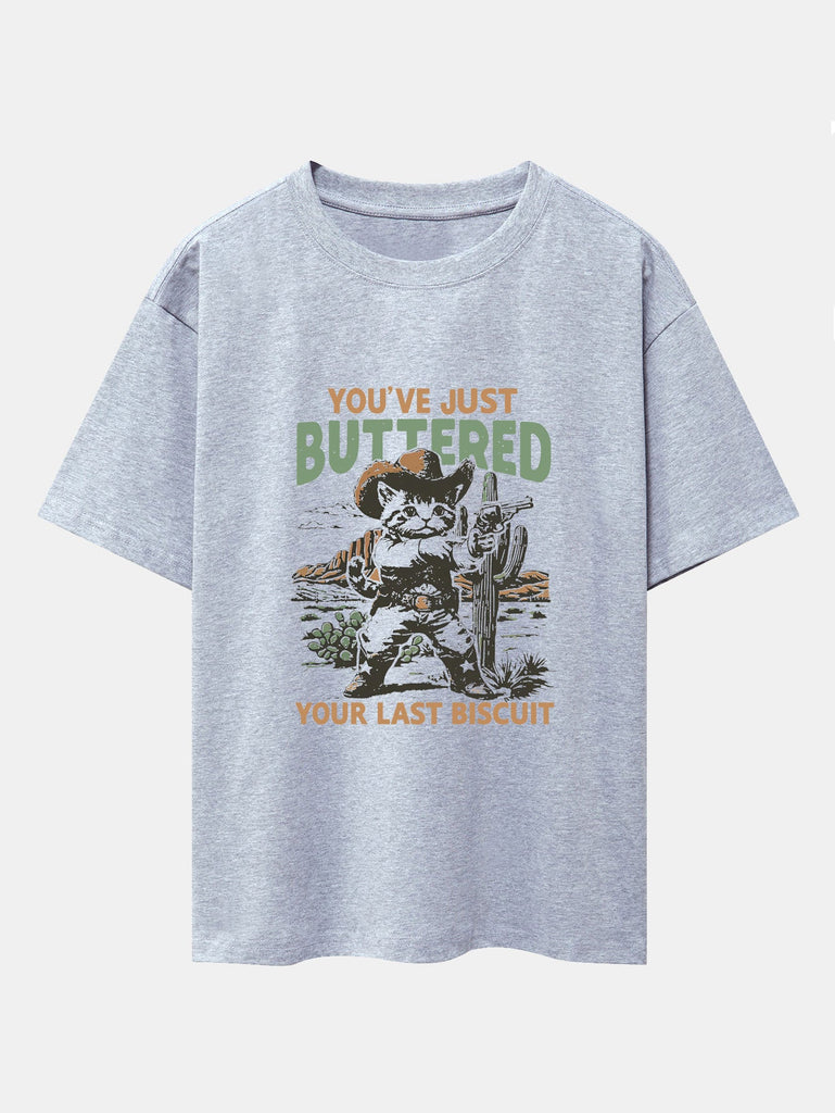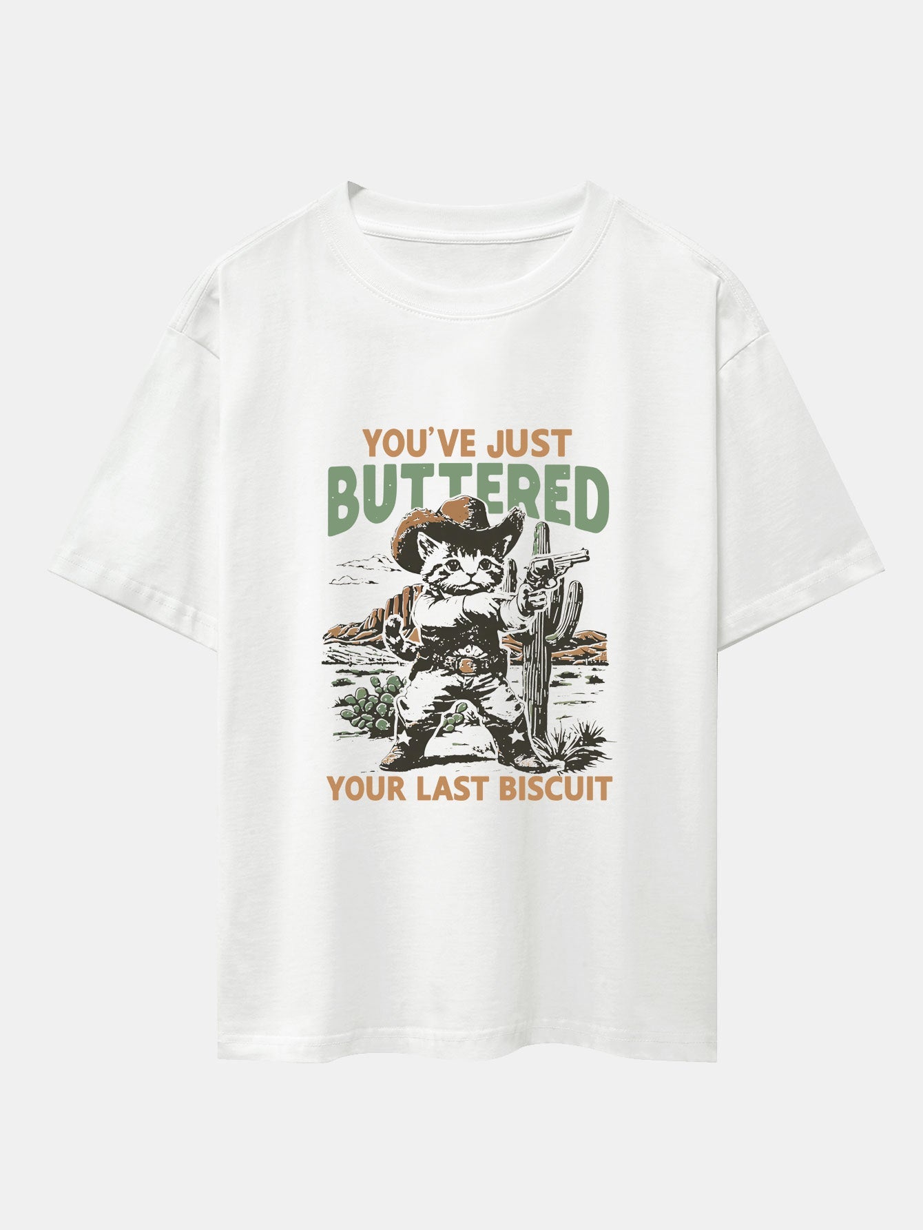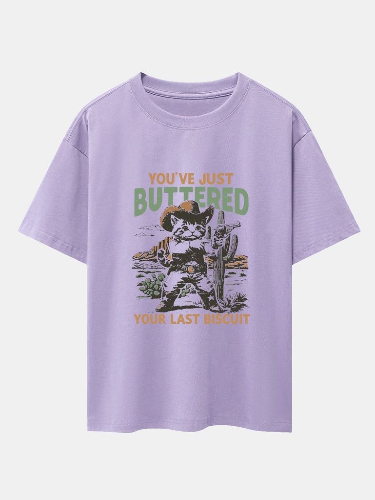Cowboy Cat Print Drop Shoulder Oversize T-Shirt