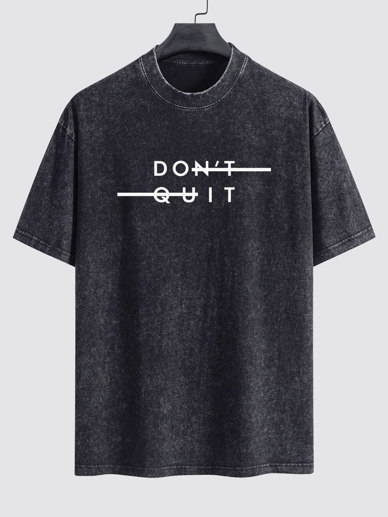 Don't Quit Print Washed Distressed Drop Shoulder T-Shirt