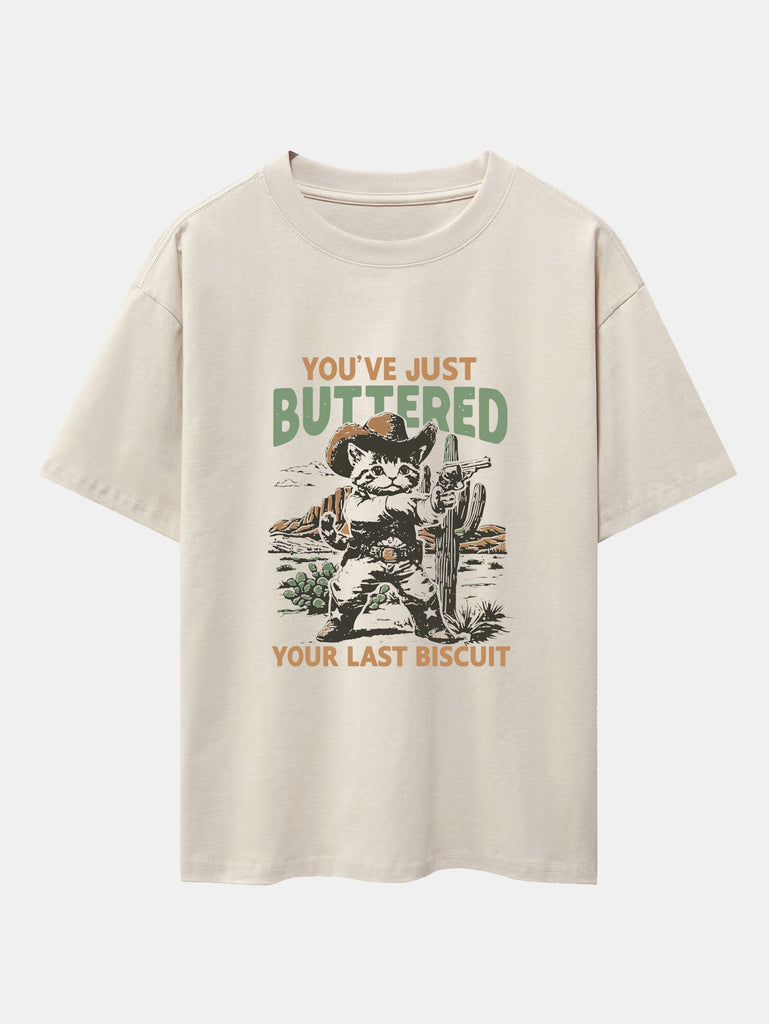 Cowboy Cat Print Drop Shoulder Oversize T-Shirt