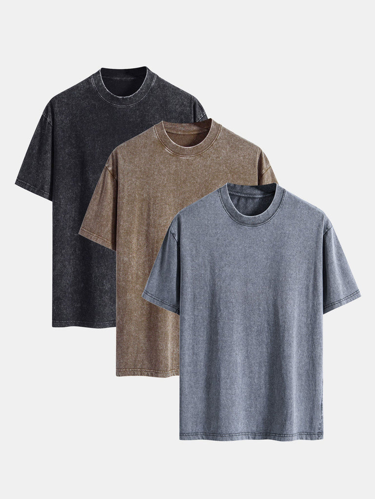 3 Pieces Washed Distressed Drop Shoulder T-Shirt