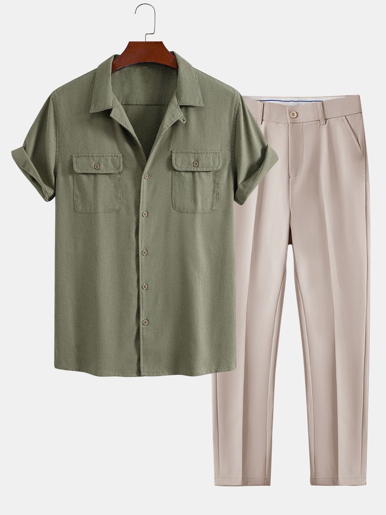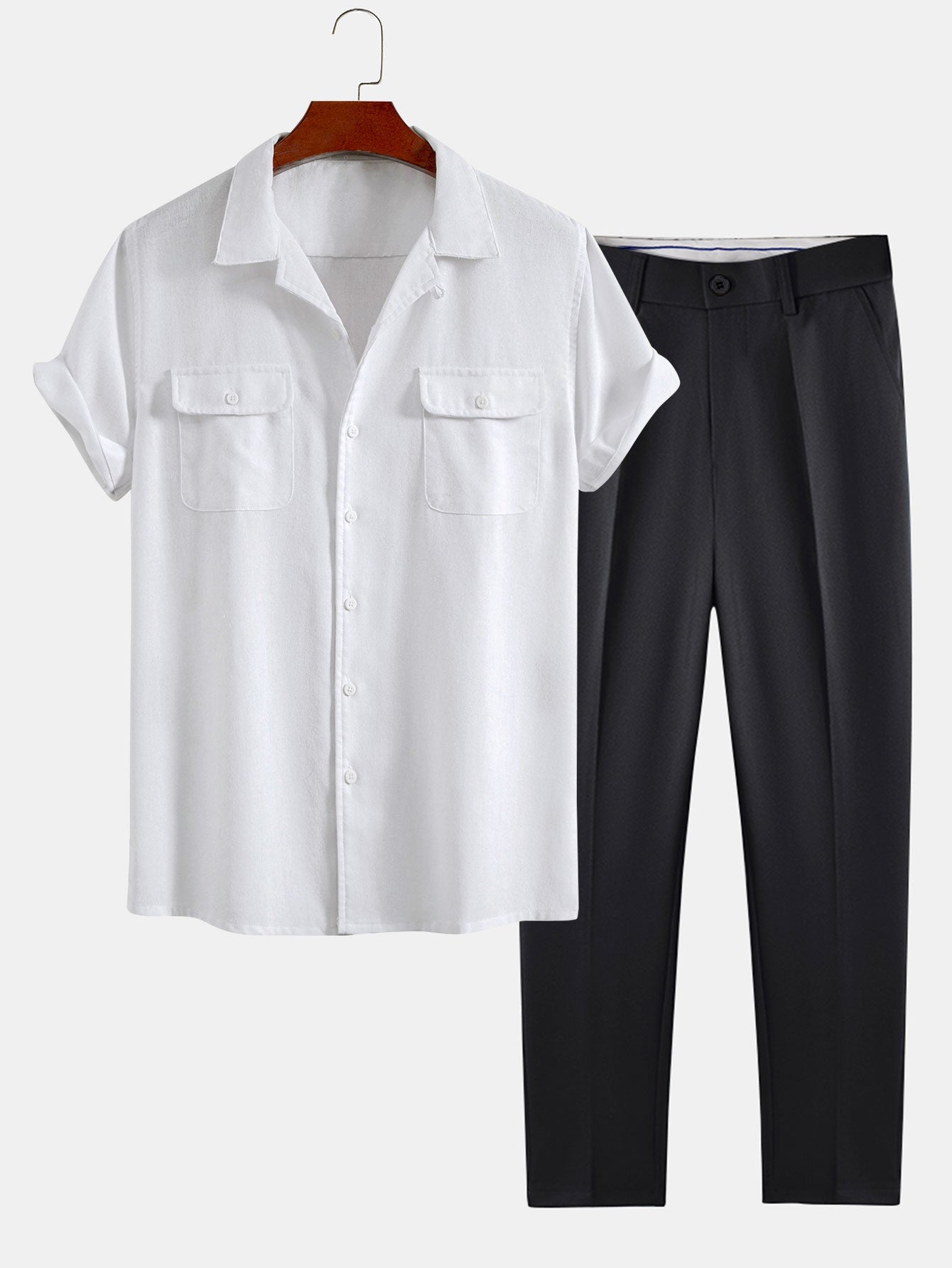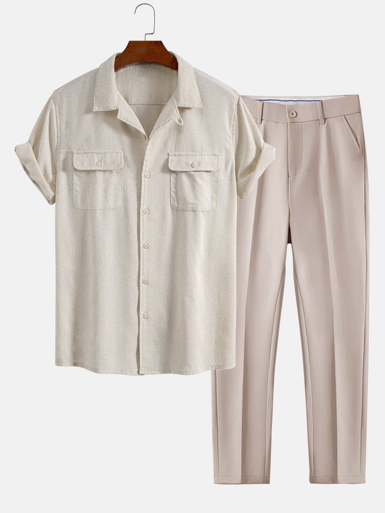 Linen Cuban Shirt With Pockets & Slim Fit Tapered Trousers