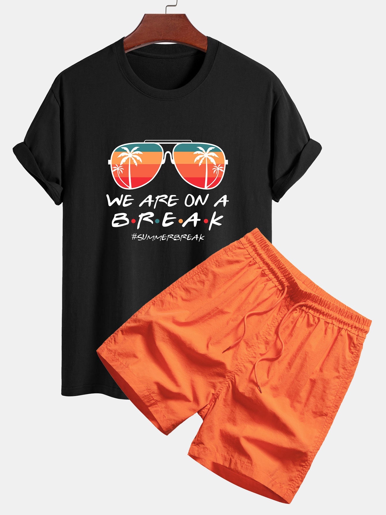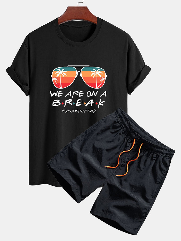 Bring the beach vibes wherever you go with the regular fit sunglasses palm tree print cotton T-shirt & swim shorts set. Featuring a cool sunglasses-and-palm-tree graphic on a soft cotton tee, paired with matching swim shorts, this combo is made for sun, surf, and serious relaxation.