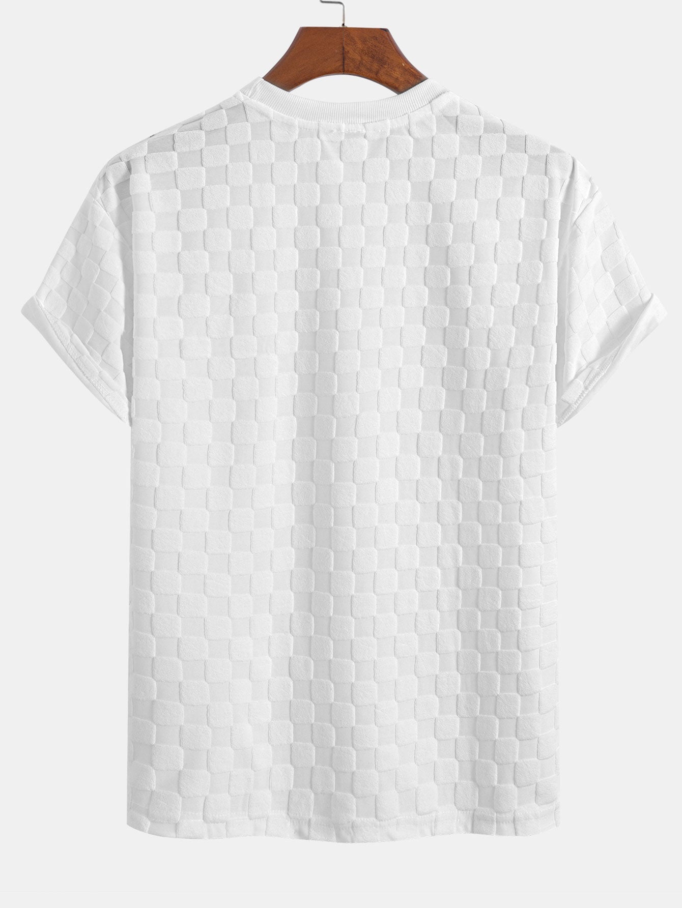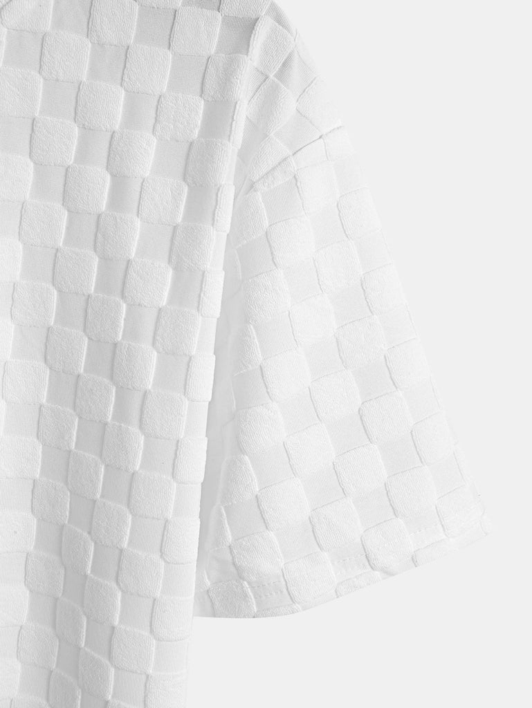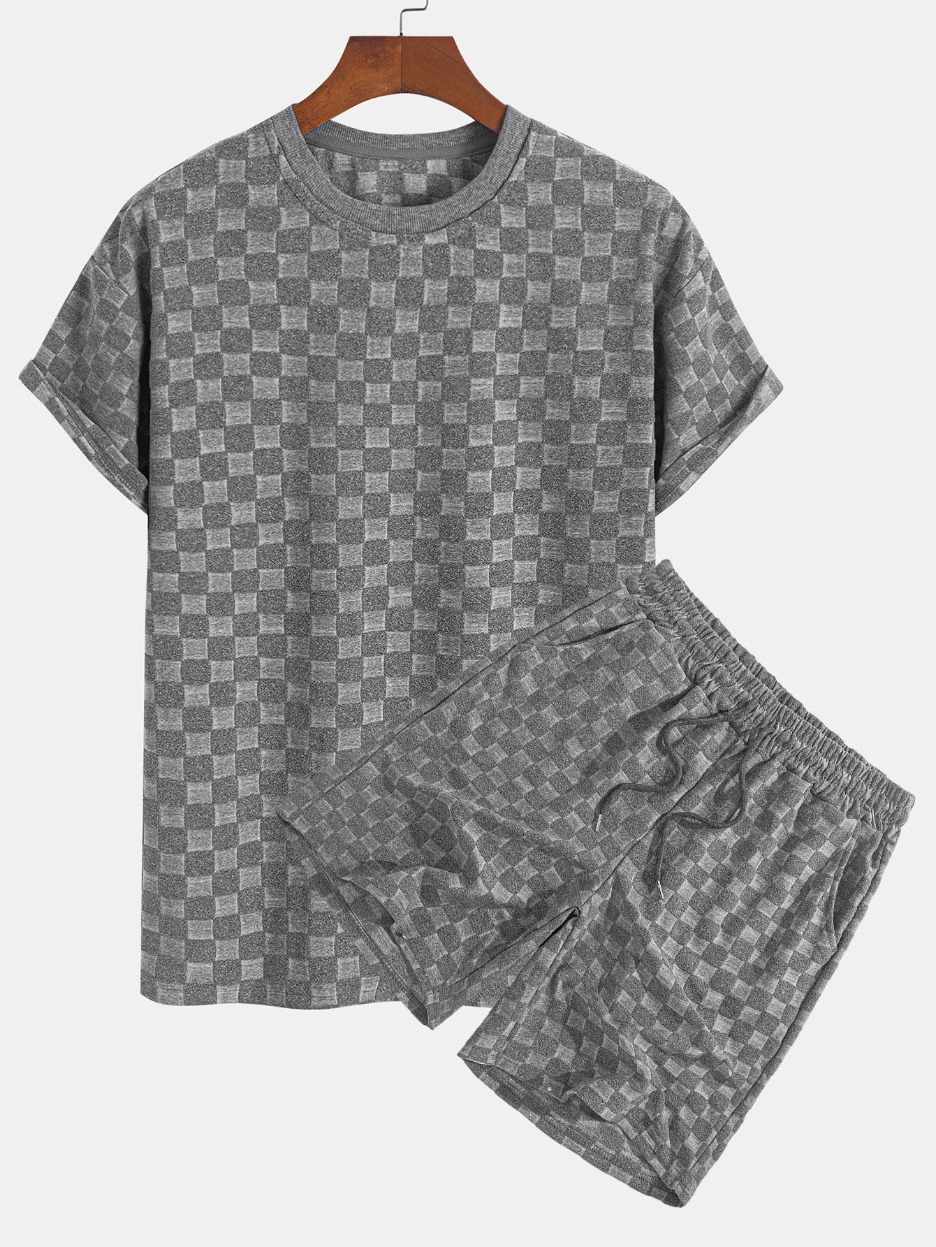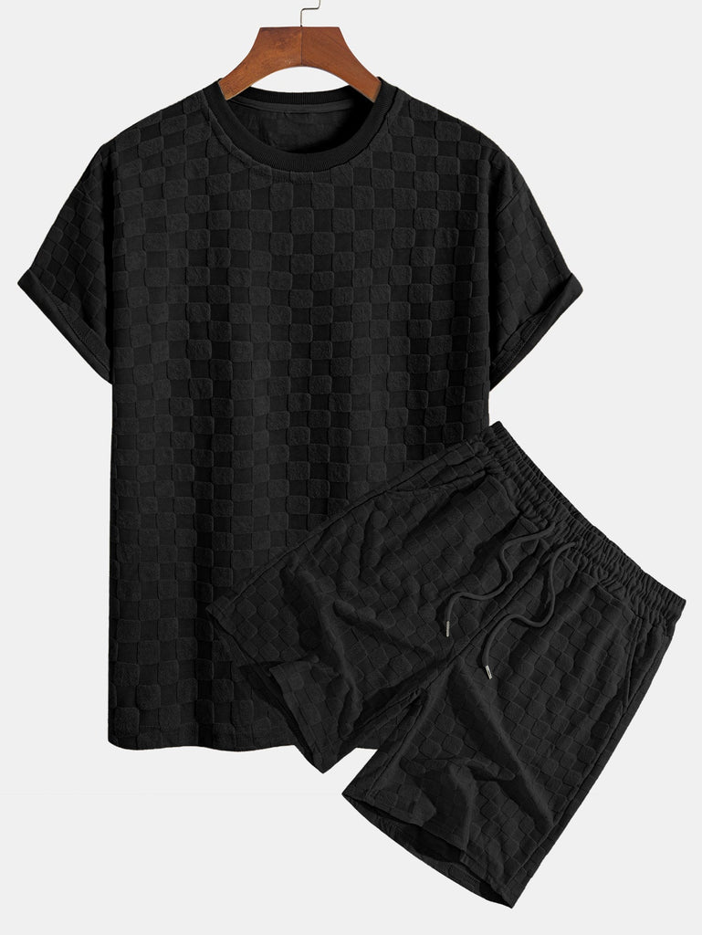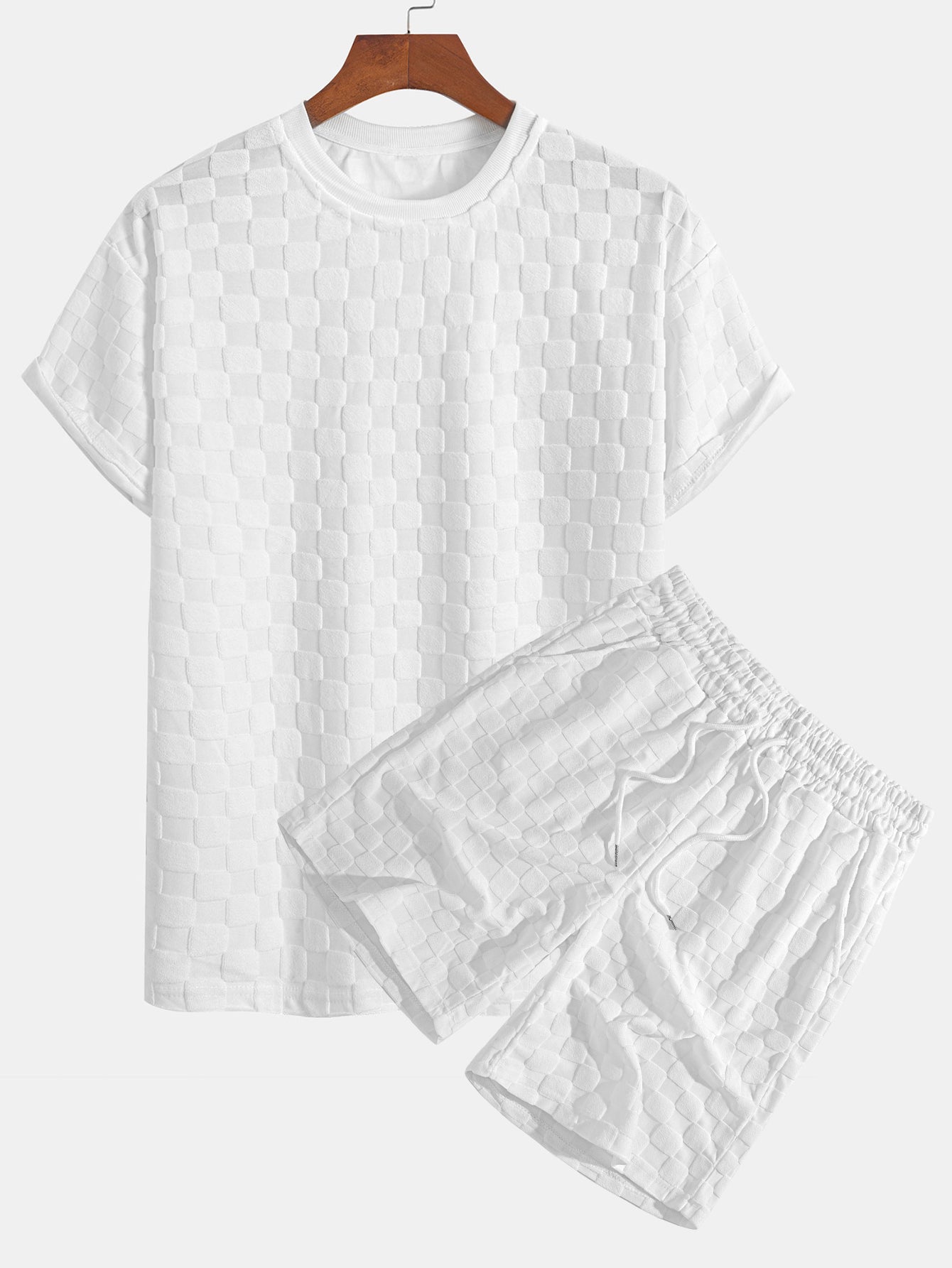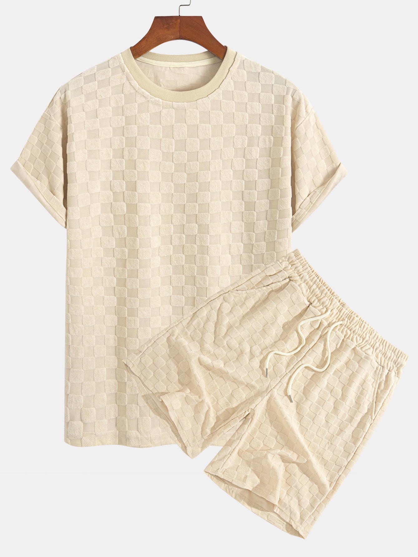Relax Fit Checkerboard Jacquard Casual T-Shirt & Shorts Set