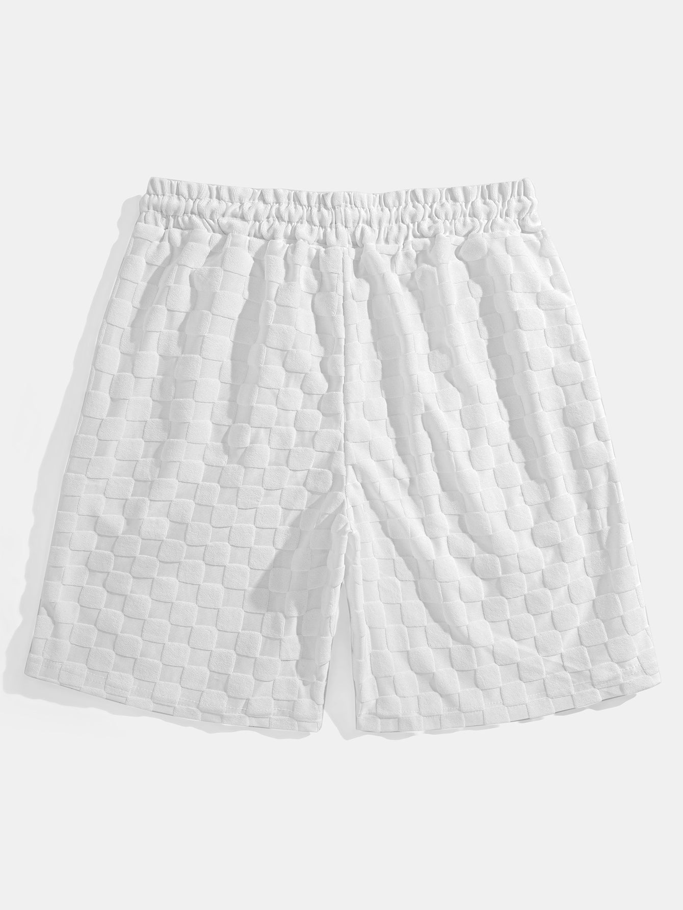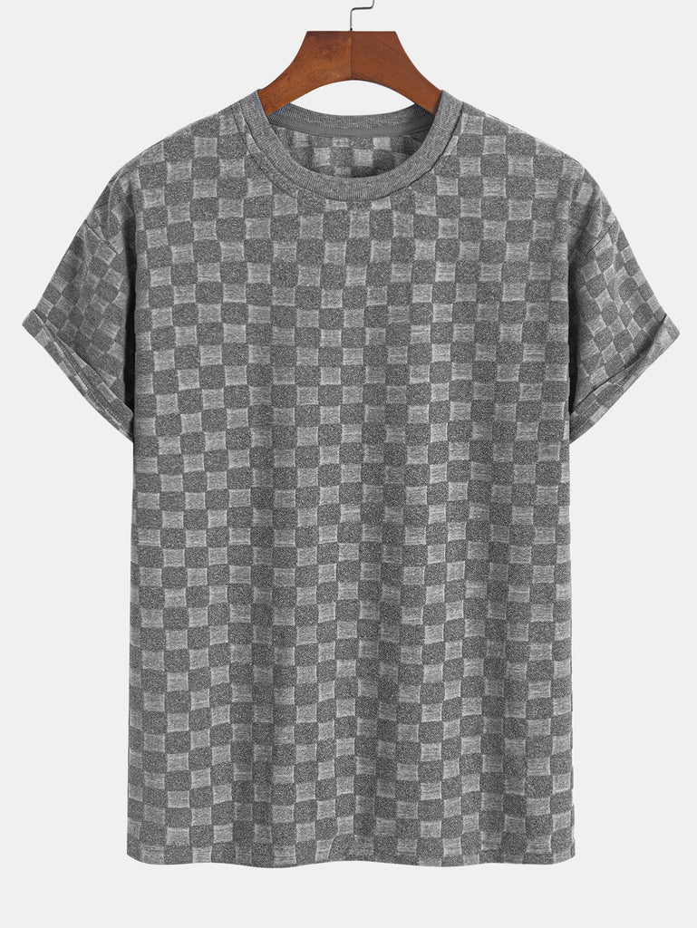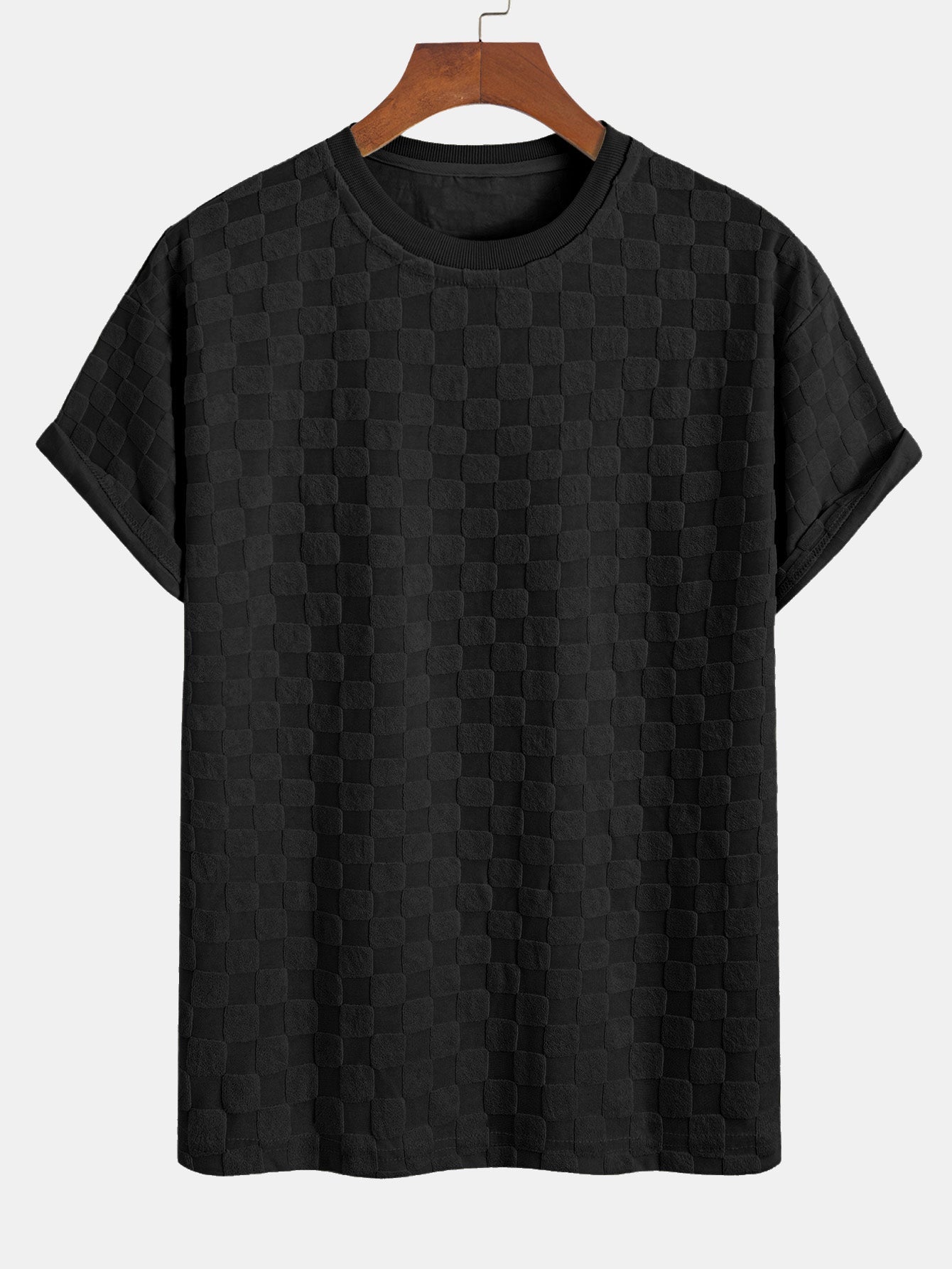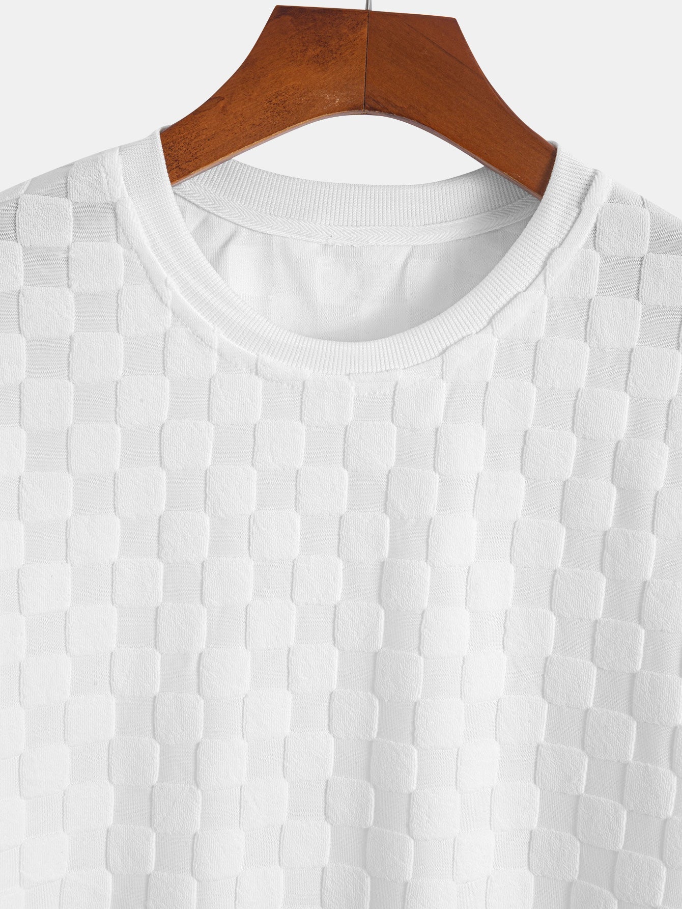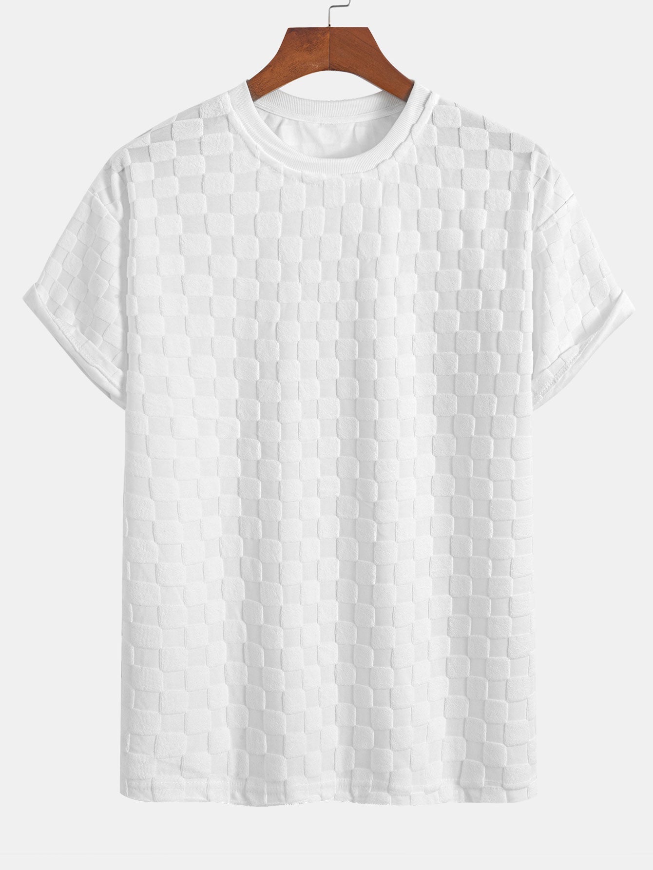 Relax Fit Checkerboard Jacquard Casual T-Shirt & Shorts Set