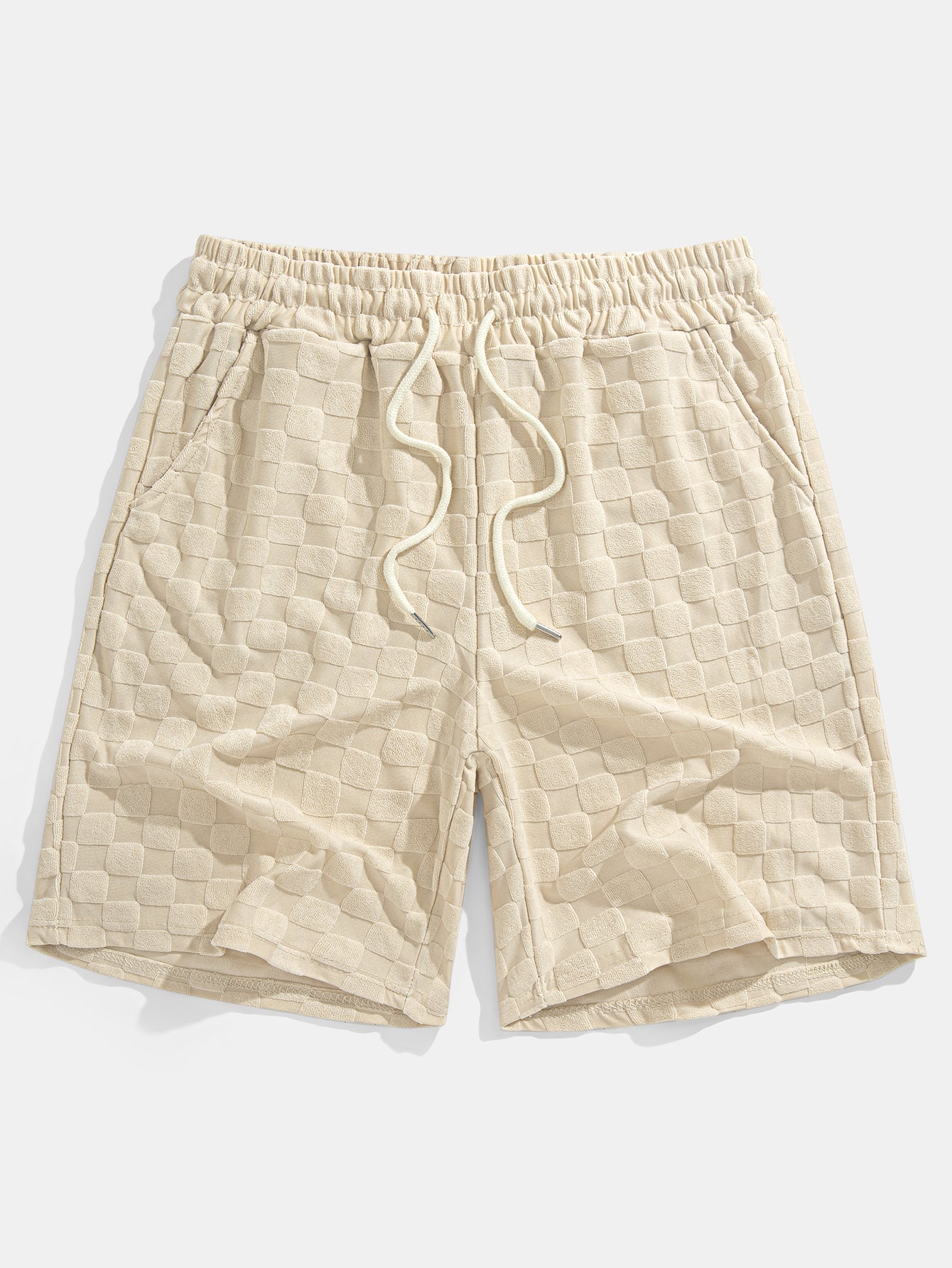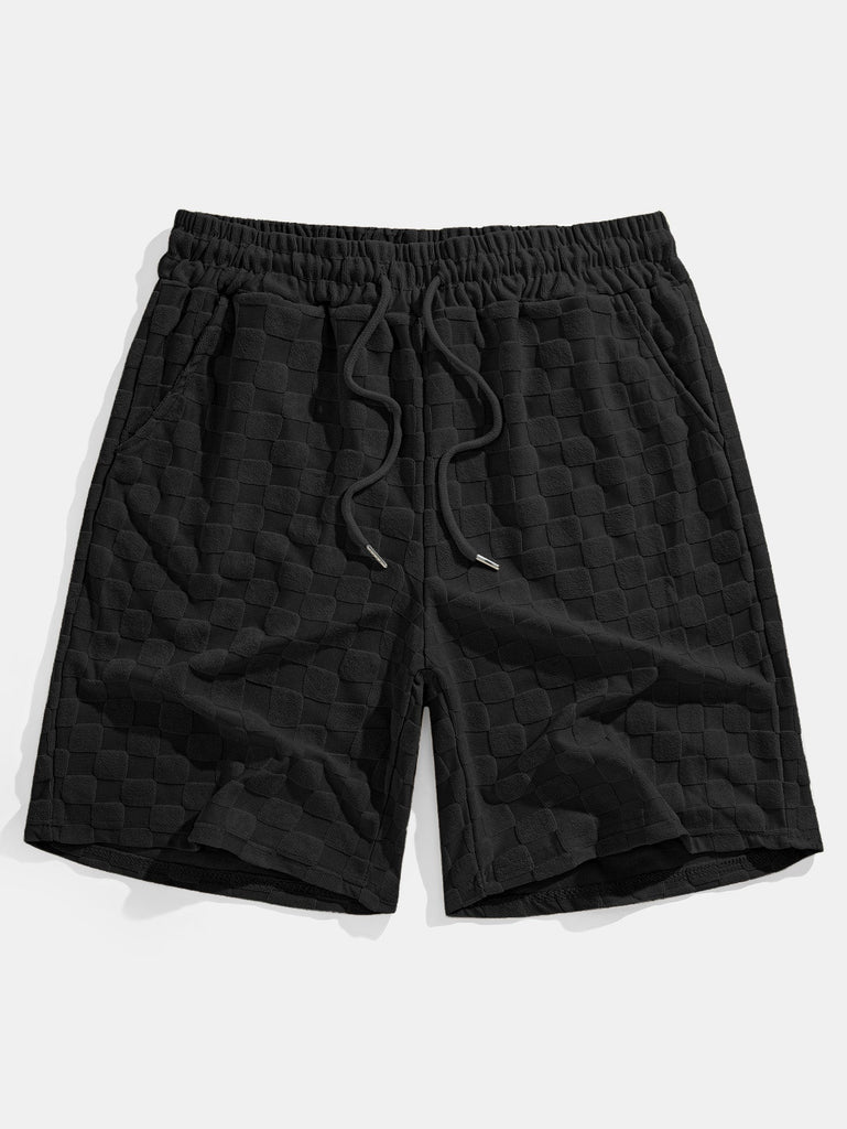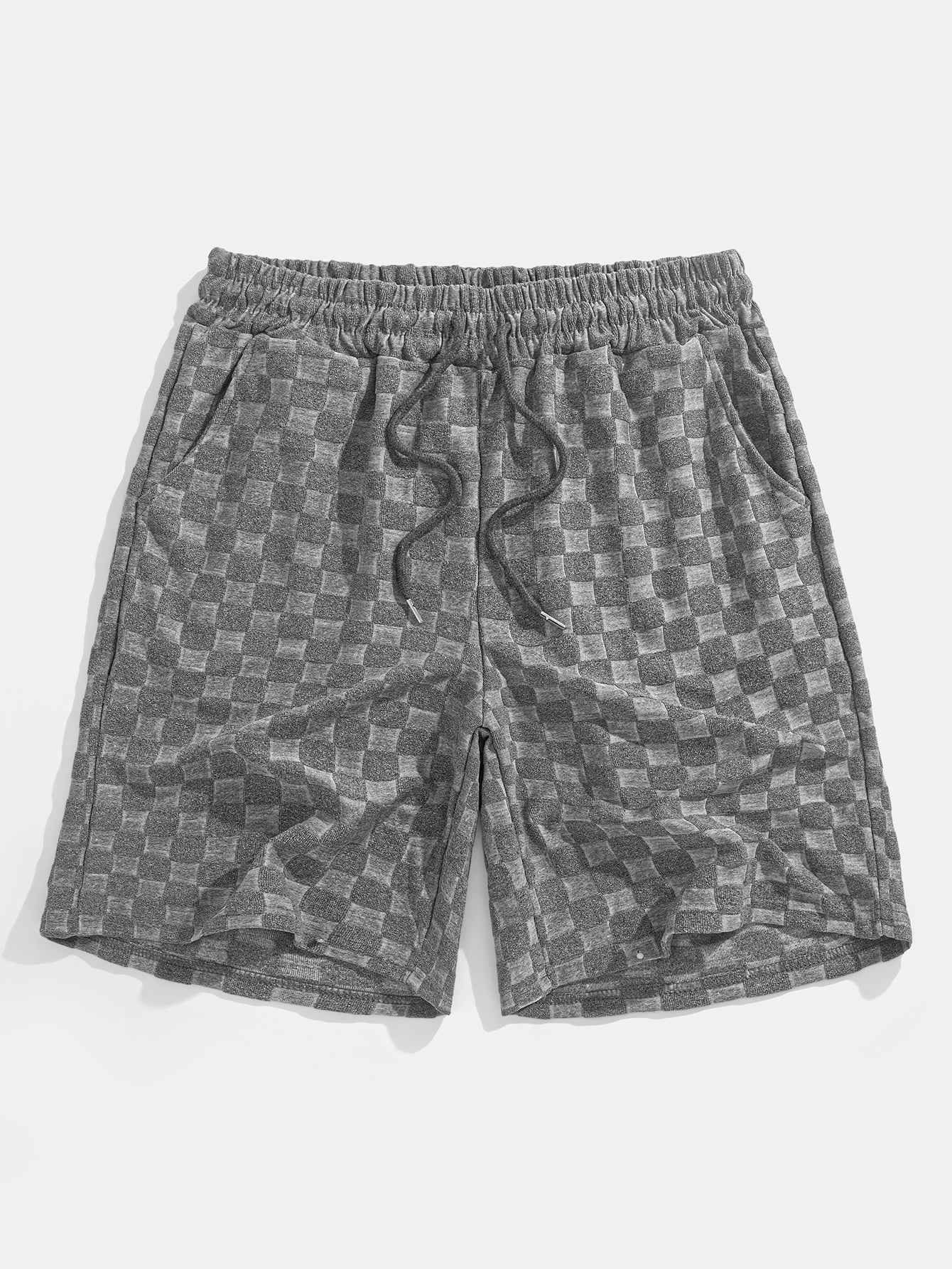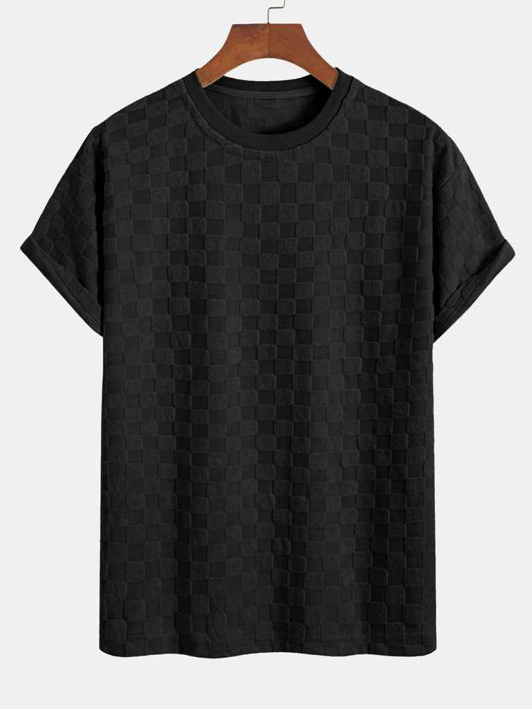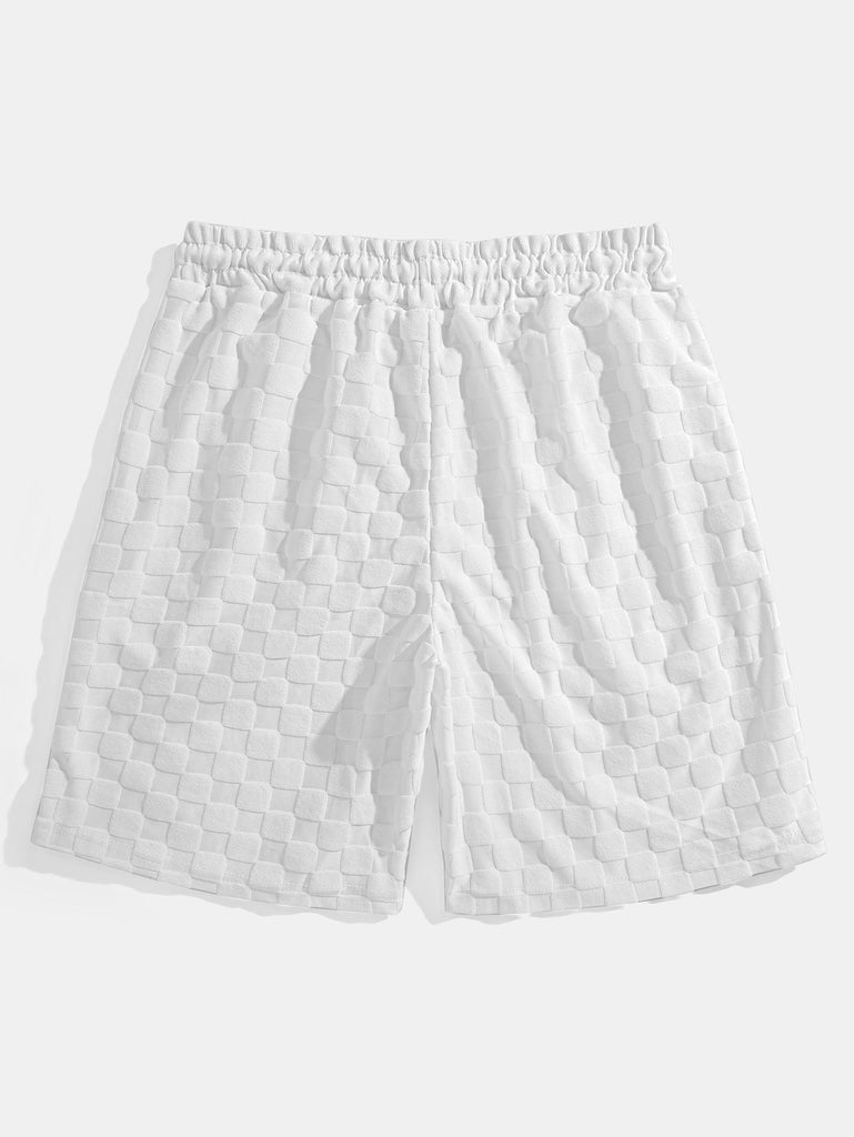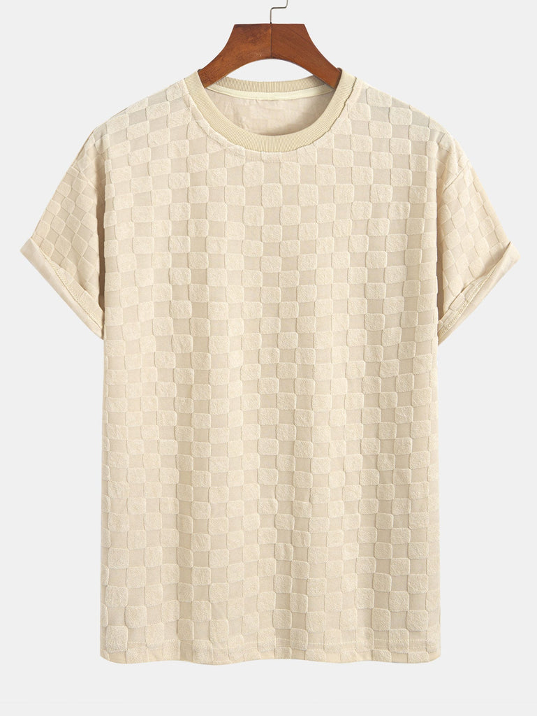 Relax Fit Checkerboard Jacquard Casual T-Shirt & Shorts Set