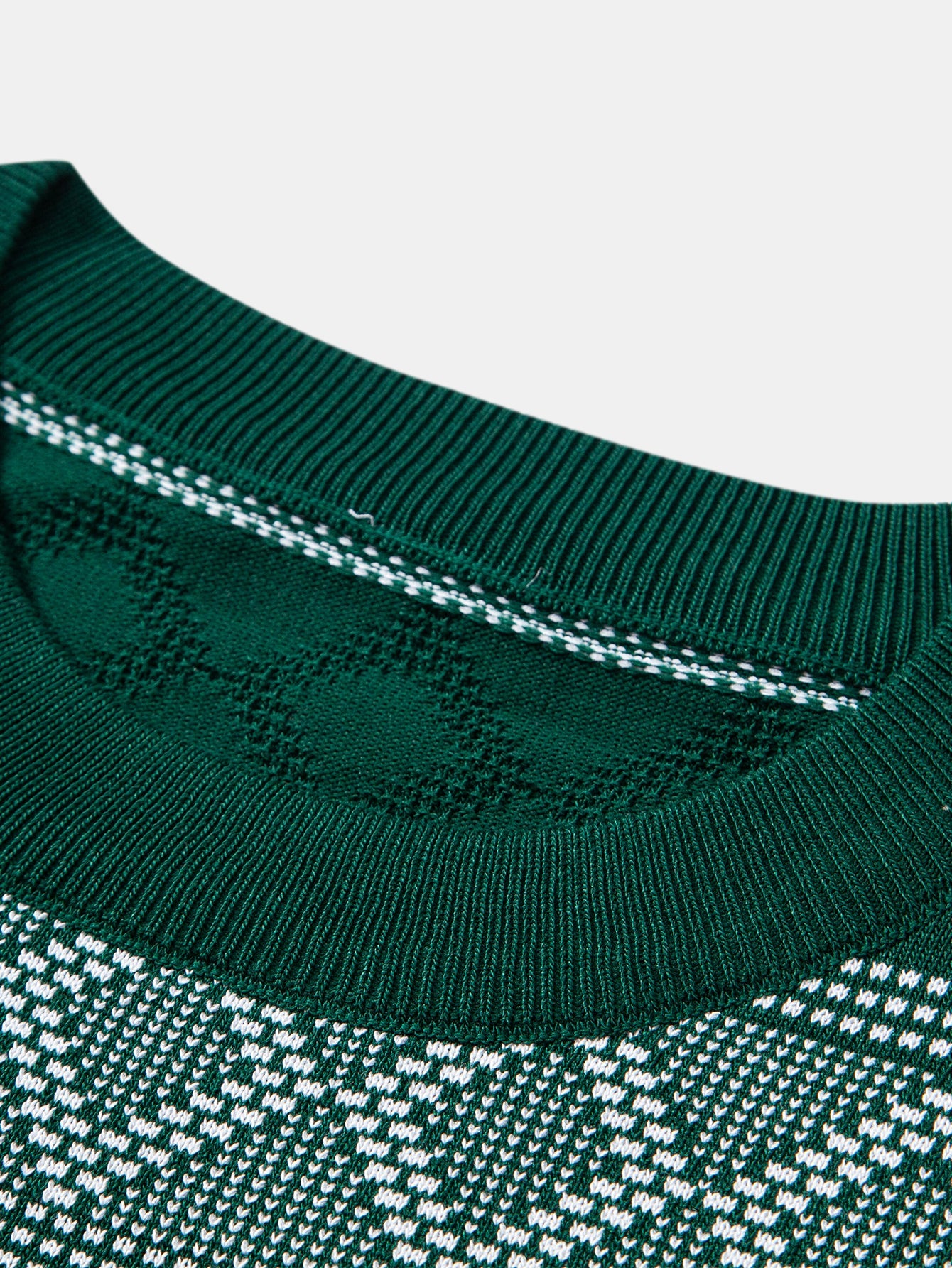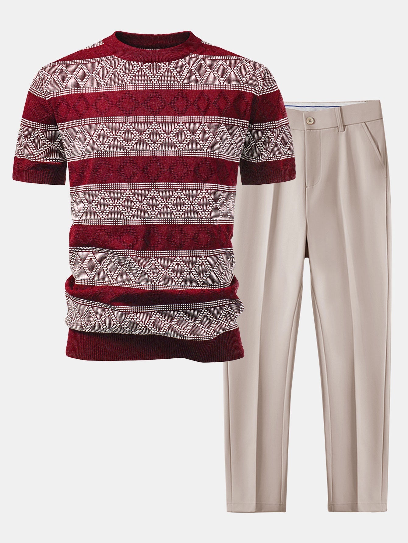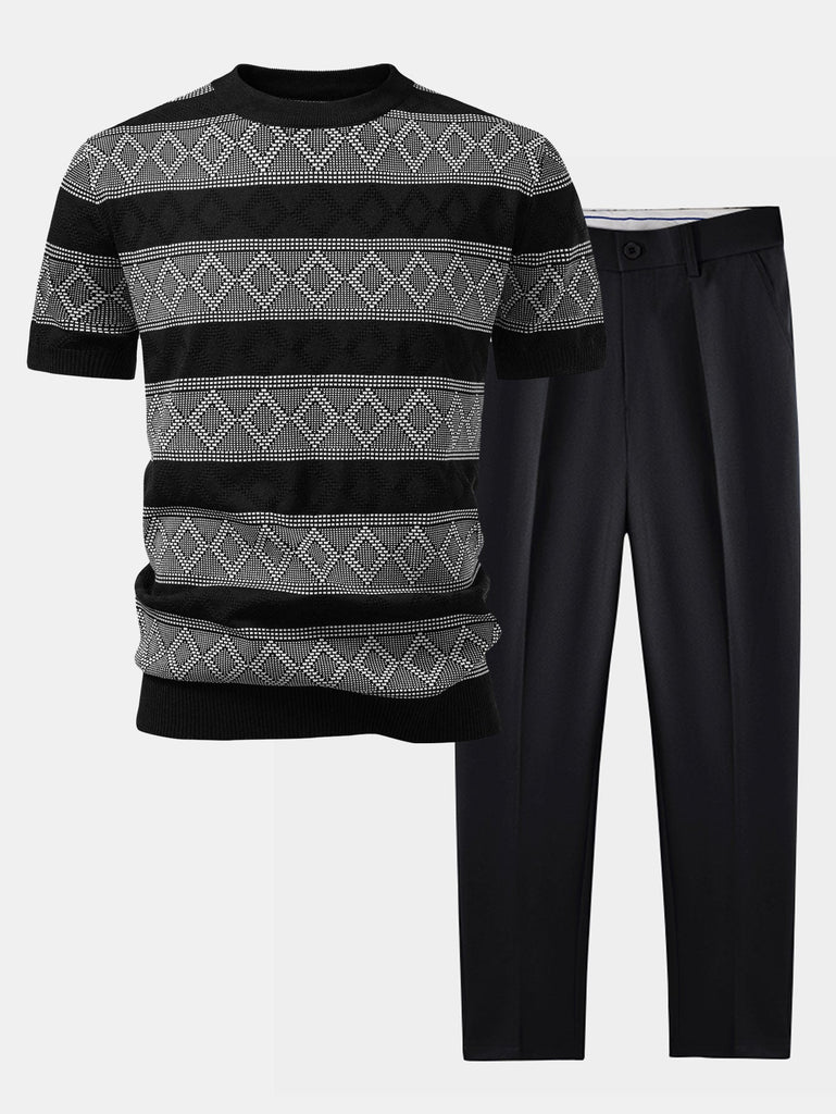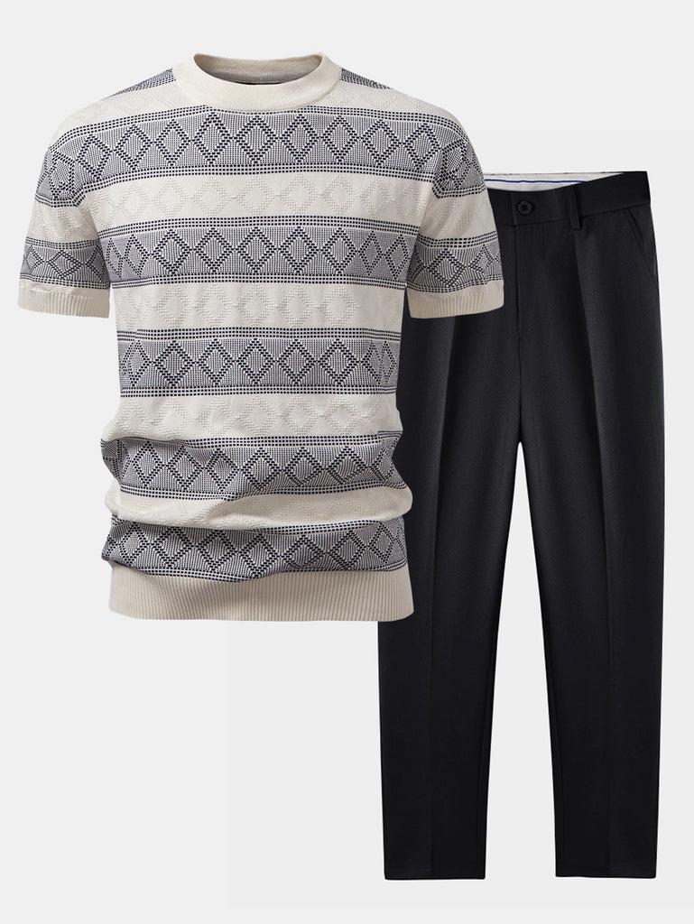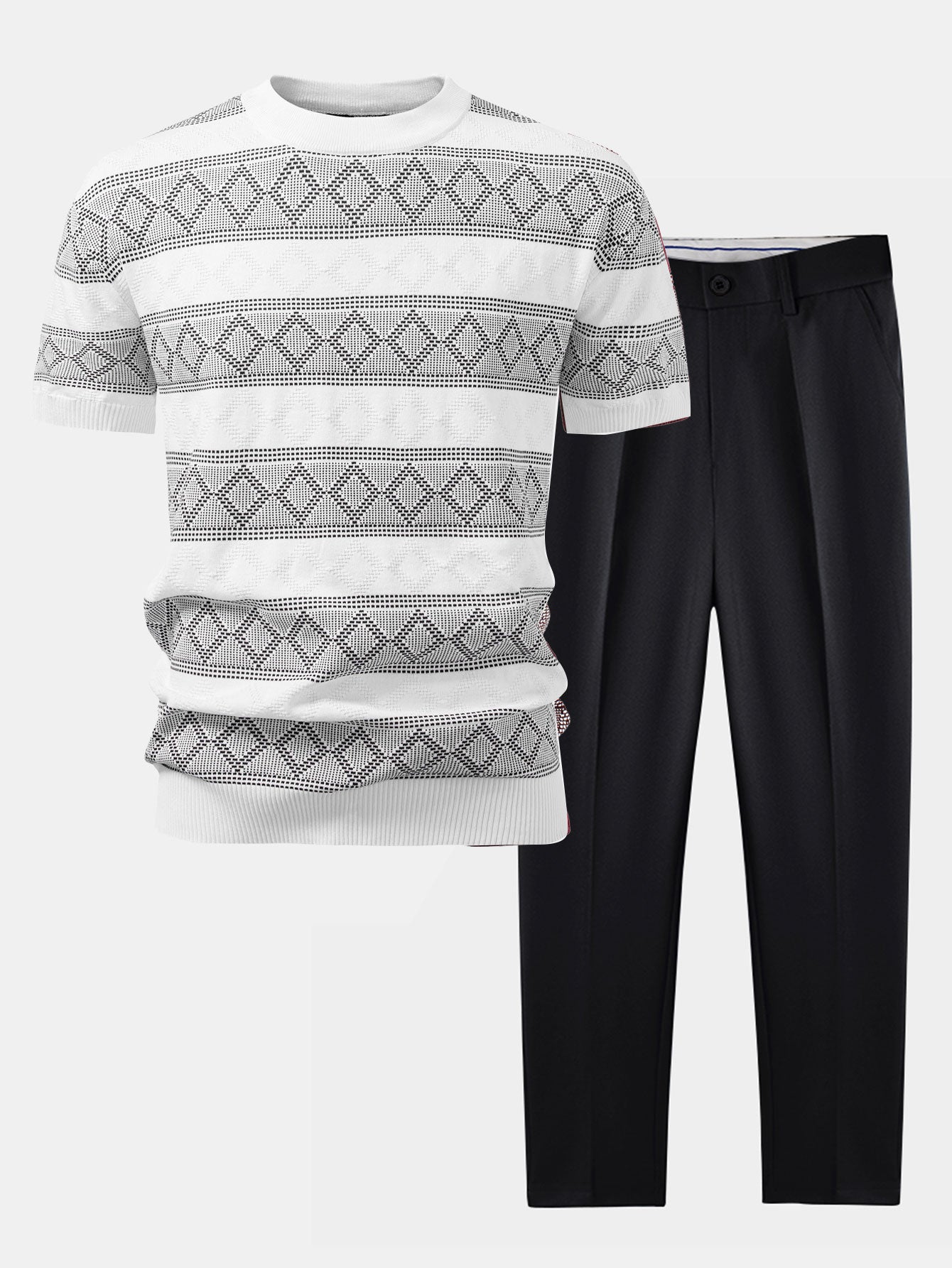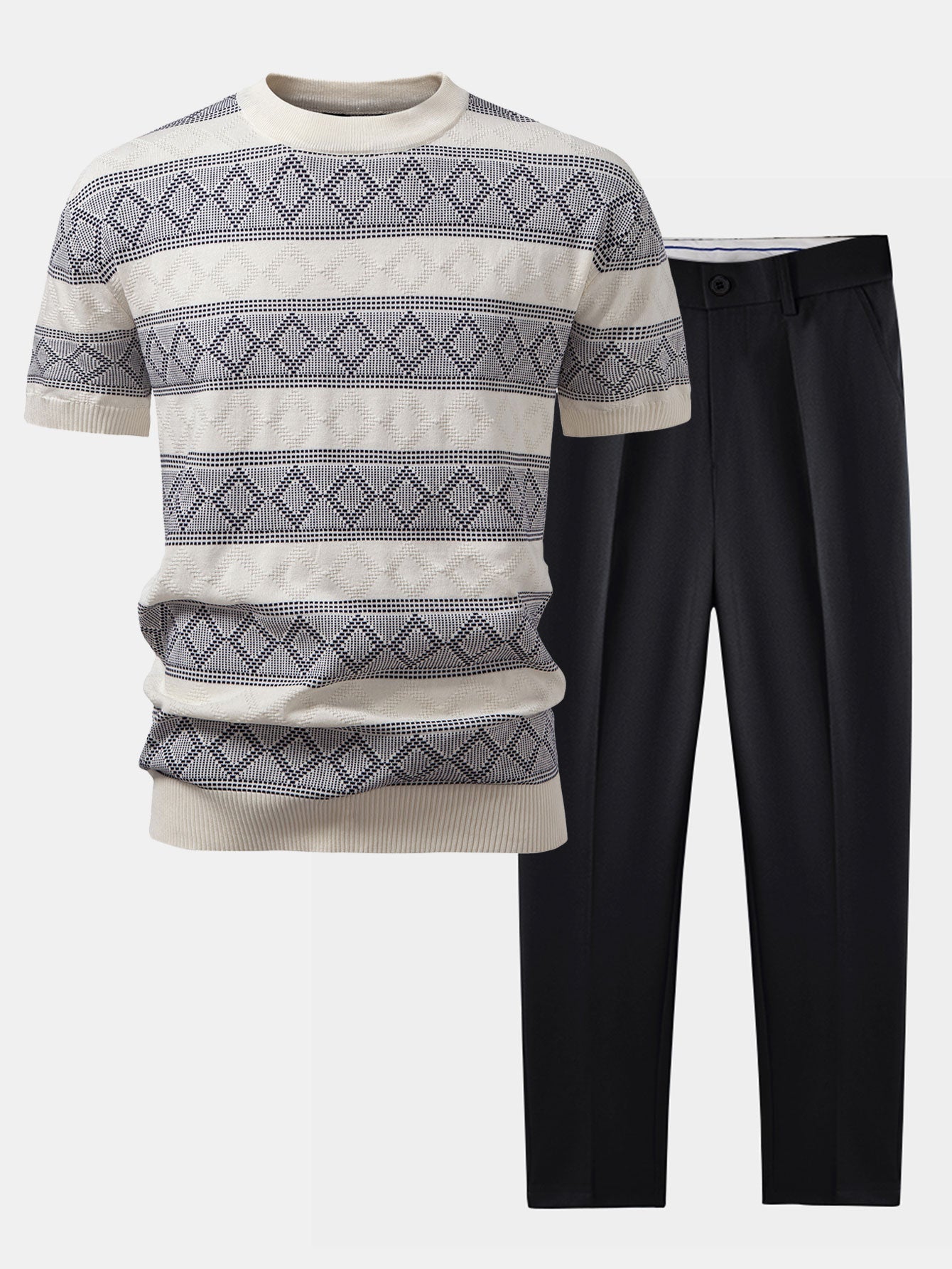 Rhombus Geometry Knitted Sweater T-Shirt & Slim Fit Tapered Trousers
