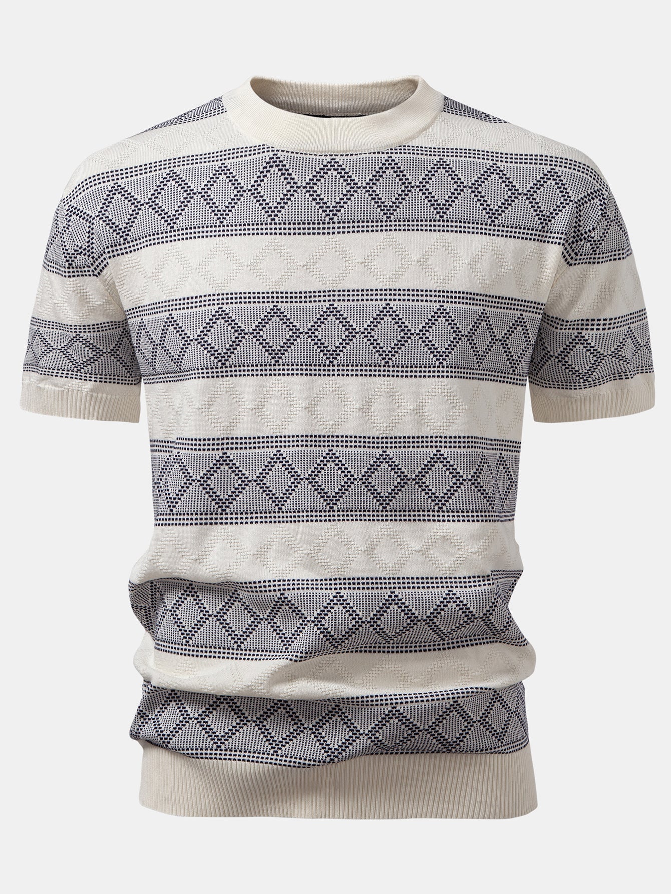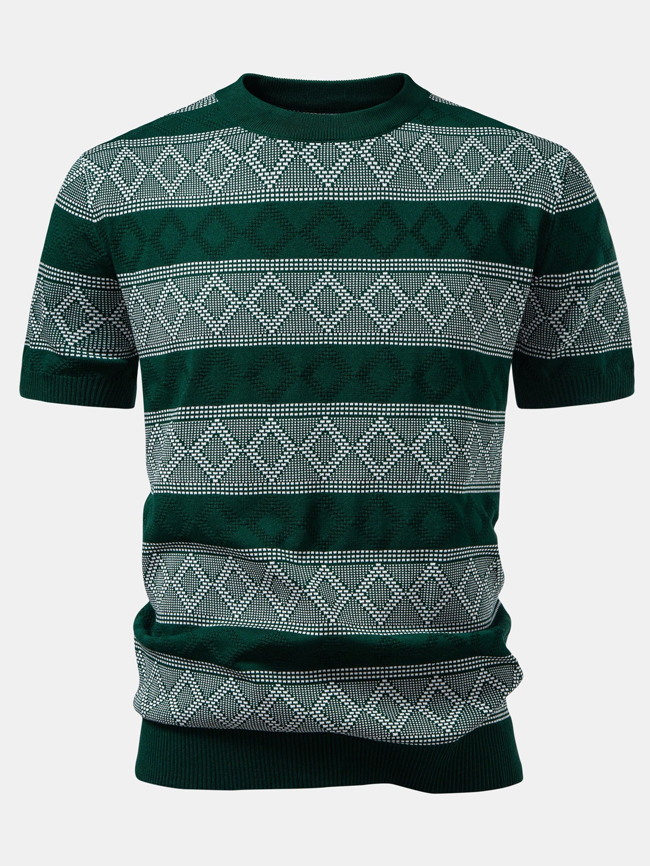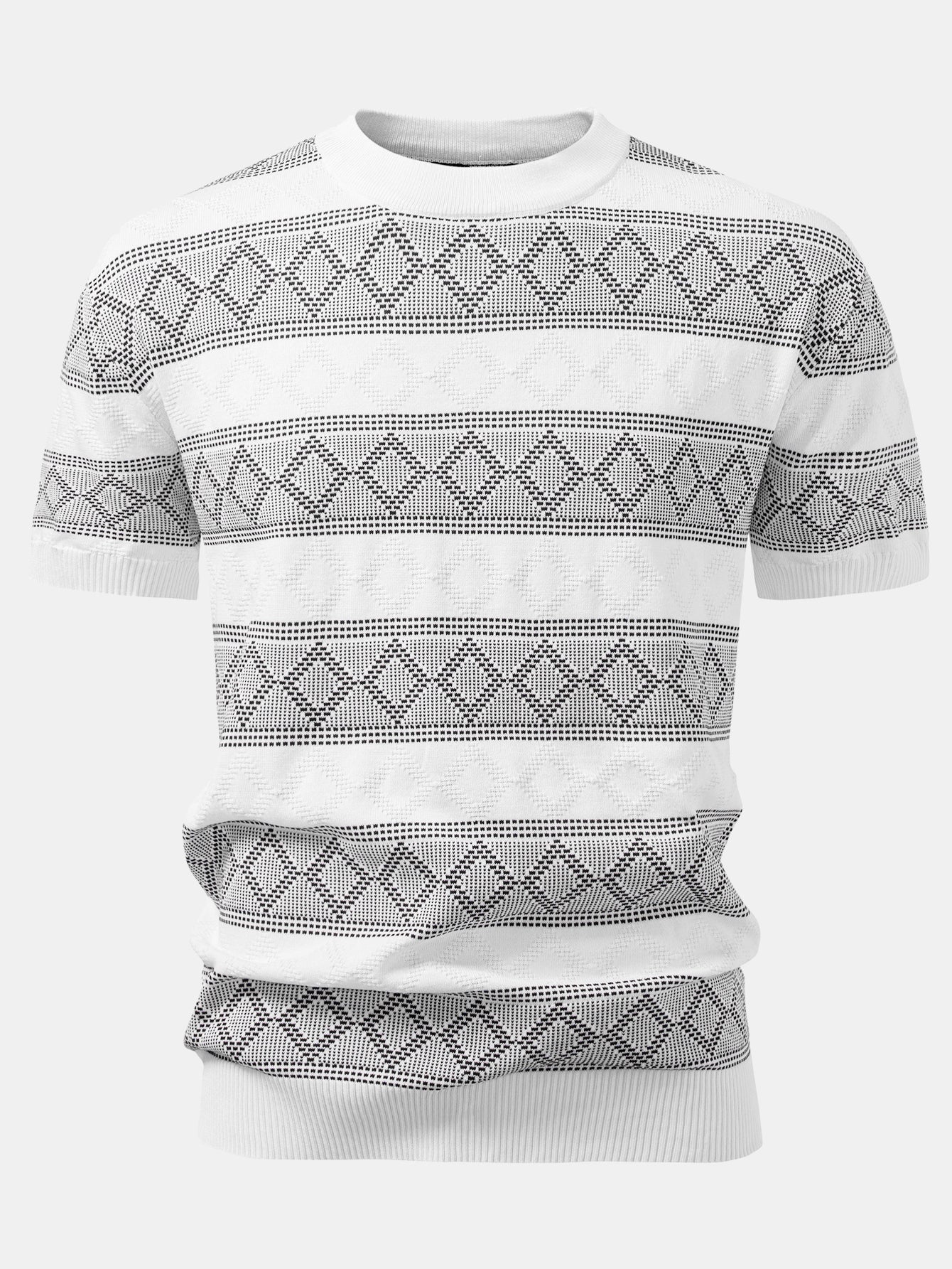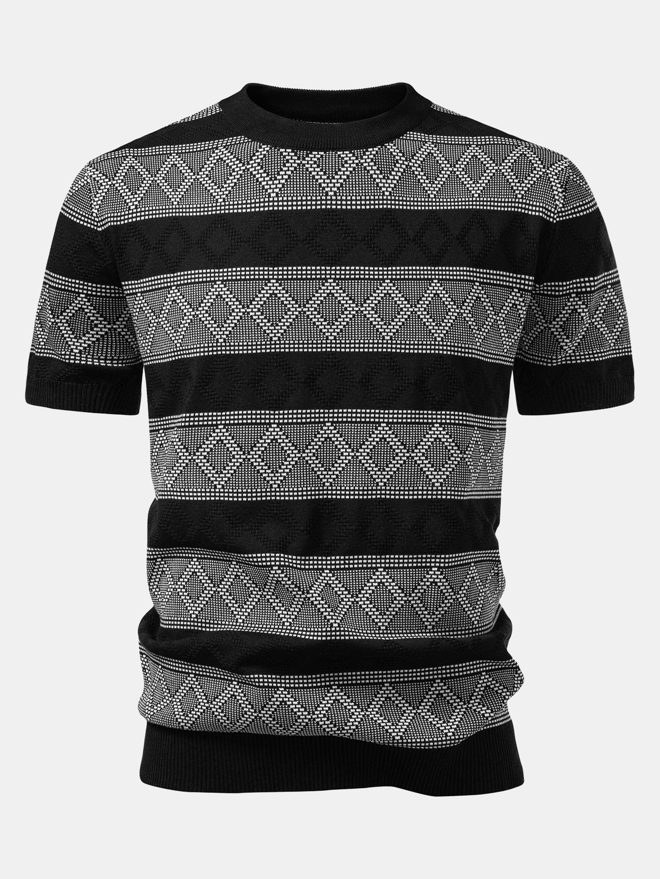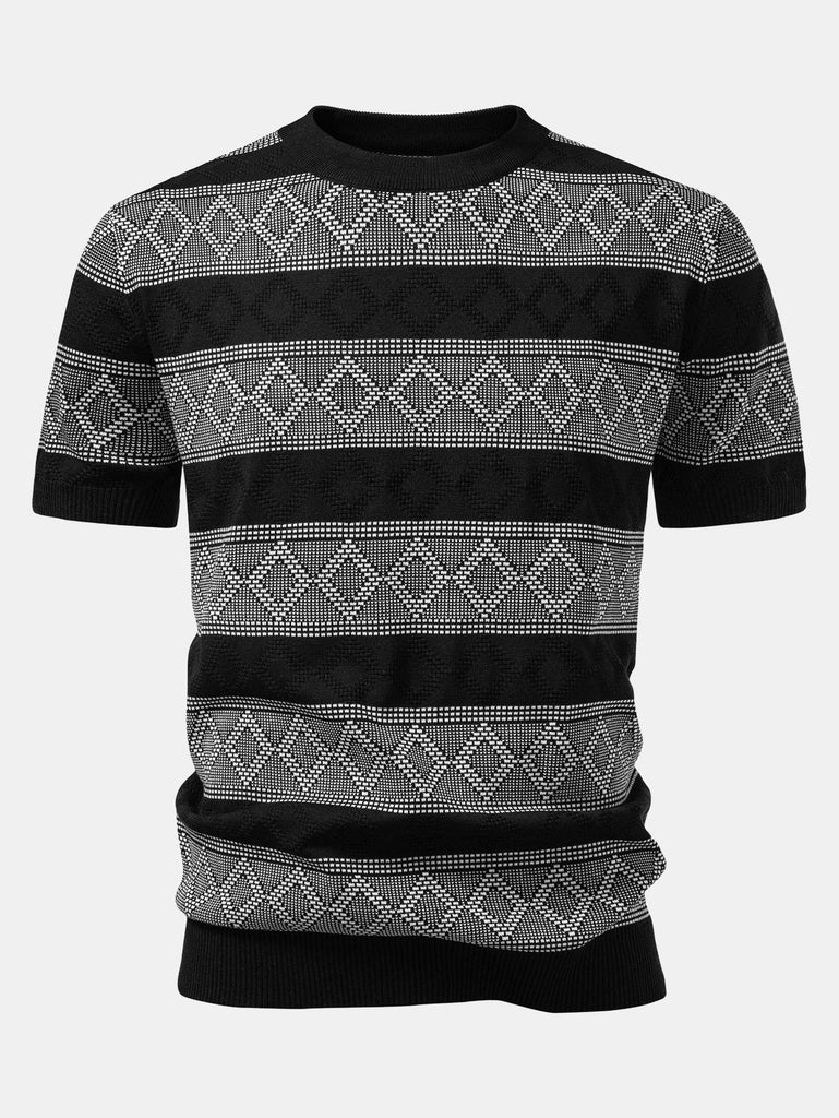 Rhombus Geometry Knitted Sweater T-Shirt & Slim Fit Tapered Trousers