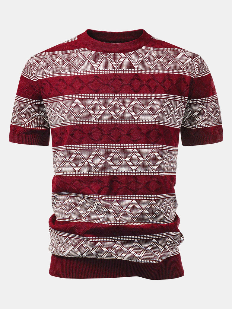Step up your everyday essentials with this eye-catching geometric knit set. Featuring a retro-inspired rhombus pattern sweater tee and tailored slim fit trousers, this outfit brings bold personality and elevated comfort to your wardrobe.
