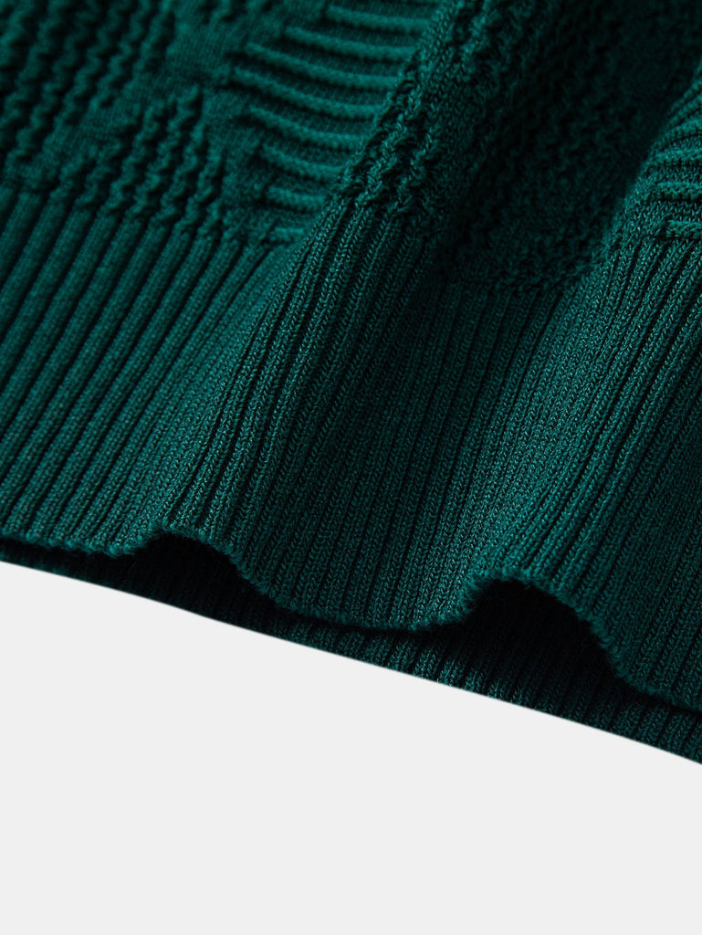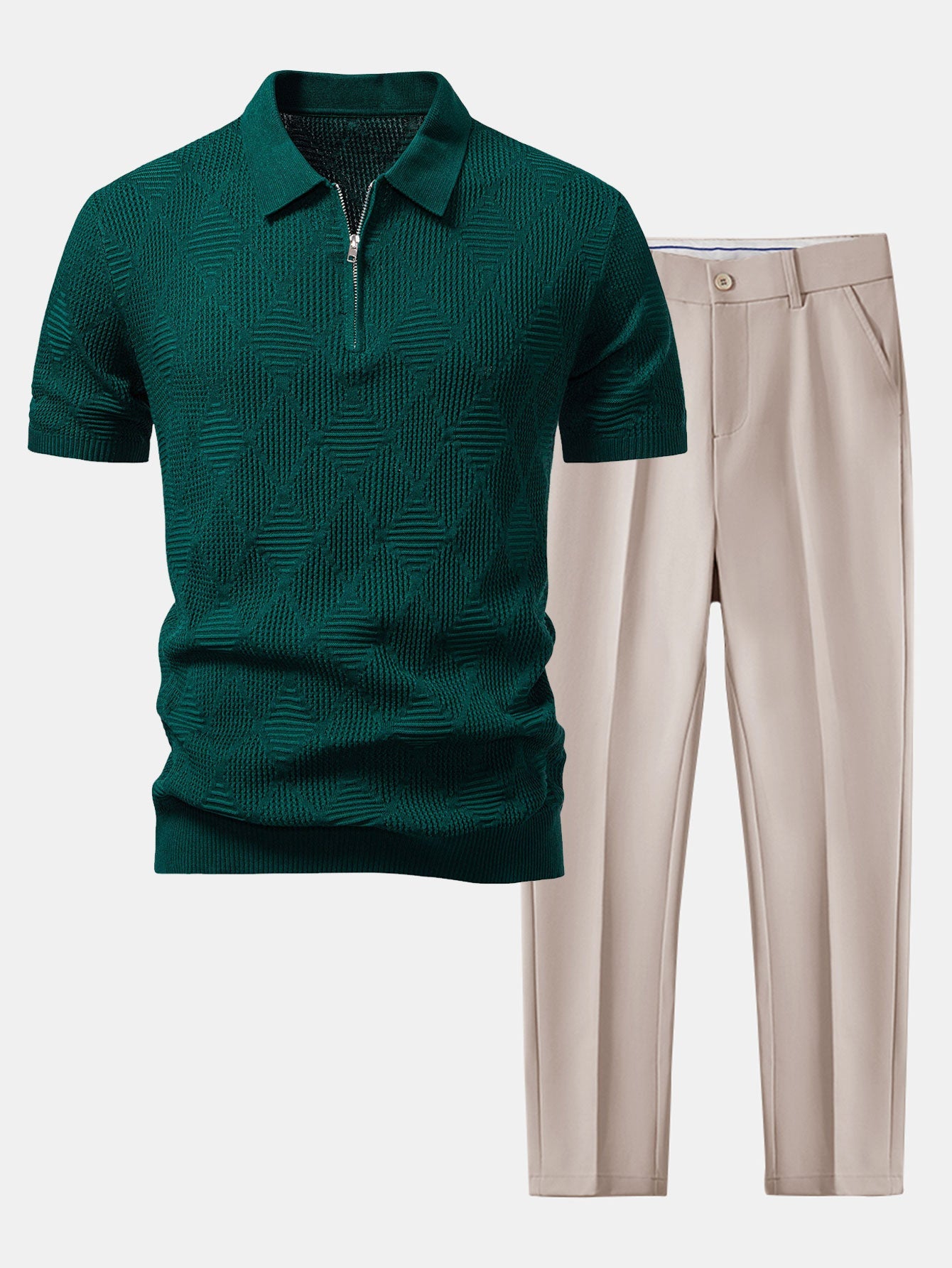 Rhombus Textured Zip Up Knitted Polo Shirt & Slim Fit Tapered Trousers