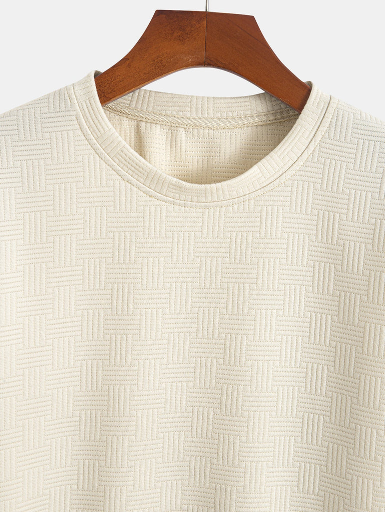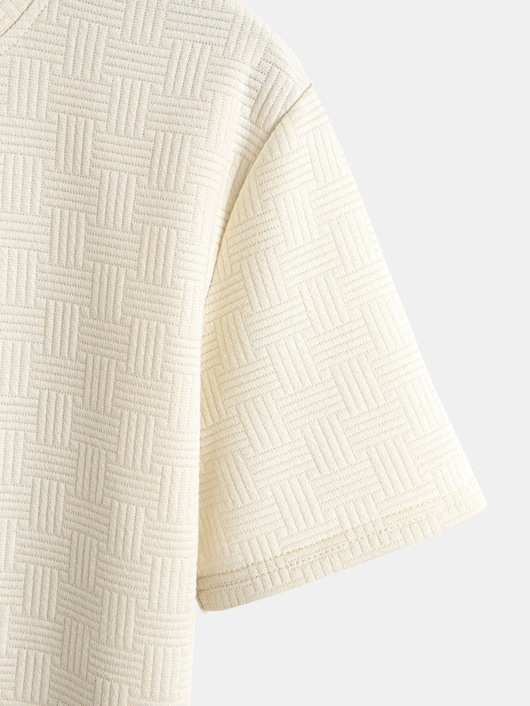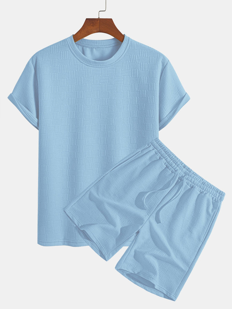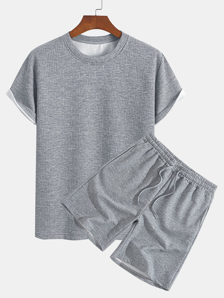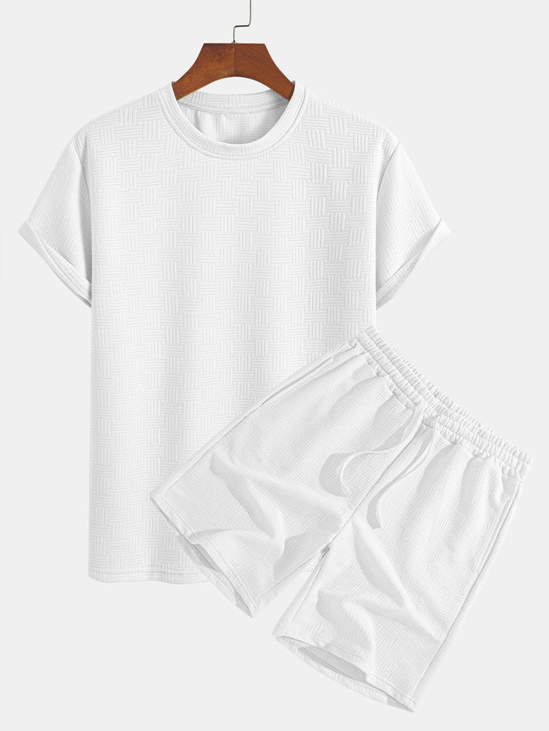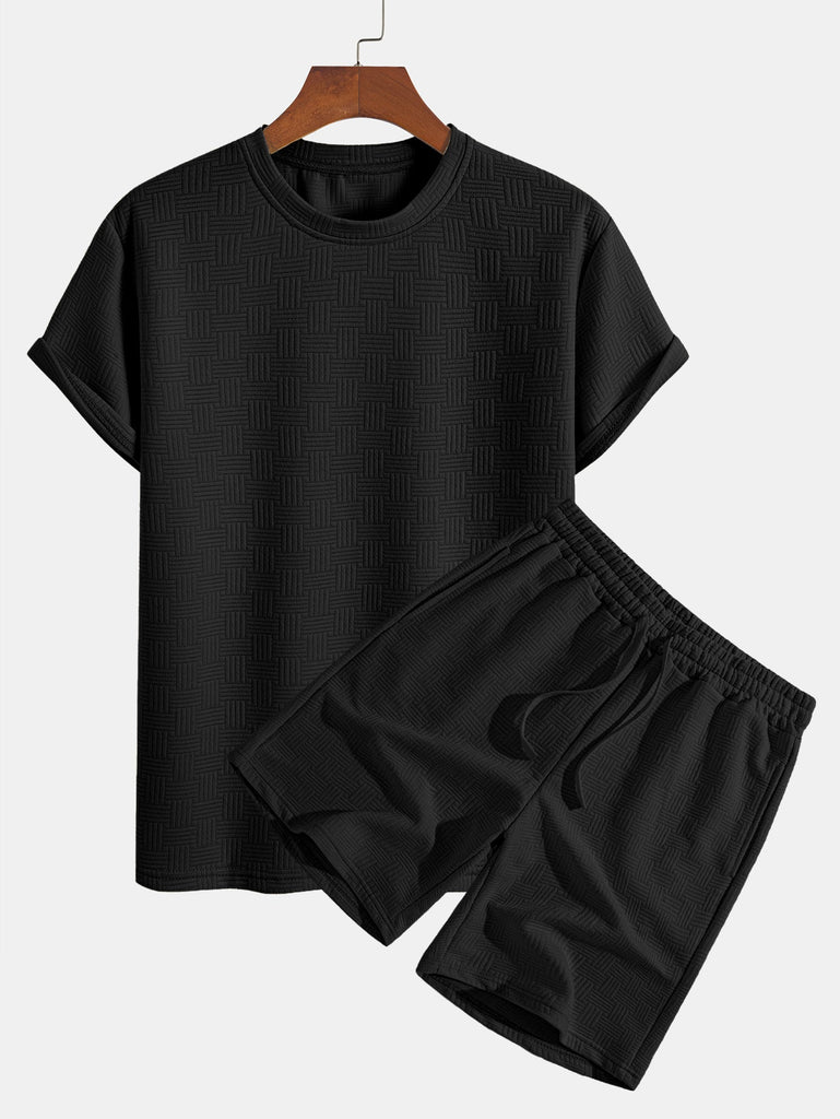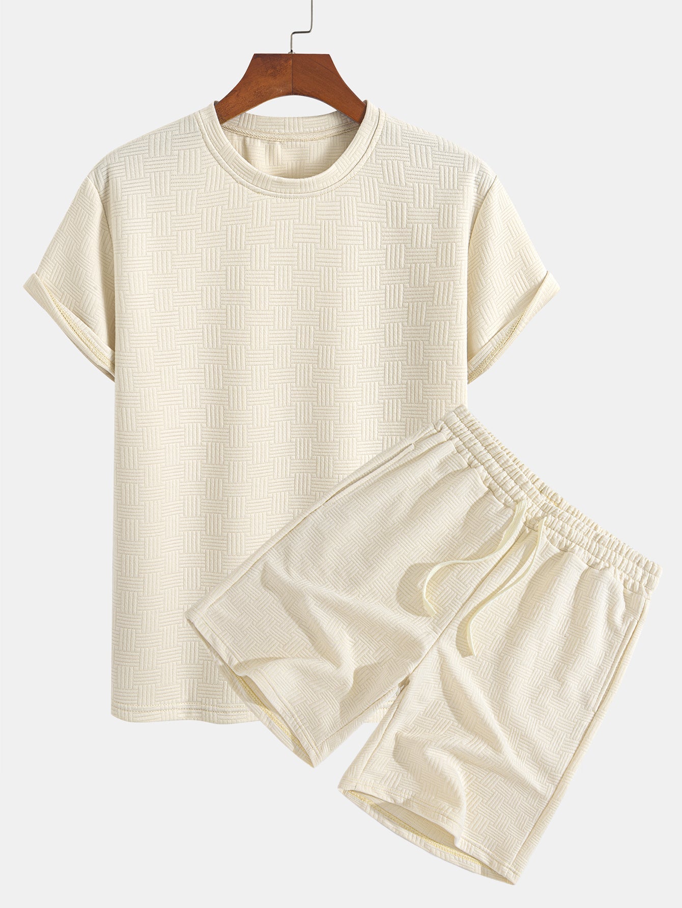 Elevate your casual wardrobe with this stylish striped jacquard set. Designed with textured vertical stripes woven into the fabric, the set includes a comfortable short-sleeve T-shirt and matching drawstring shorts. Soft, breathable, and fashion-forward, it¡¯s ideal for relaxed weekends, summer days, or effortless everyday wear.