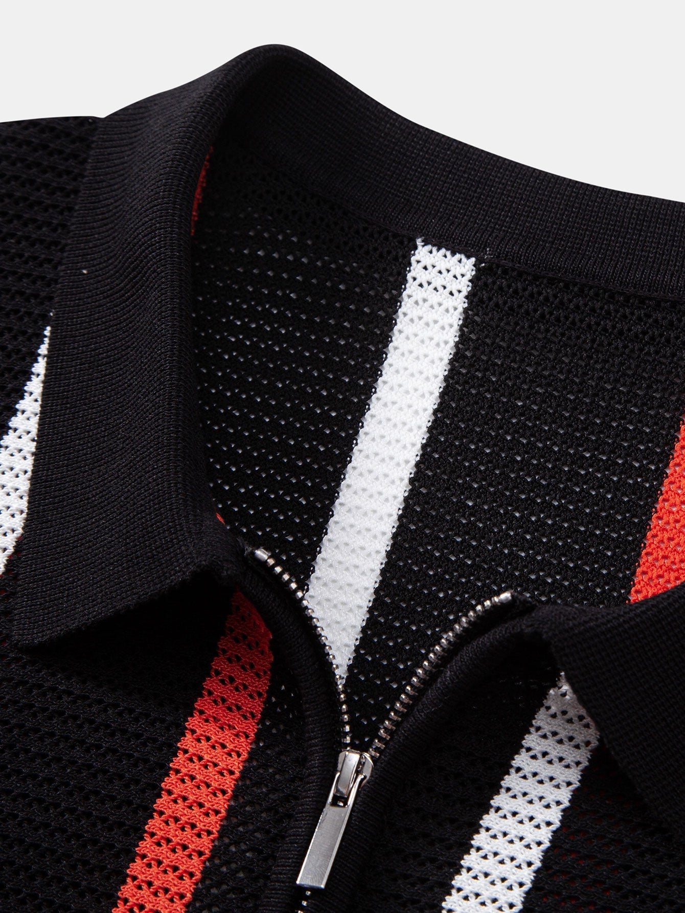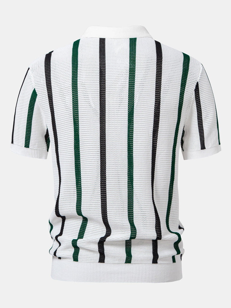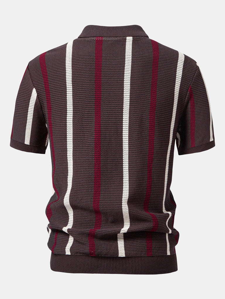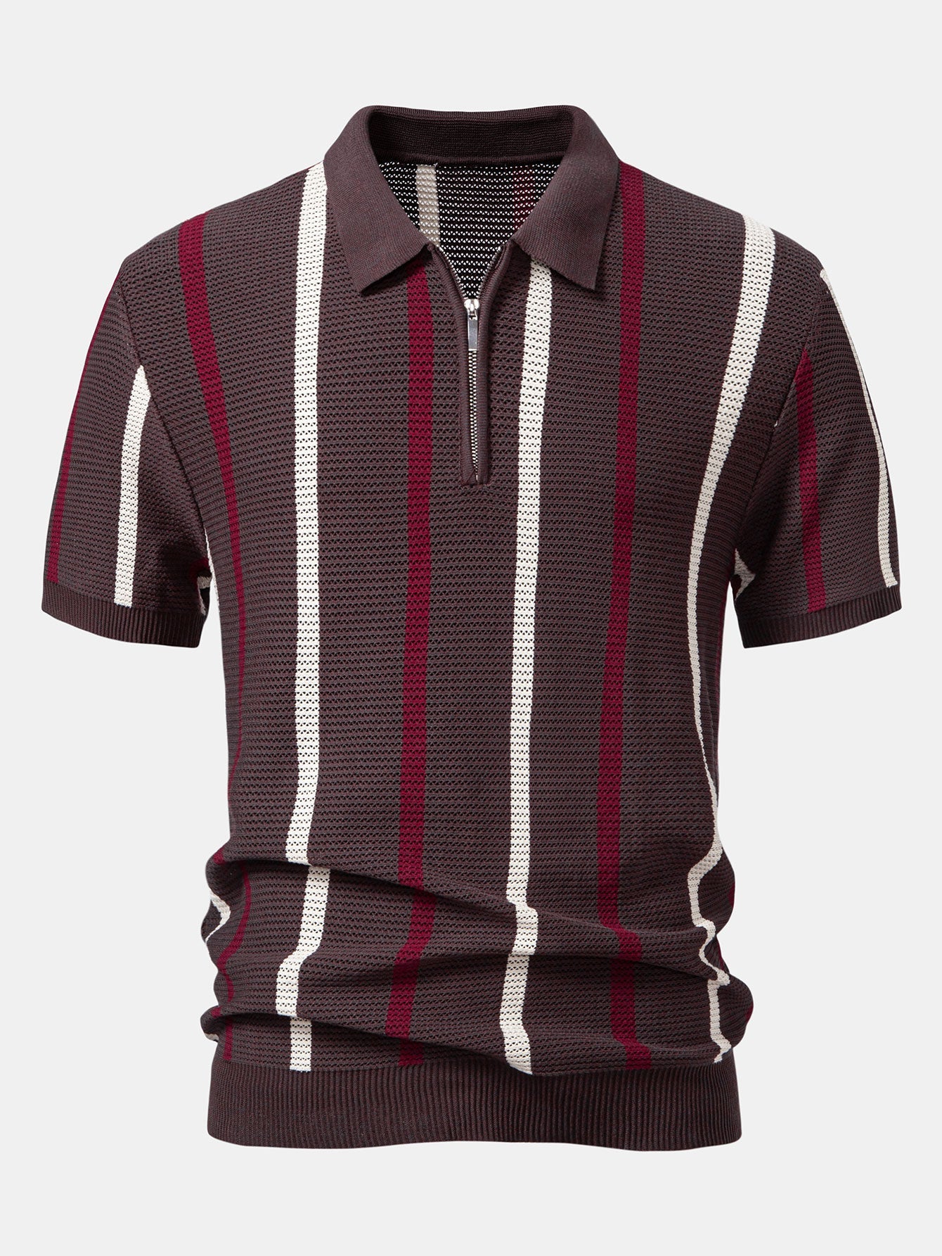 Stay cool and stylish in this versatile stripe knit zip up polo shirt & straight leg linen pants set. The polo's unique zip-up design and bold stripes bring a modern twist to a classic silhouette, while the breathable linen pants keep you comfortable and sharp in warm weather. Whether you're headed to brunch or strolling by the coast, this set delivers effortless sophistication and comfort.