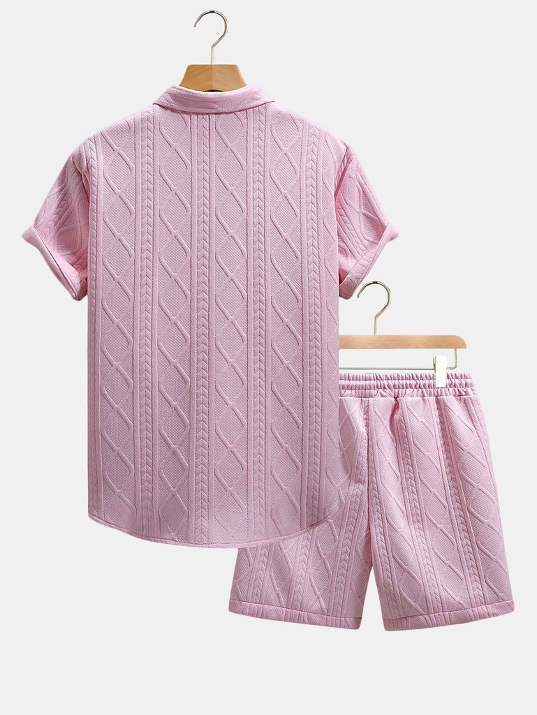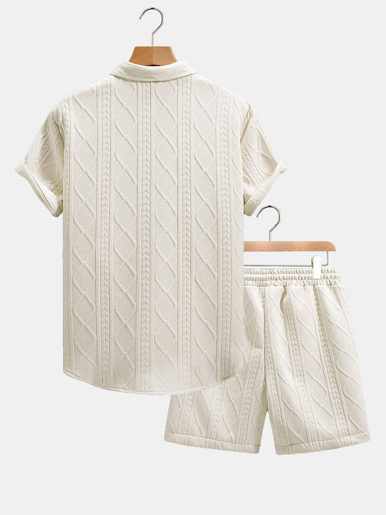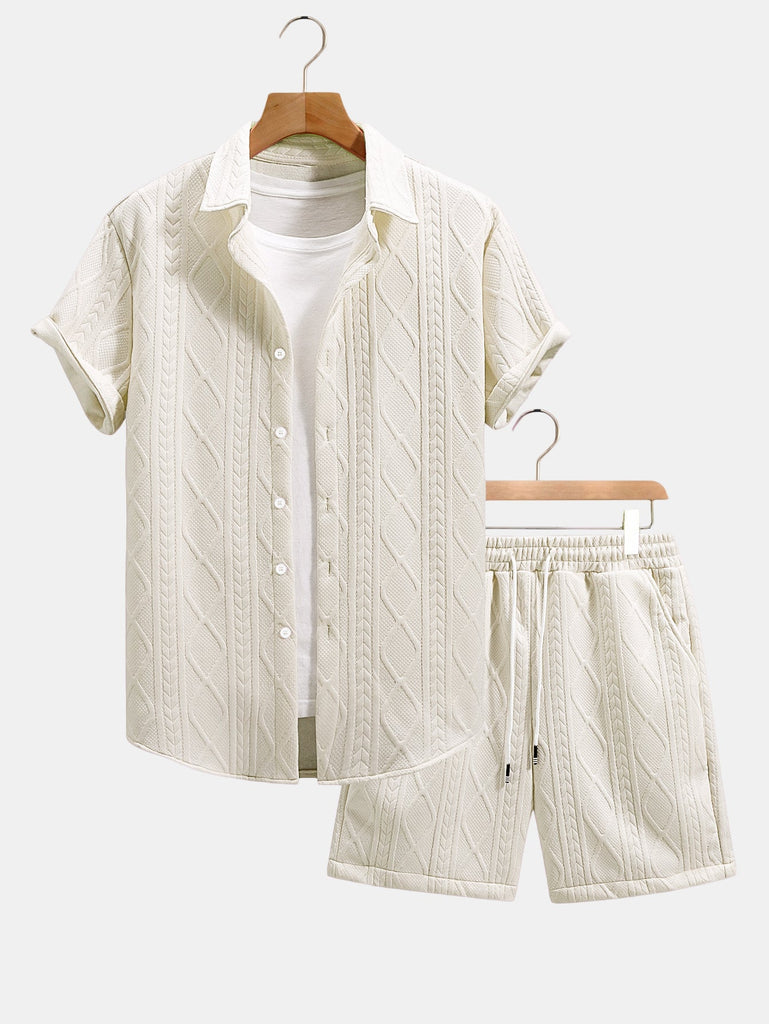 Twist Geometry Jacquard Button Up Shirt & Drawstring Shorts