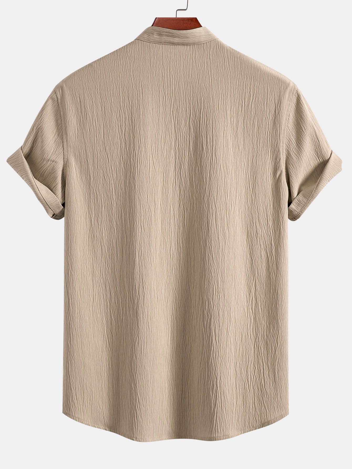 The wrinkled textured v neck shirt features a soft, lightweight fabric with a naturally crinkled finish that gives it a relaxed, lived-in look. Paired with breathable straight leg linen pants, the look stays cool and comfortable no matter where the day takes you. The pants offer a timeless silhouette with an airy feel¡ªideal for warmer weather and easy movement.