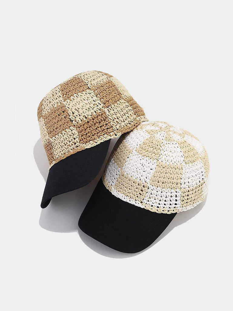 Plaid Contrast Straw Cap