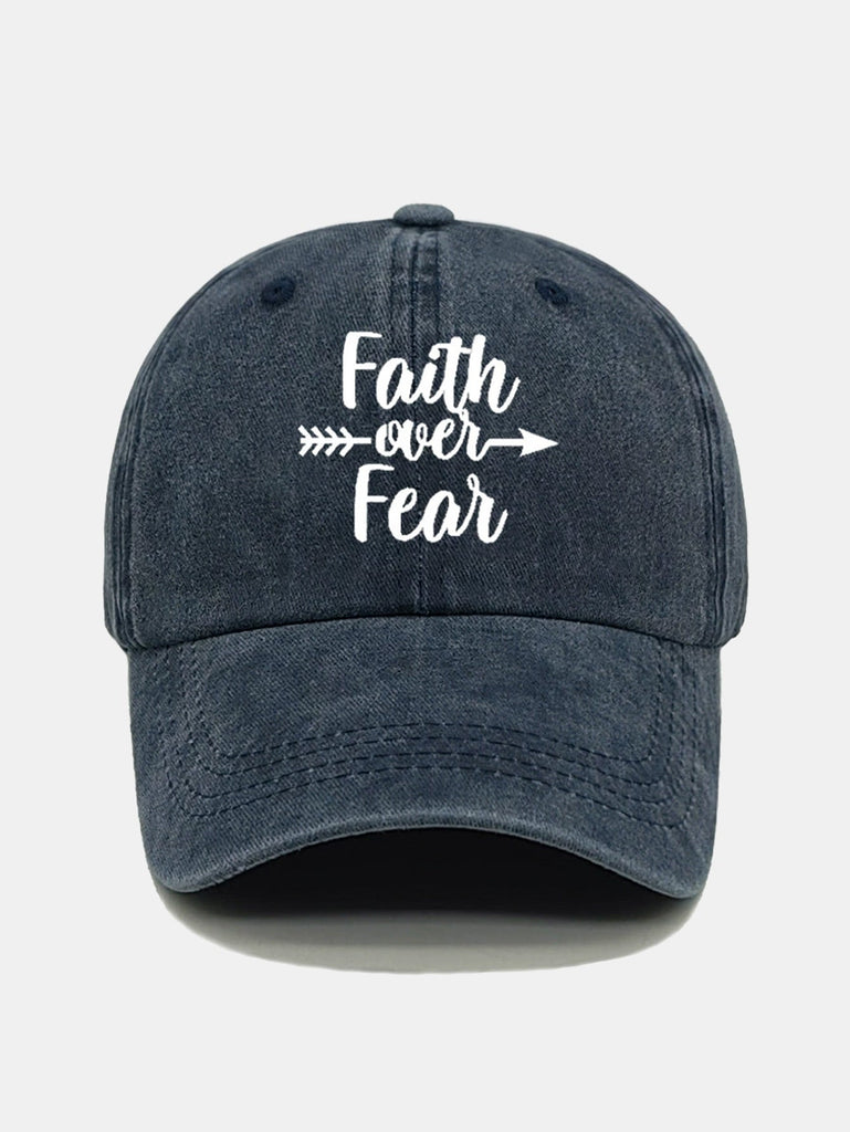 Faith Over Fear Pattern Distressed Washed Baseball Cap