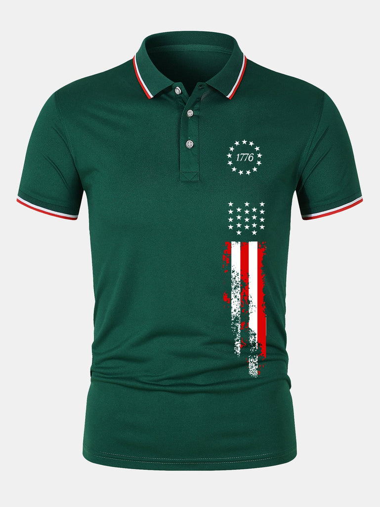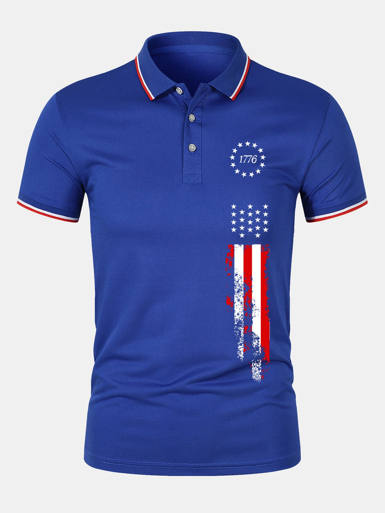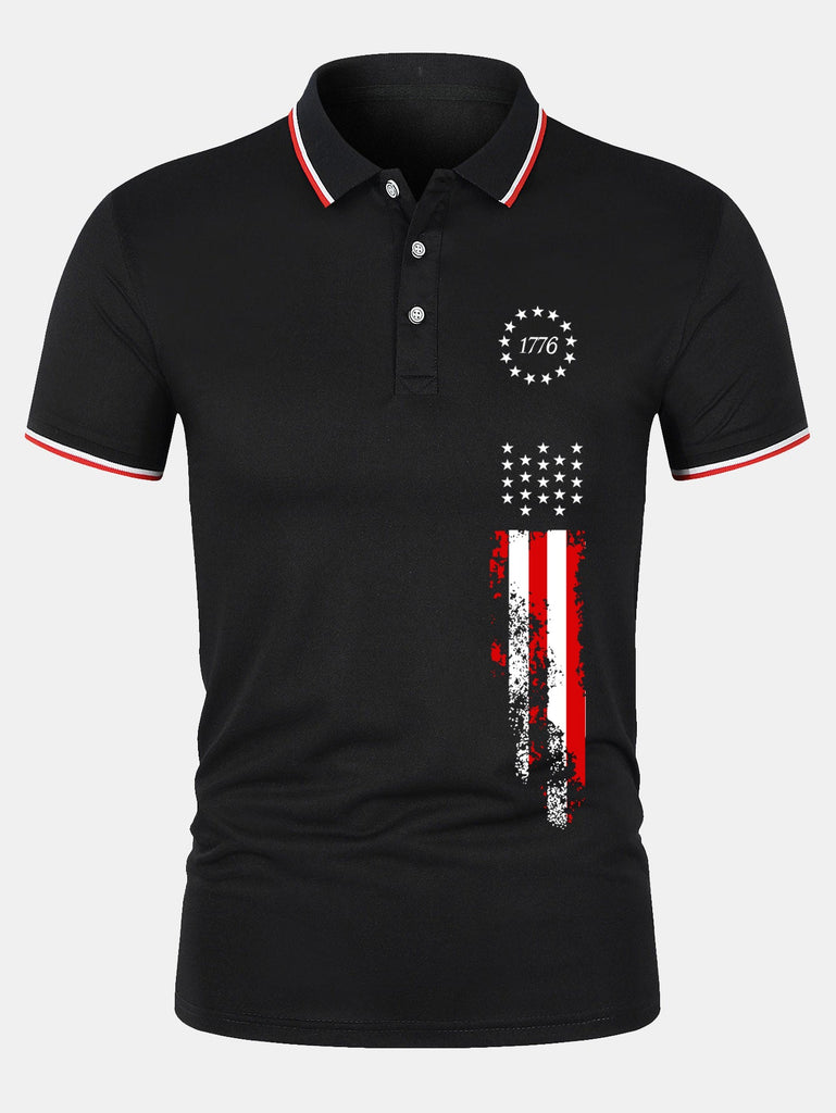 1776 American Flag Print Mesh Polo Shirt