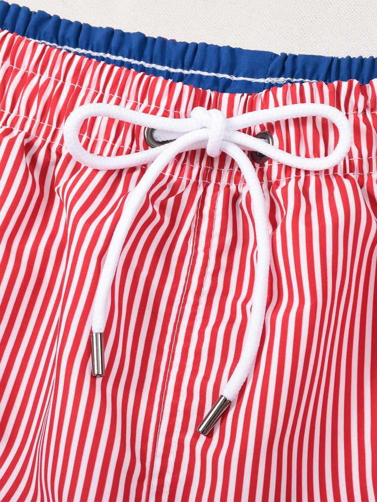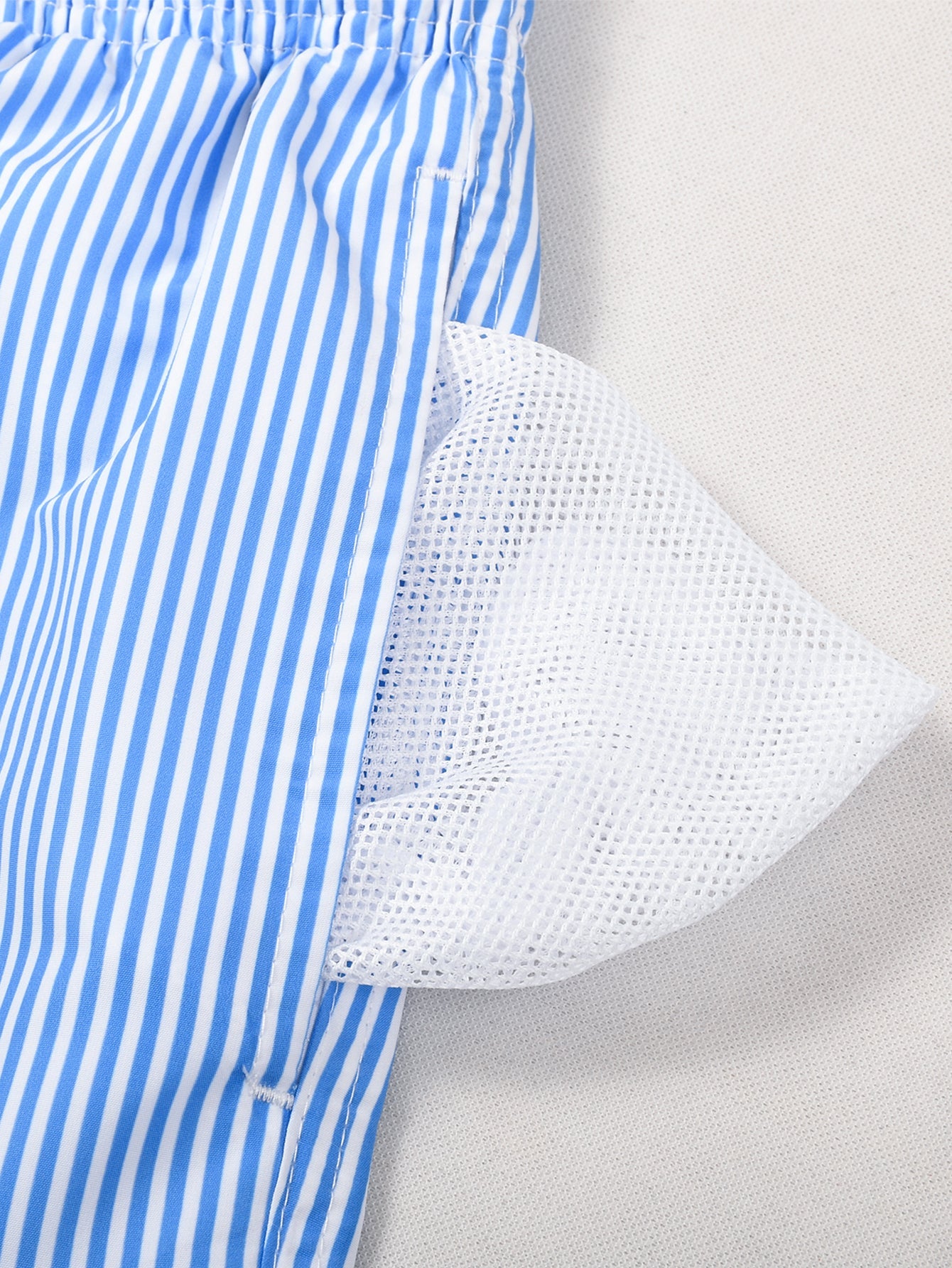 3 Pieces Vertical Striped Drawstring Swim Shorts