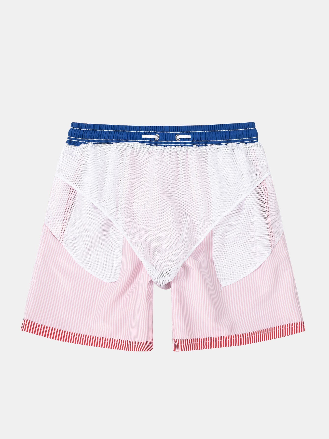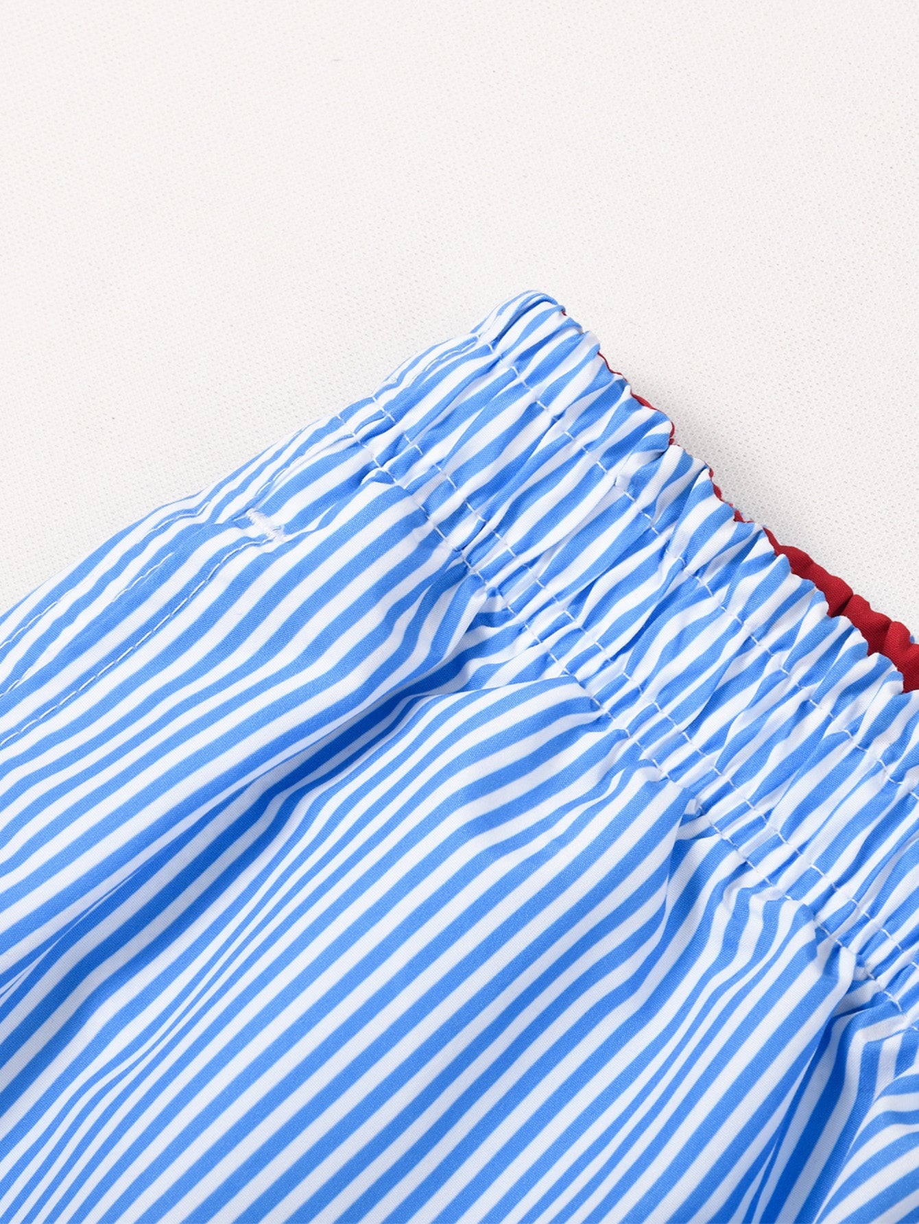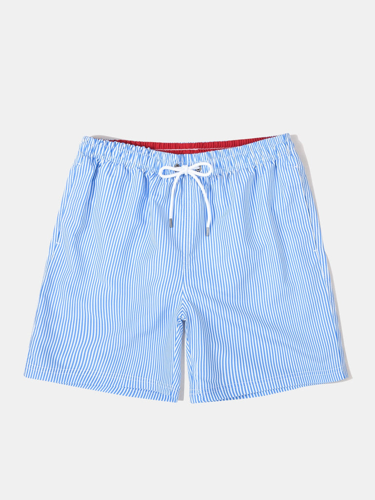 Designed for both comfort and fashion, these swim shorts feature a sleek vertical stripe pattern that elongates the legs and enhances your beachside look. The adjustable drawstring waistband ensures a secure and fit, while the quick-dry fabric keeps you feeling fresh both in and out of the water.