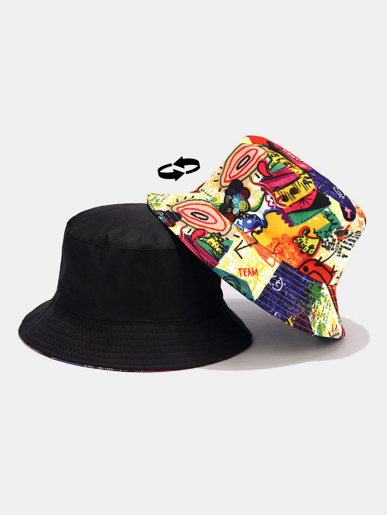 Abstract Cartoon Graffiti Print Reversible Bucket Hat