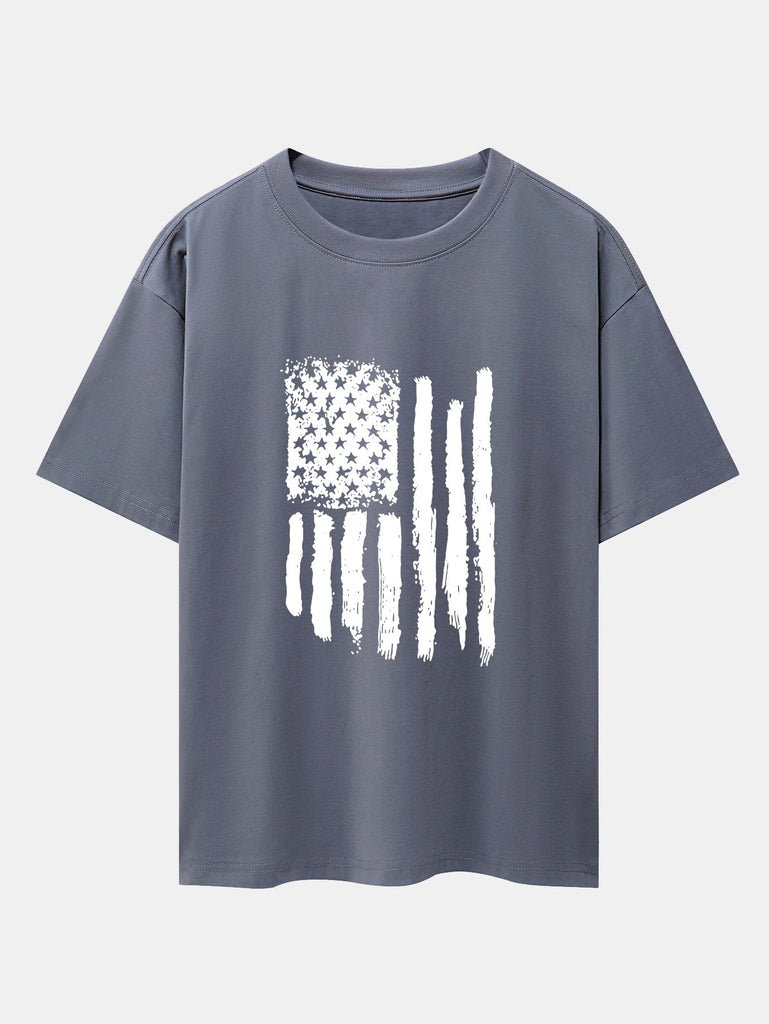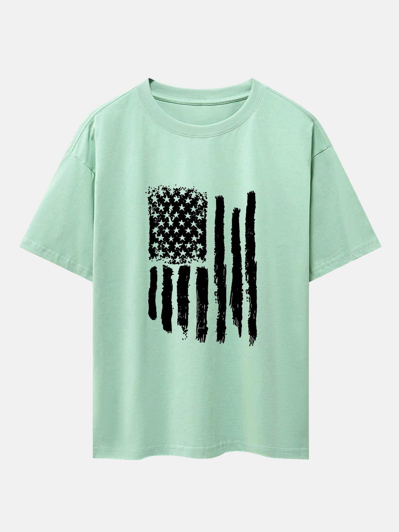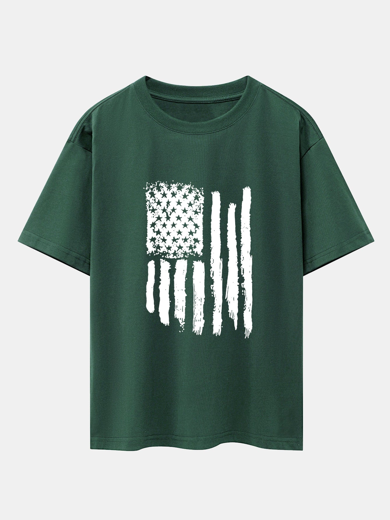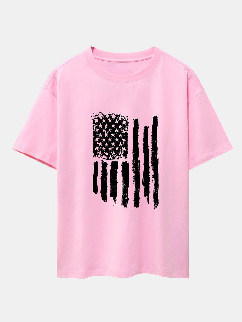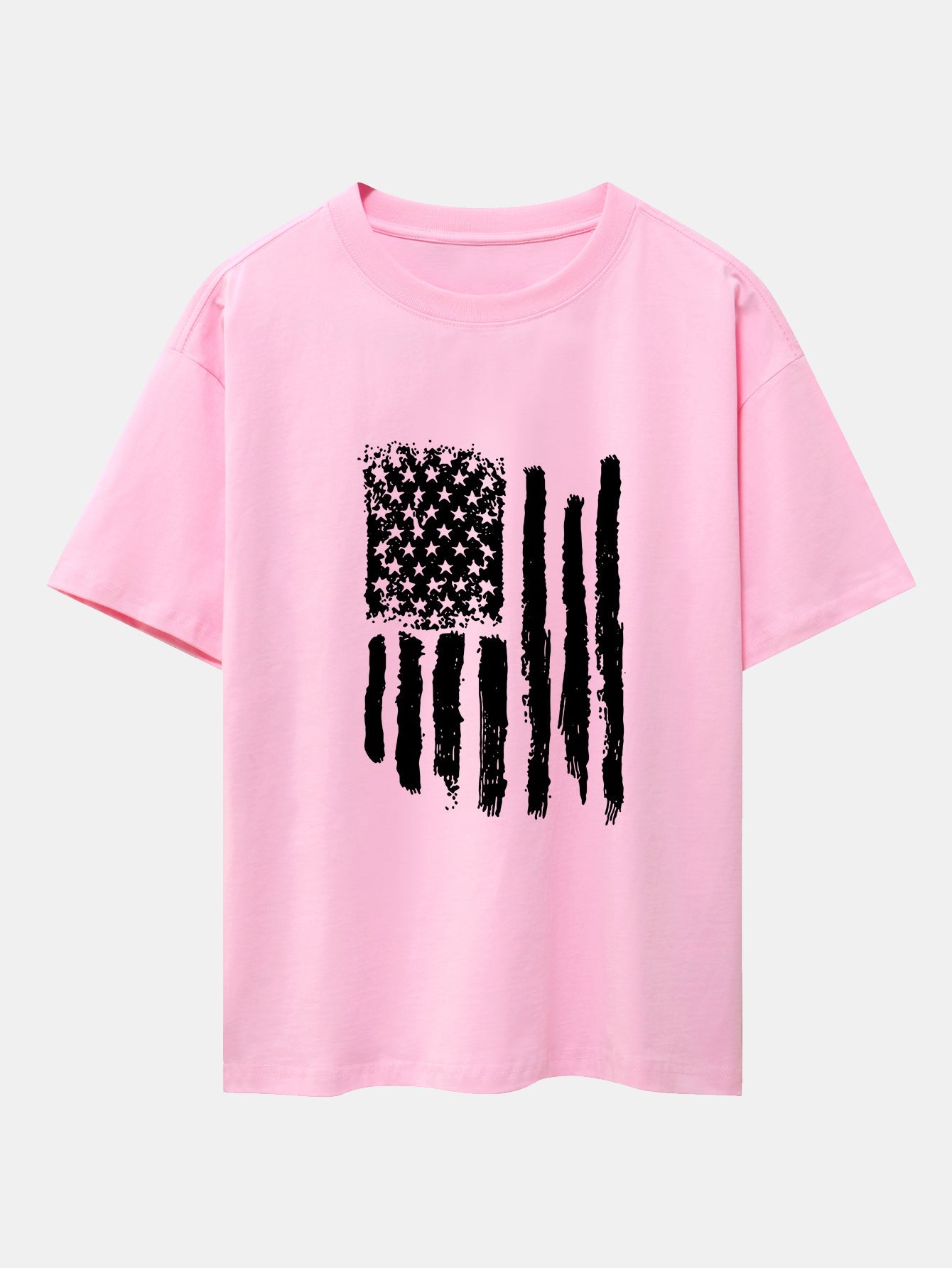 American Flag Print Drop Shoulder Oversize T-Shirt