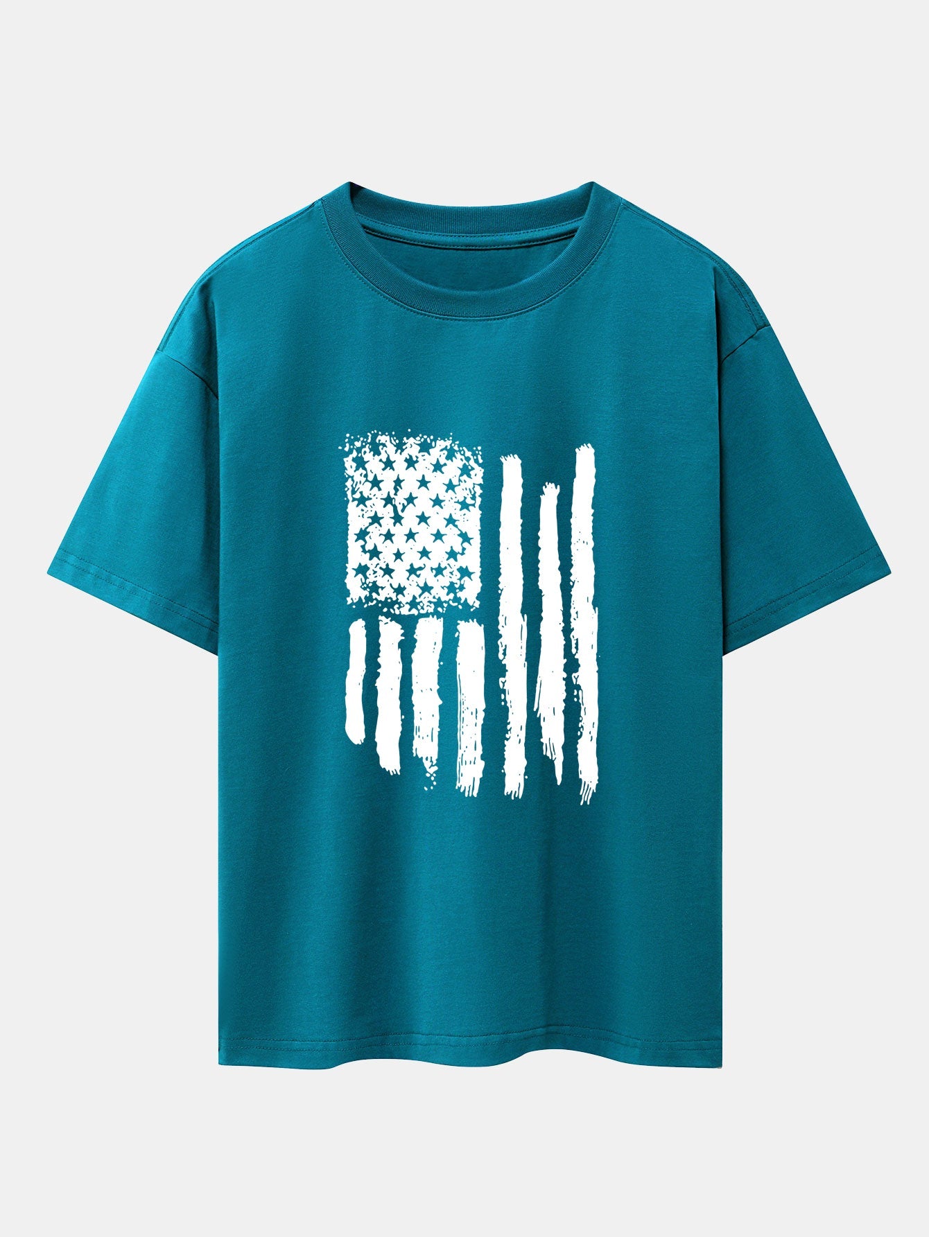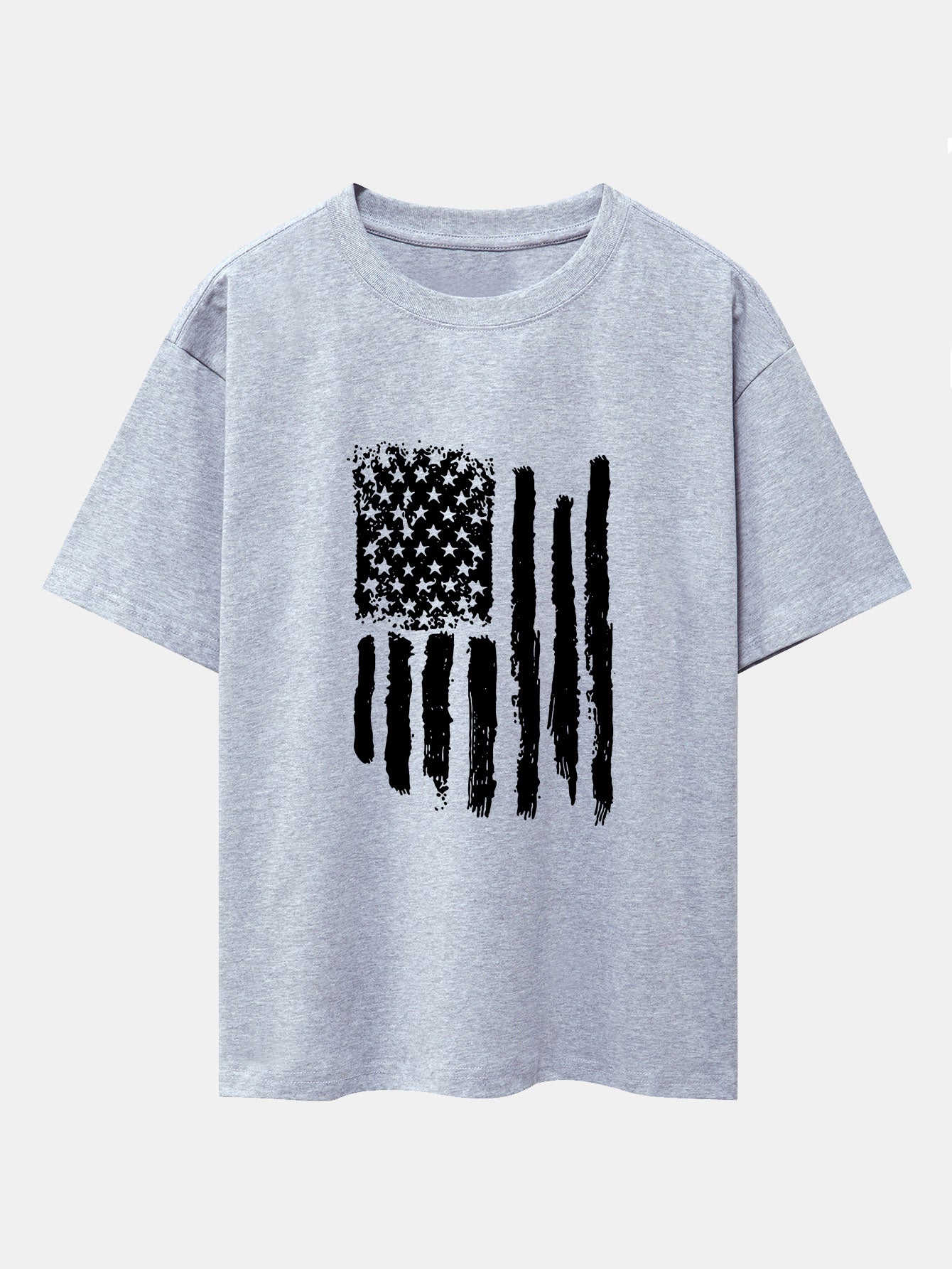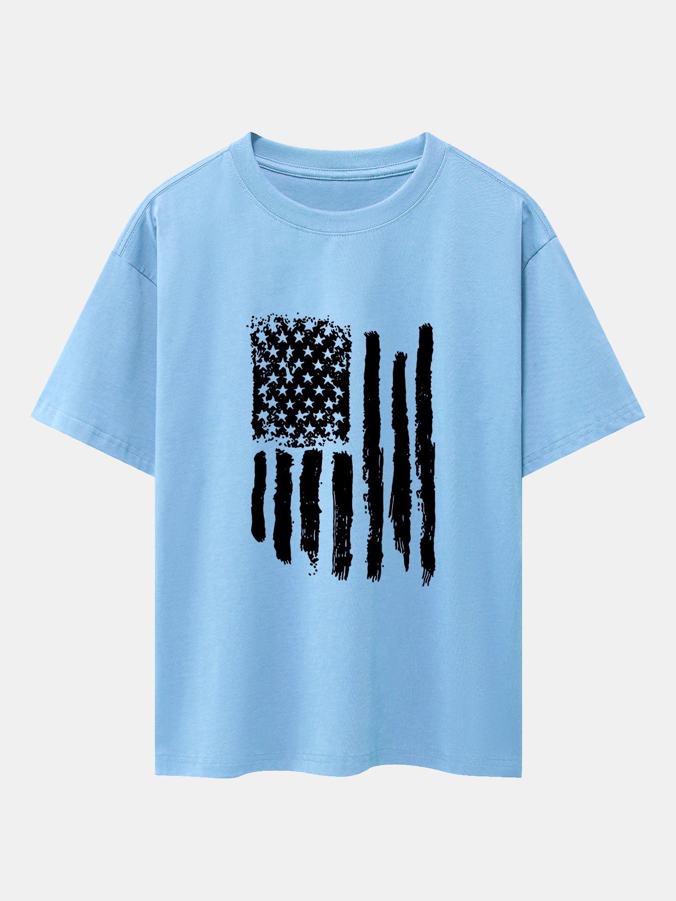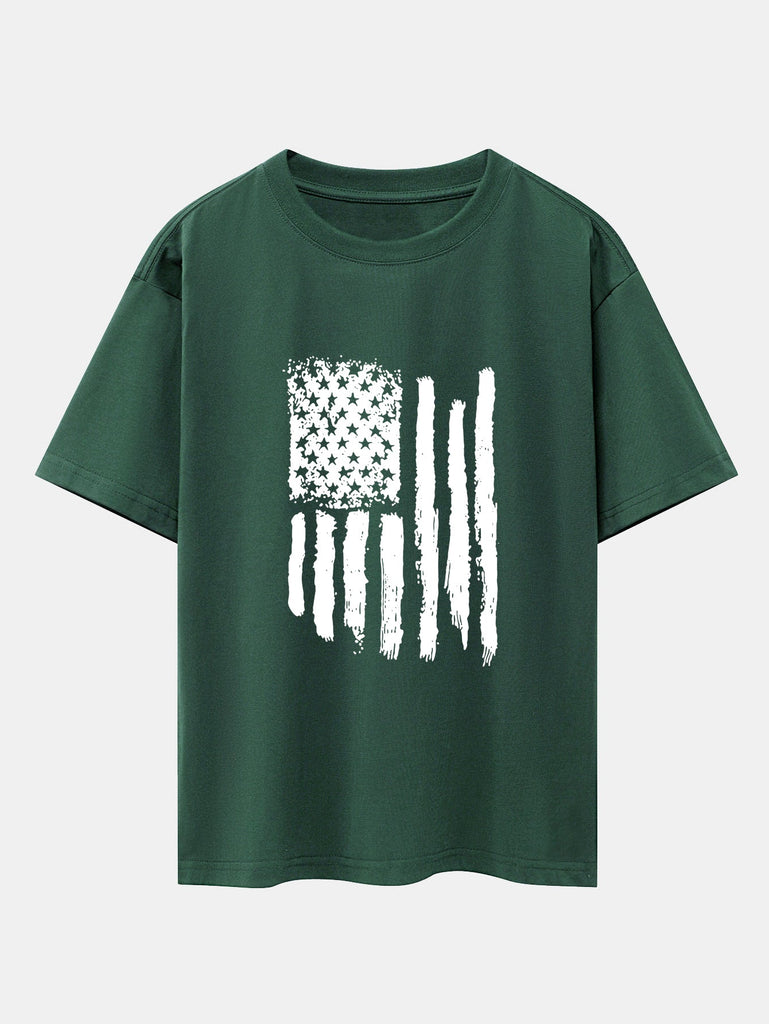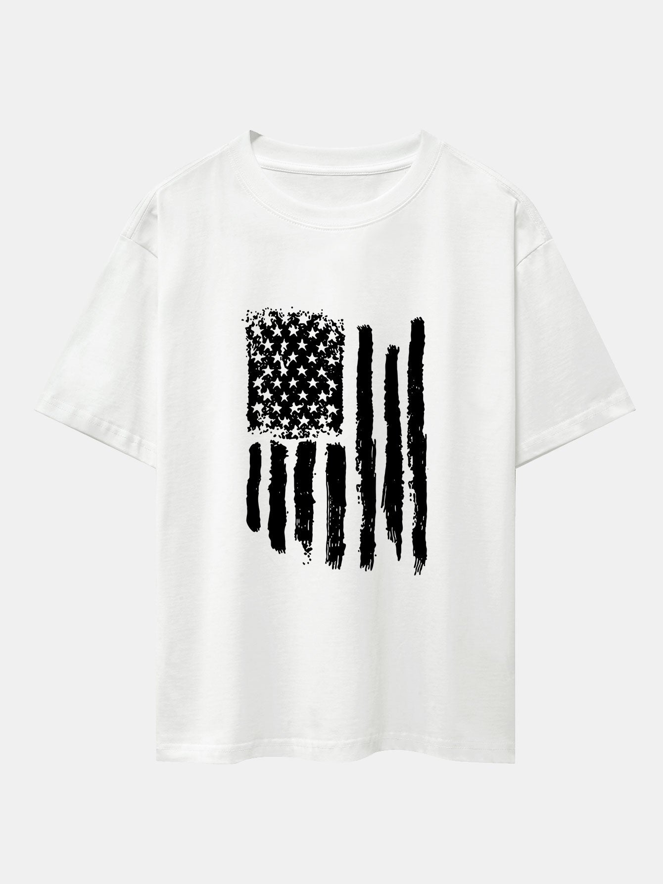 American Flag Print Drop Shoulder Oversize T-Shirt