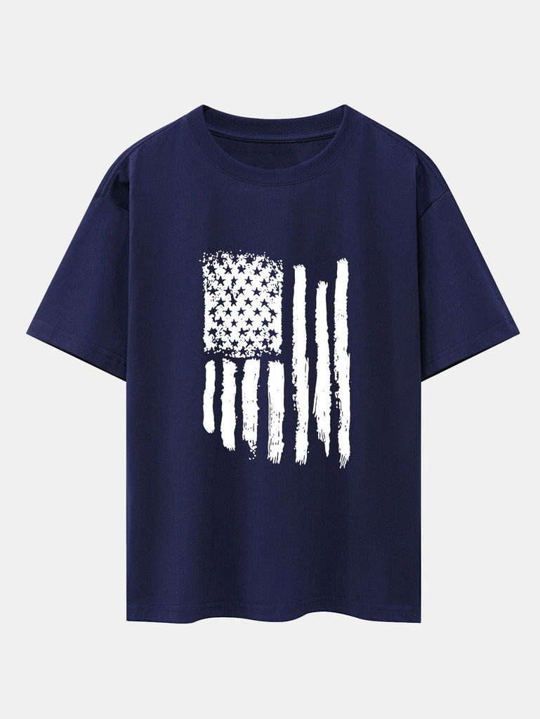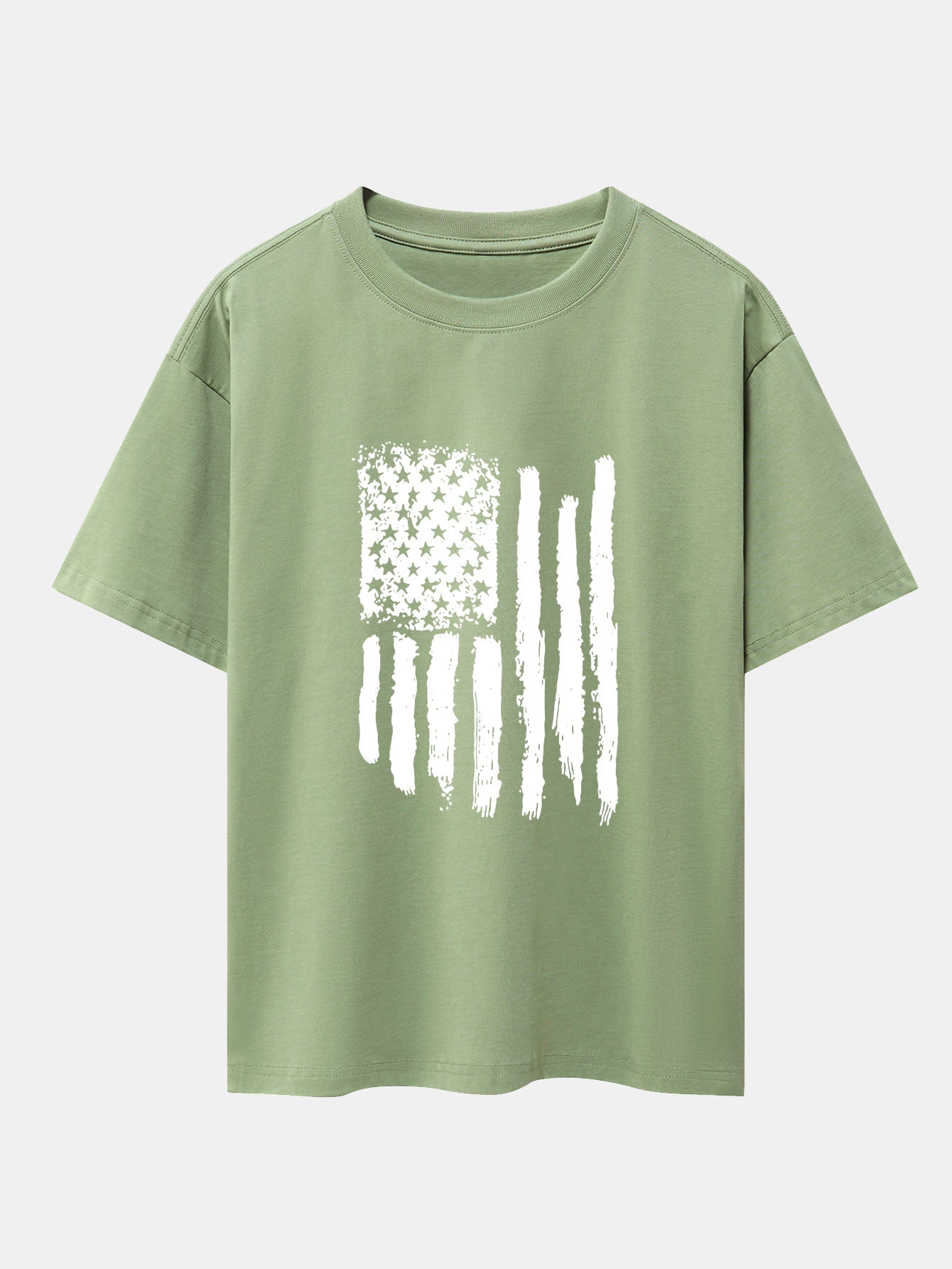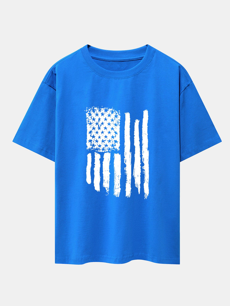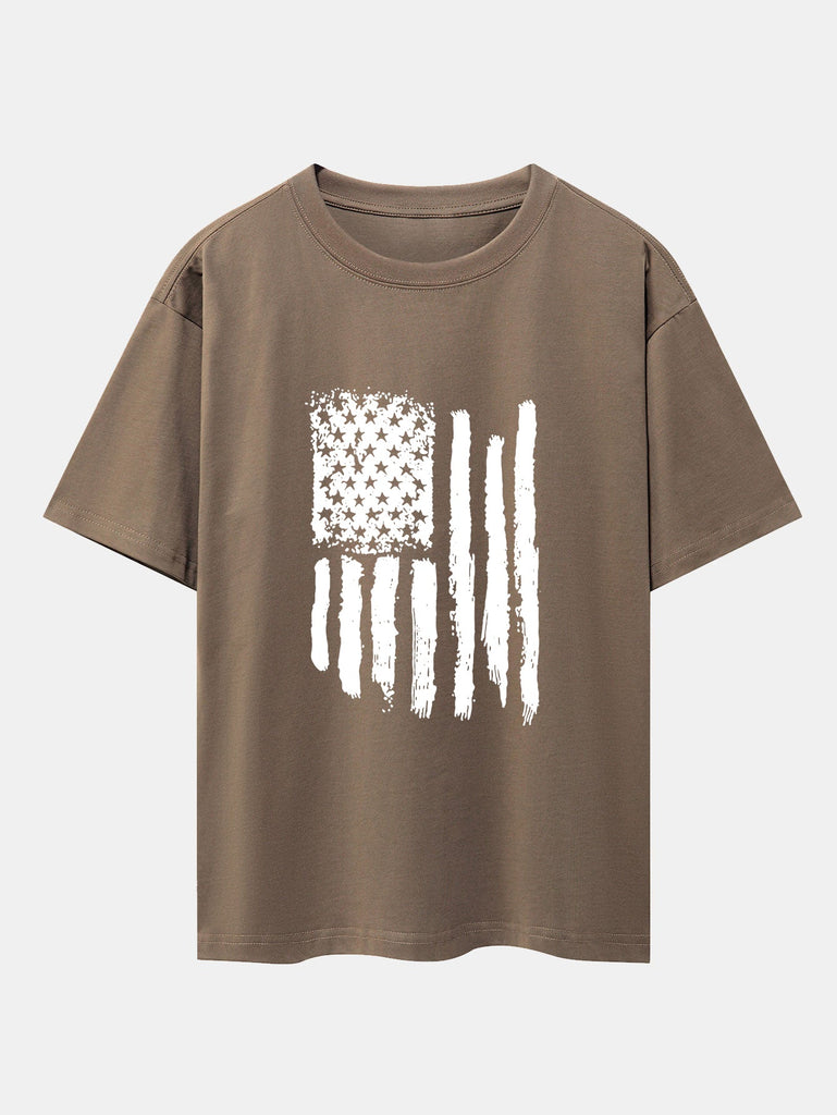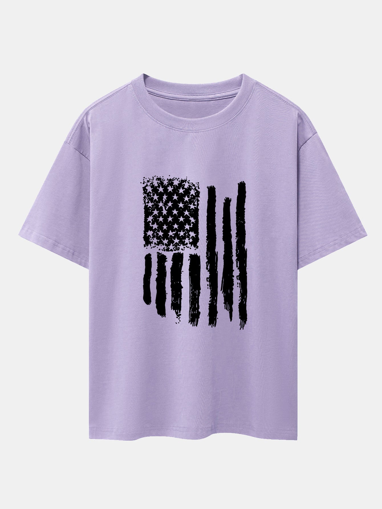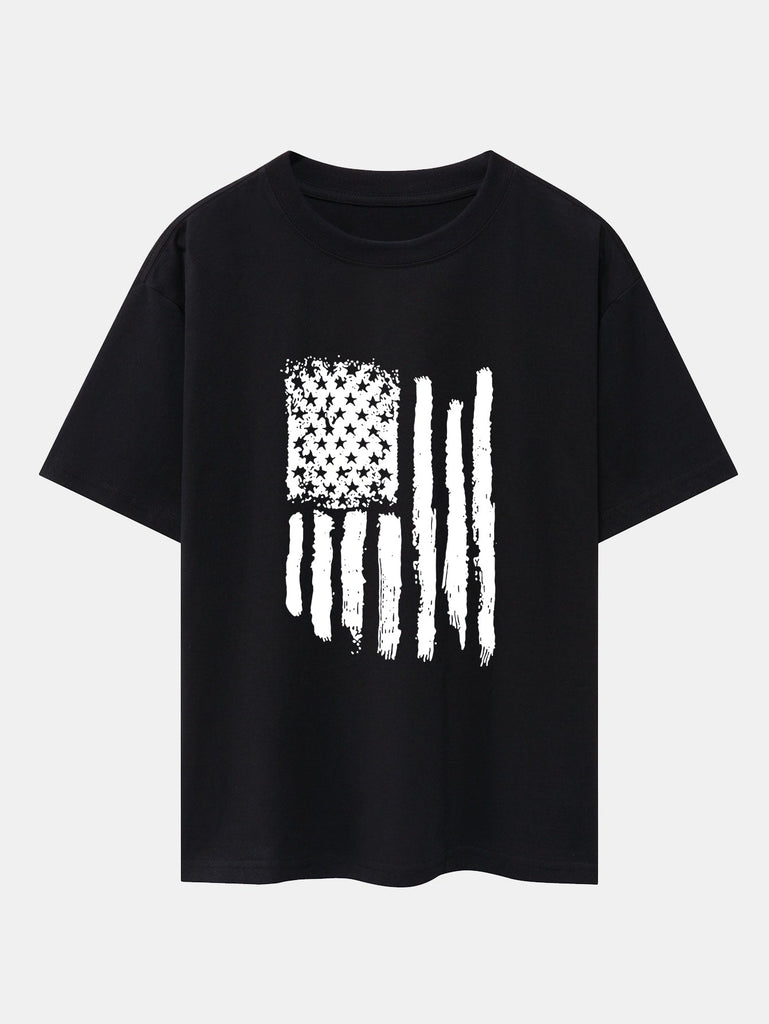 American Flag Print Drop Shoulder Oversize T-Shirt