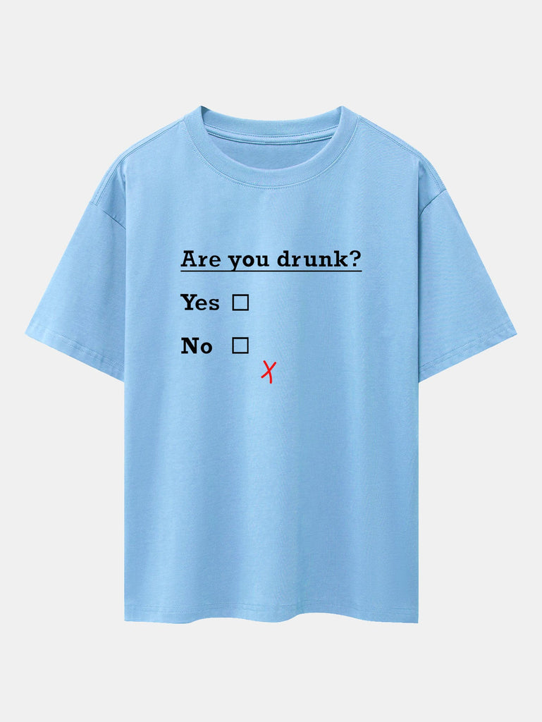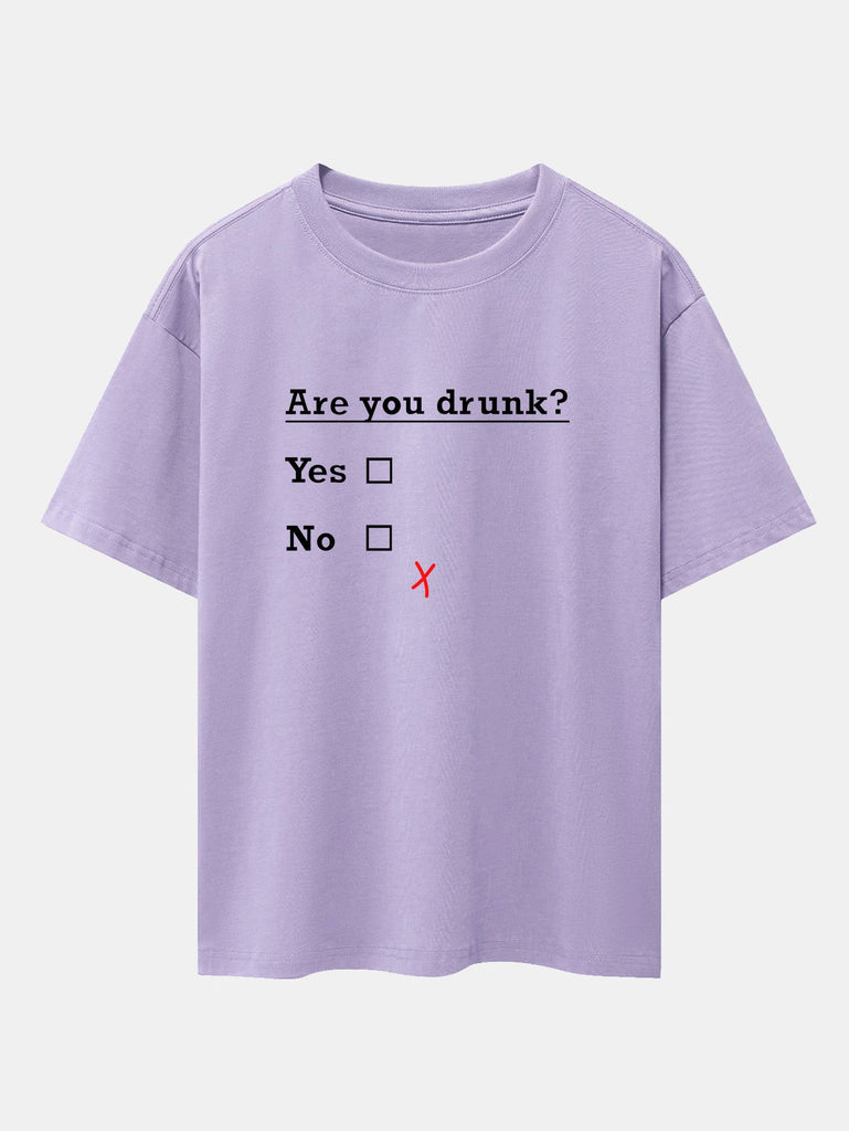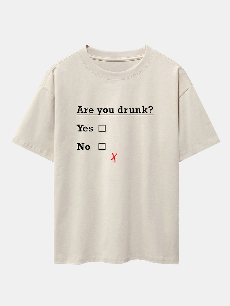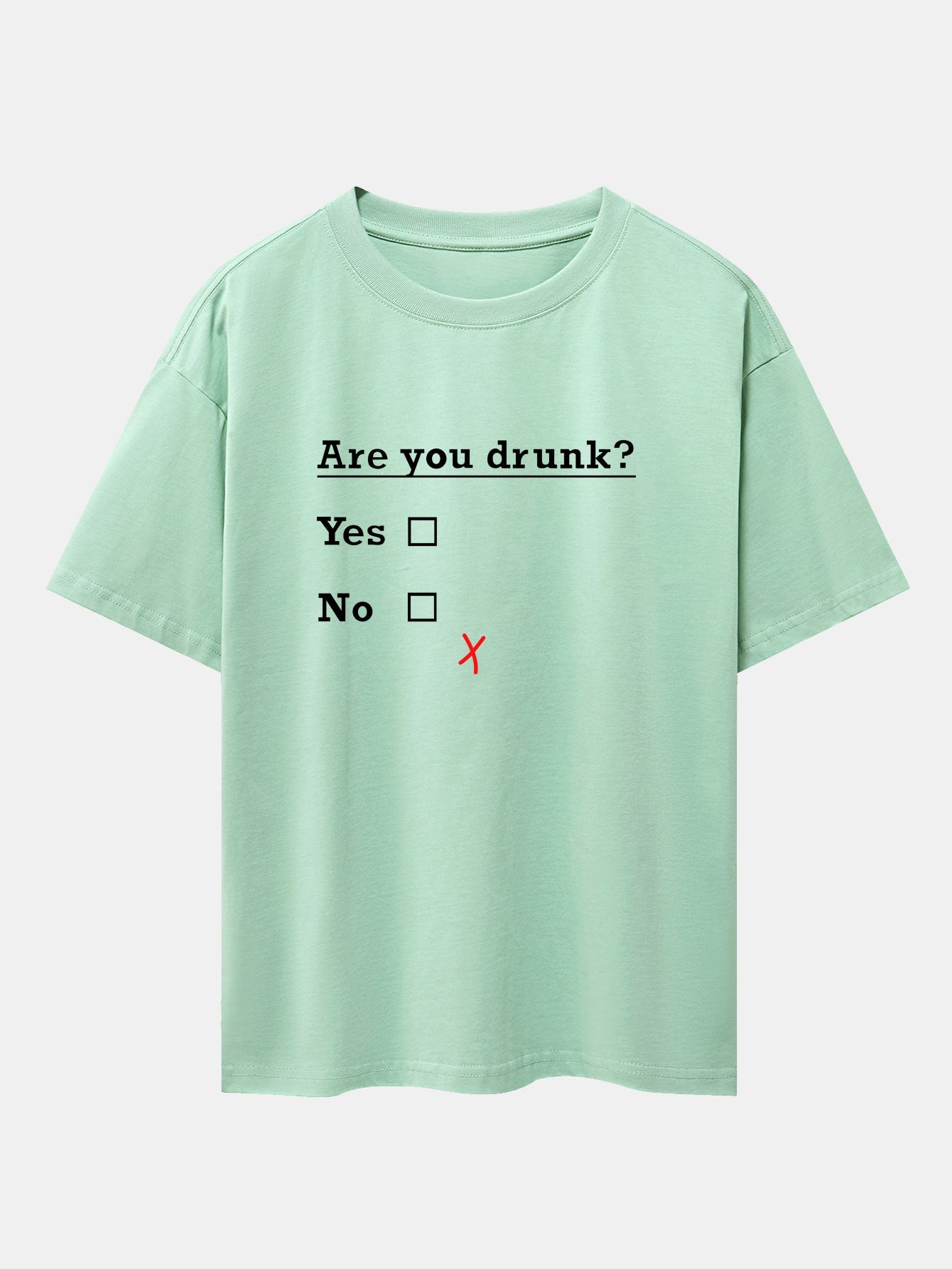 Are You Drunk Print Drop Shoulder Oversize T-Shirt