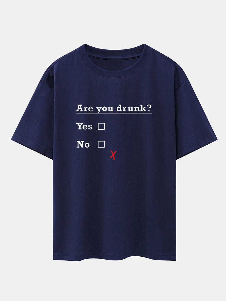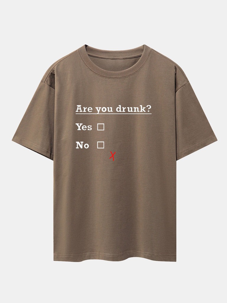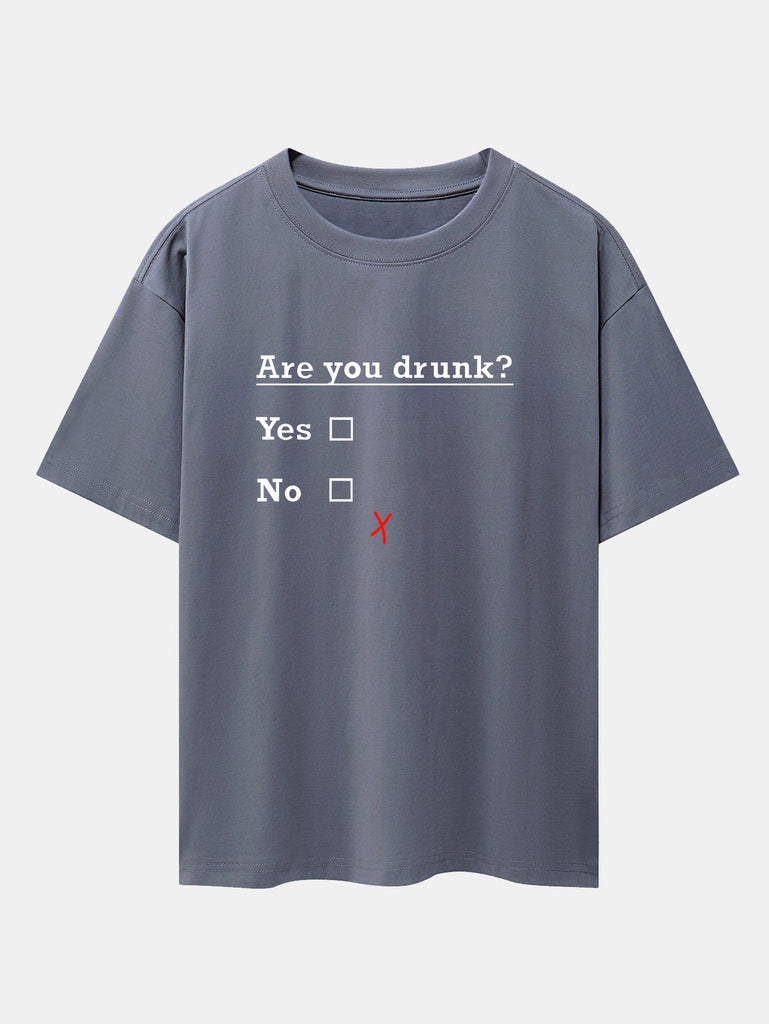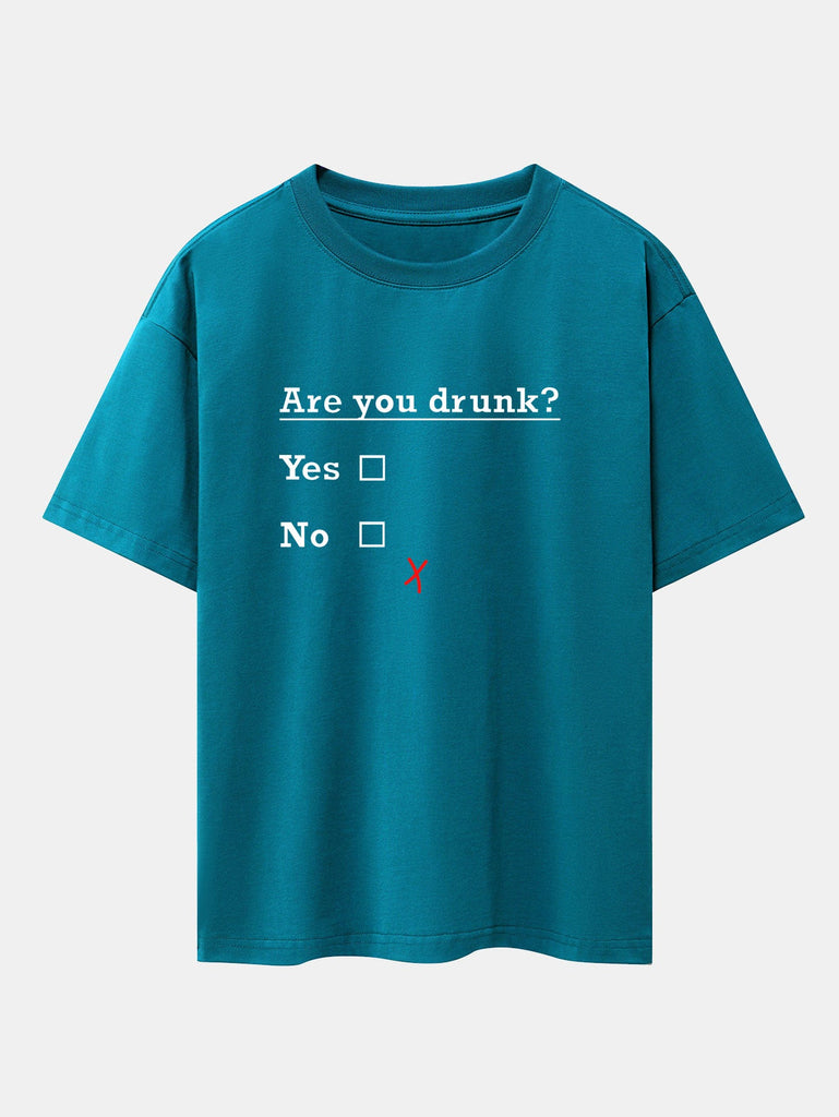 Are You Drunk Print Drop Shoulder Oversize T-Shirt