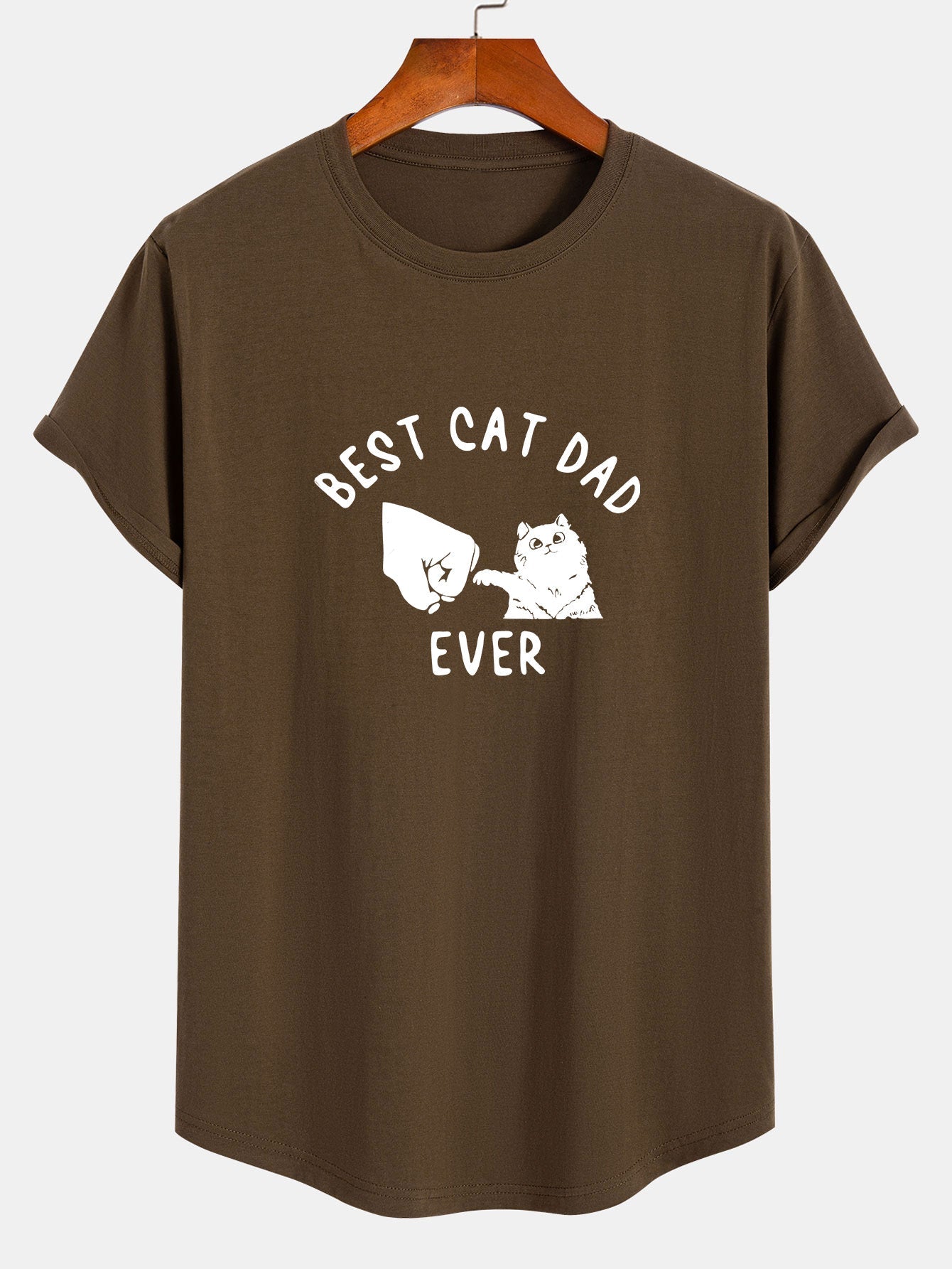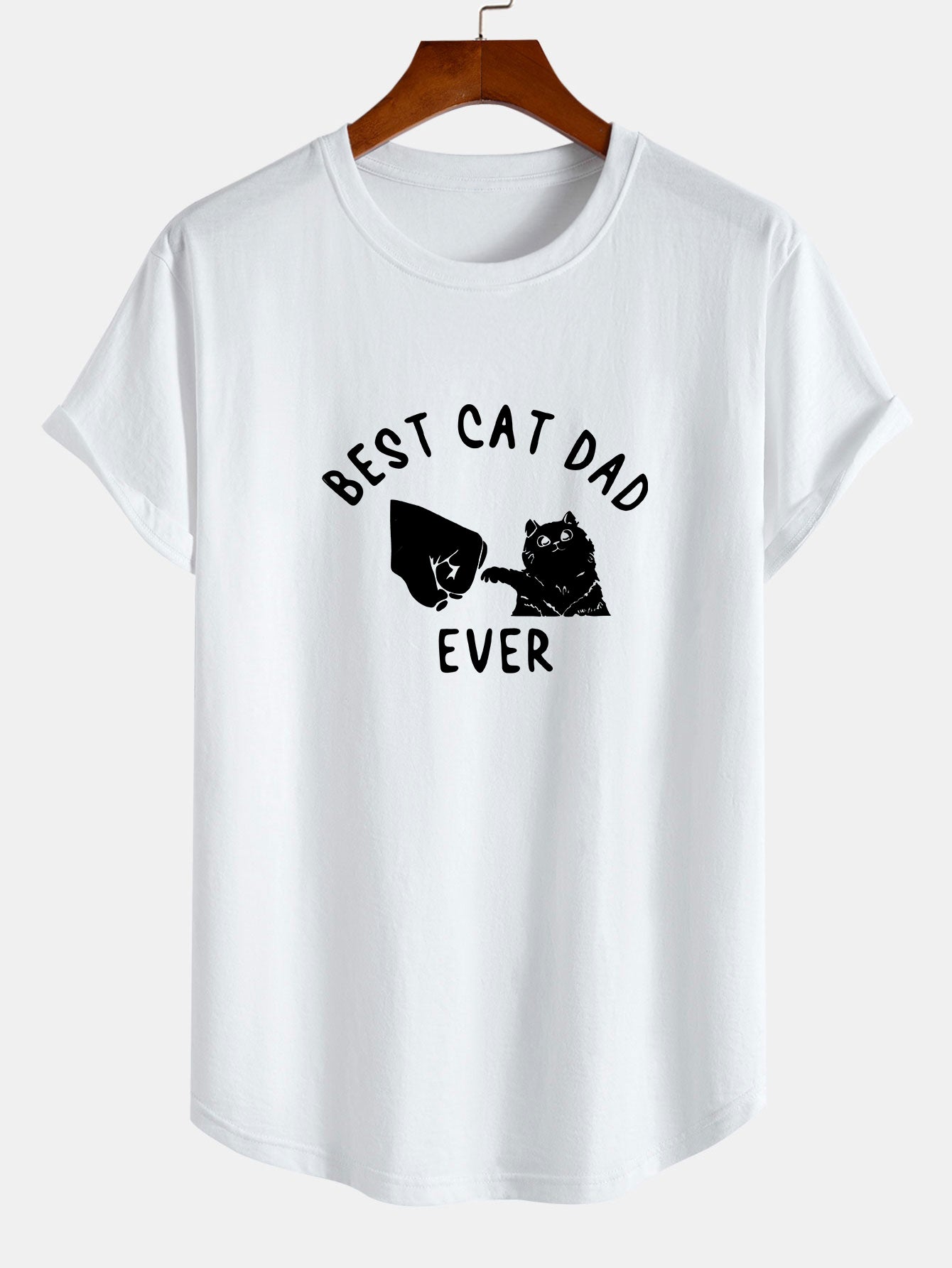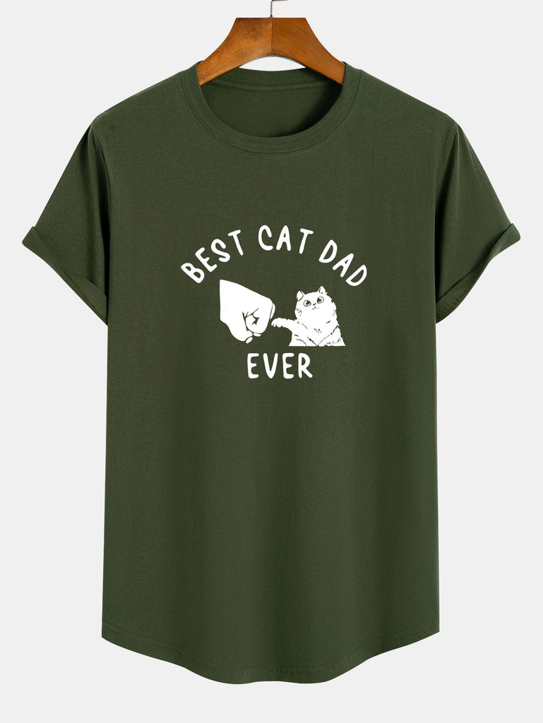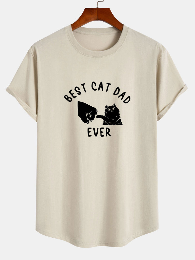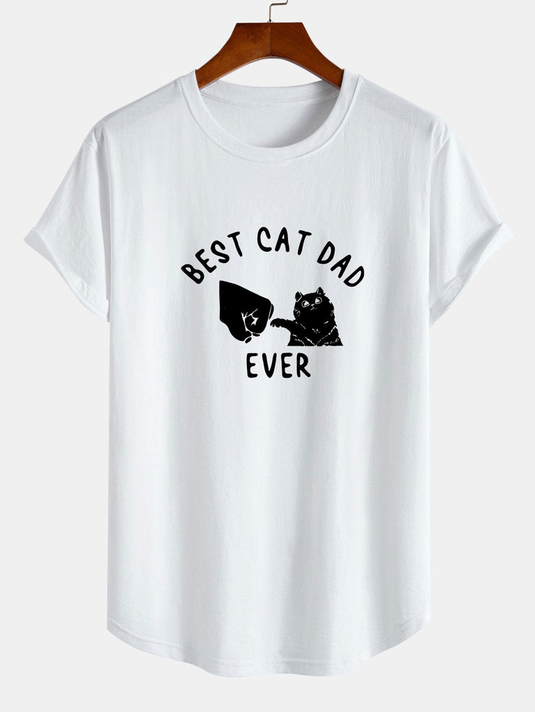 Best Cat Dad Ever Print Cotton Arc Hem T-Shirt
