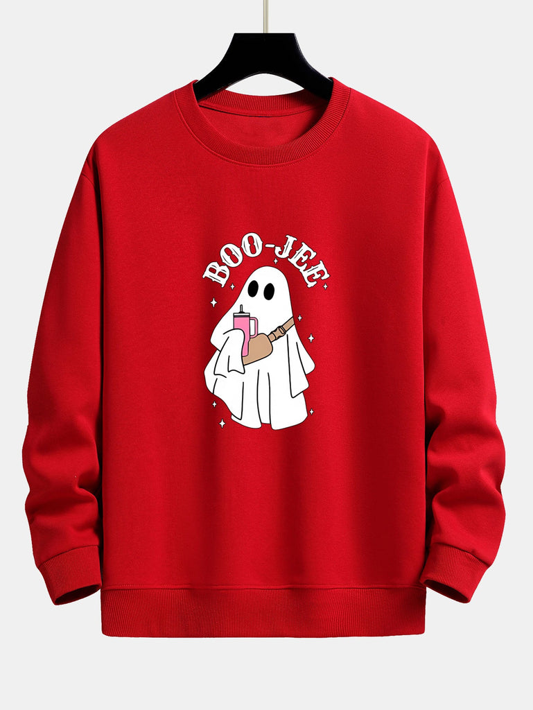 Show off your playful spooky style with our ghost print relax fit sweatshirt. Featuring a fun ghost graphic with the sassy phrase ¡°BOO JEE¡±, this sweatshirt blends Halloween vibes with a touch of humor and personality.