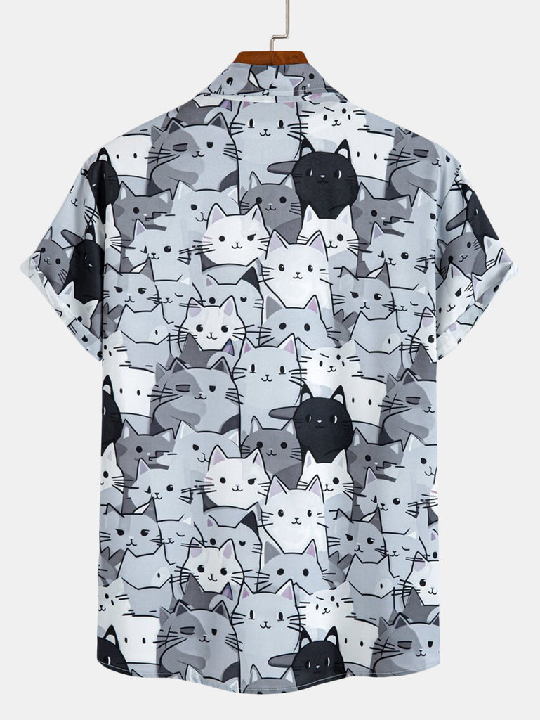 Featuring a short-sleeve button-up shirt covered in quirky cartoon cat graphics and matching drawstring swim shorts, this outfit is perfect for cat lovers and those who enjoy standing out. Lightweight, breathable, and full of personality, it¡¯s great for vacations, beach days, or lounging in style.