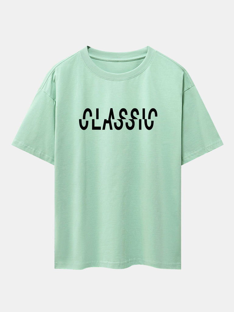 Keep it timeless with the classic print drop shoulder oversize T-shirt. Featuring a simple yet stylish graphic, this tee delivers everyday comfort with a modern streetwear edge. The oversized silhouette and drop shoulder design create a relaxed fit that¡¯s easy to wear and effortlessly cool.
