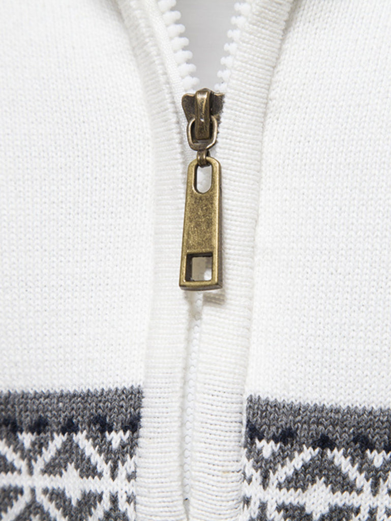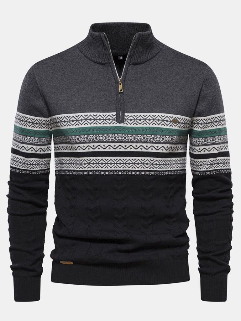 Contrast Geometric Jacquard Quarter-Zip Sweater