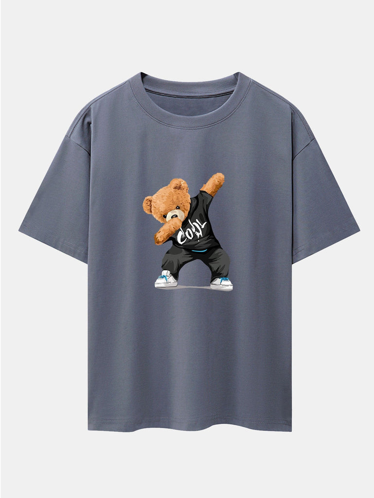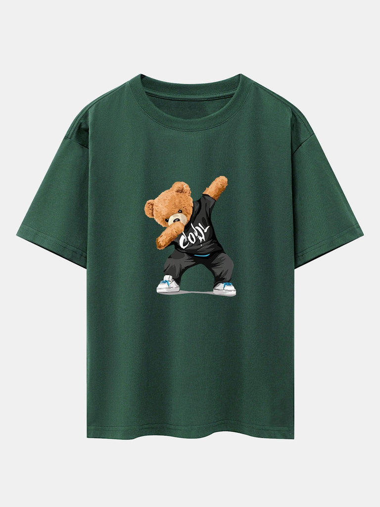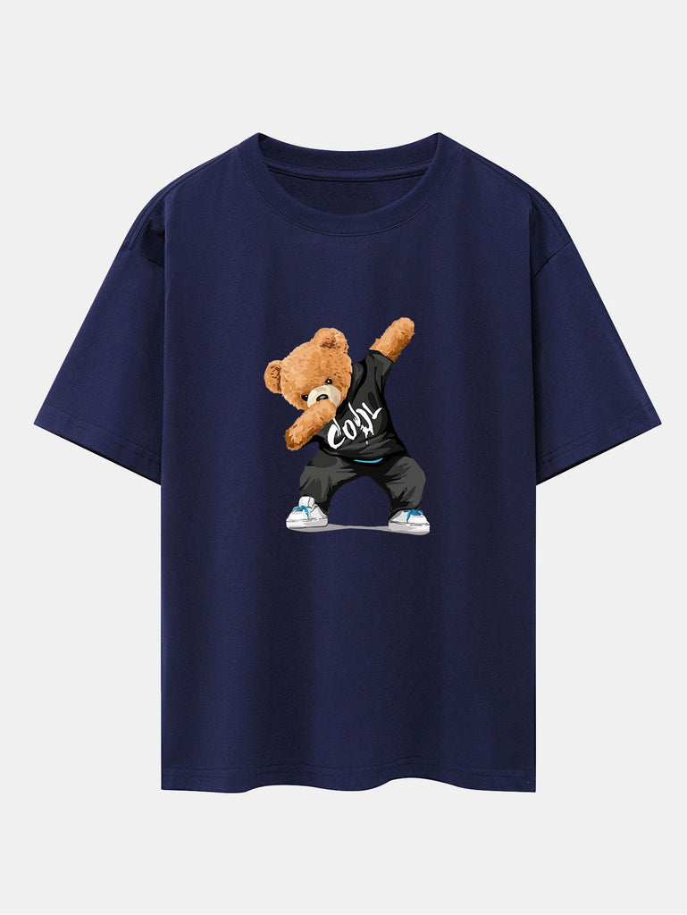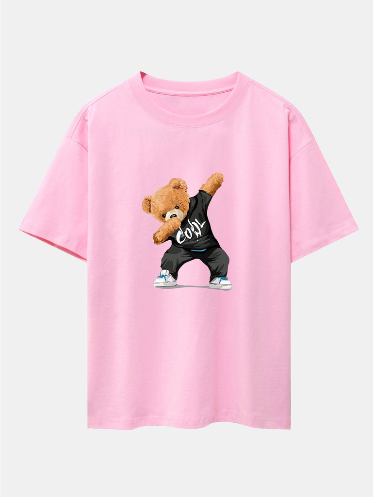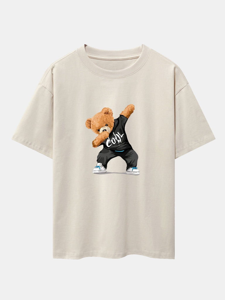 Cool Bear Print Drop Shoulder Oversize T-Shirt