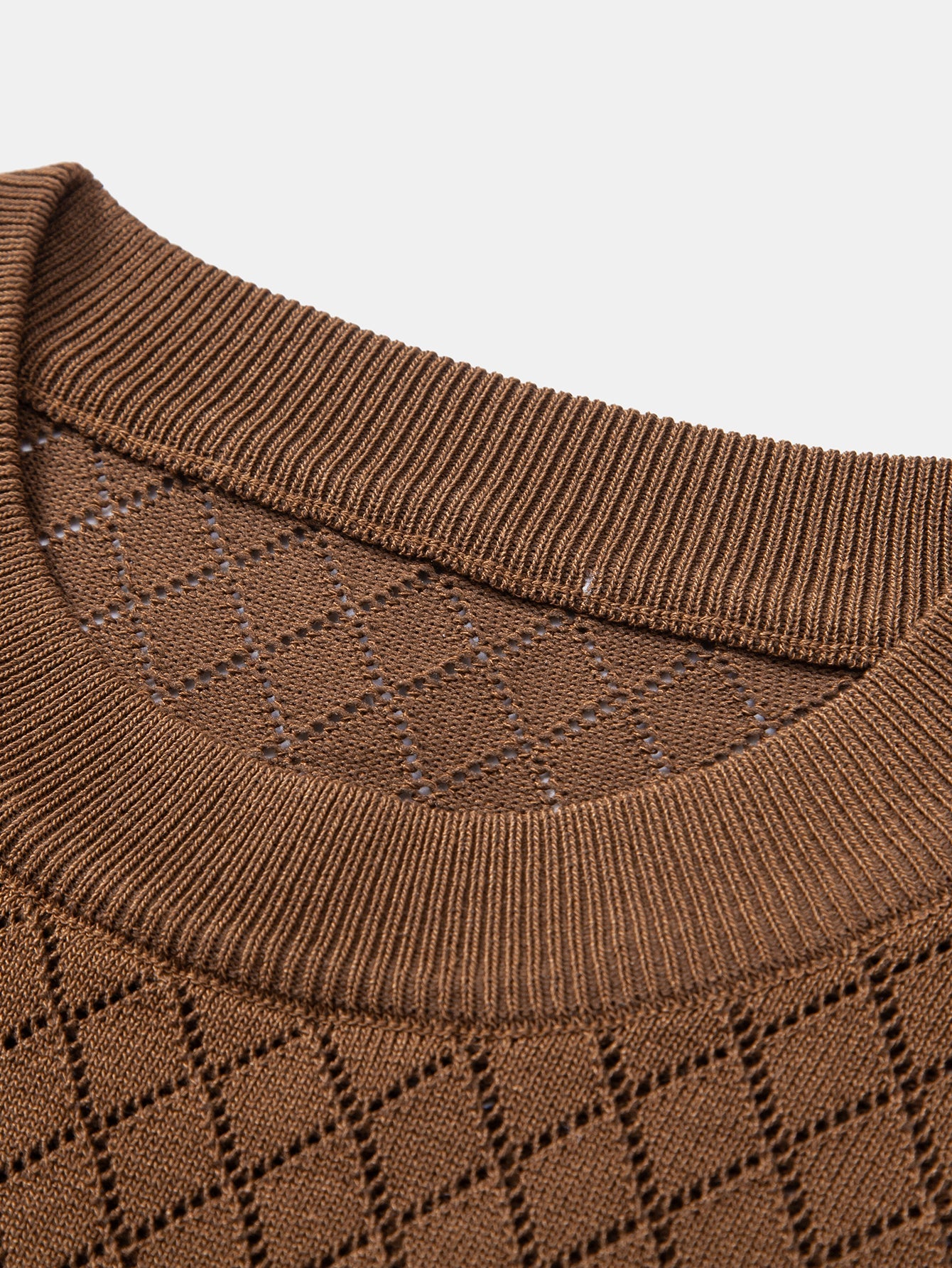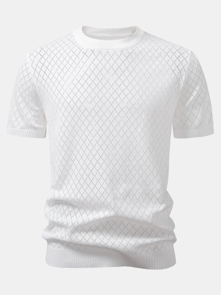 Featuring an airy crochet knit with bold geometric patterns, this tee blends vintage aesthetics with a modern edge. Its breathable, open-knit structure makes it ideal for warm-weather layering or as a standout piece on its own.Package Included: 1*T-Shirt