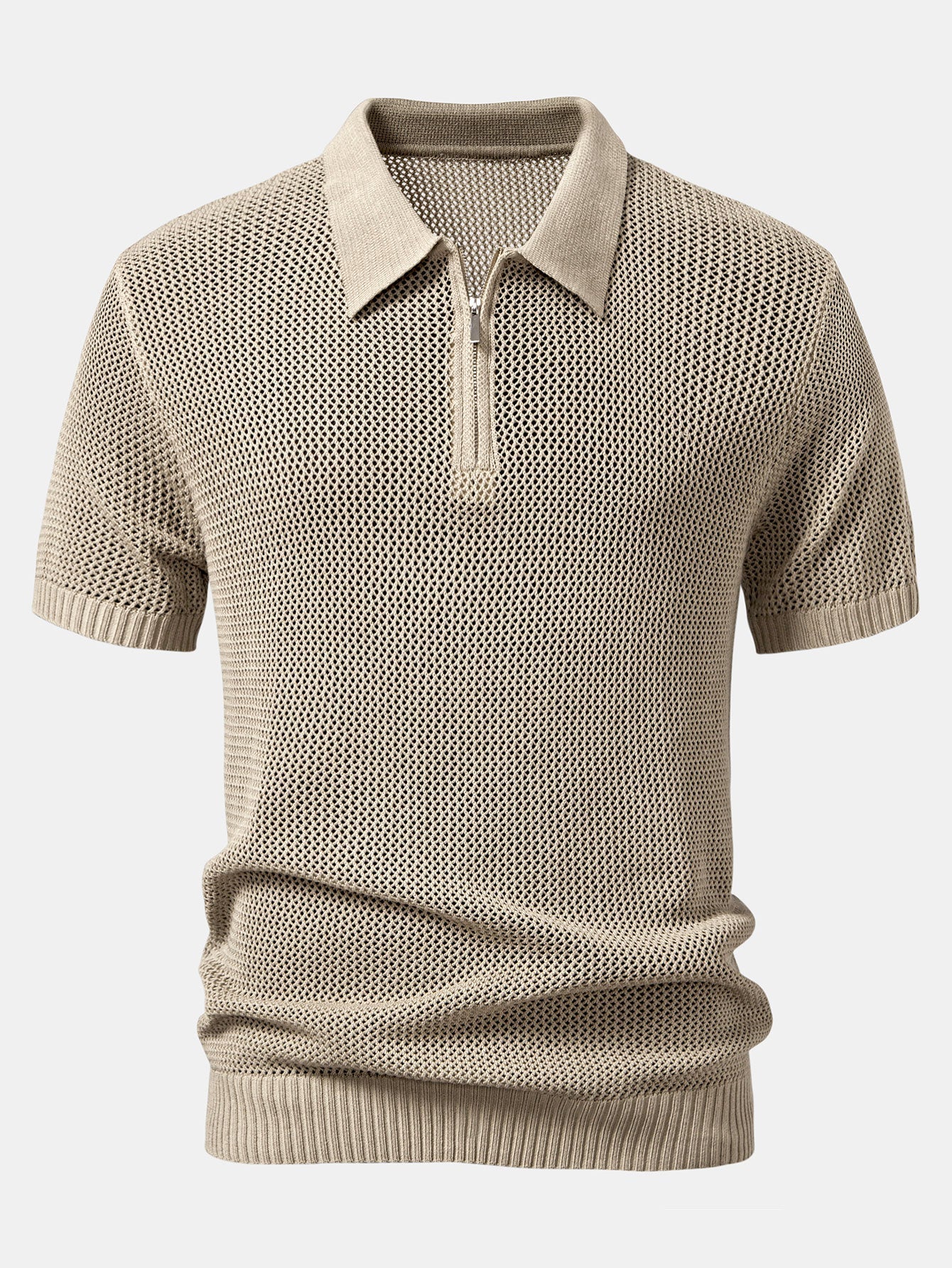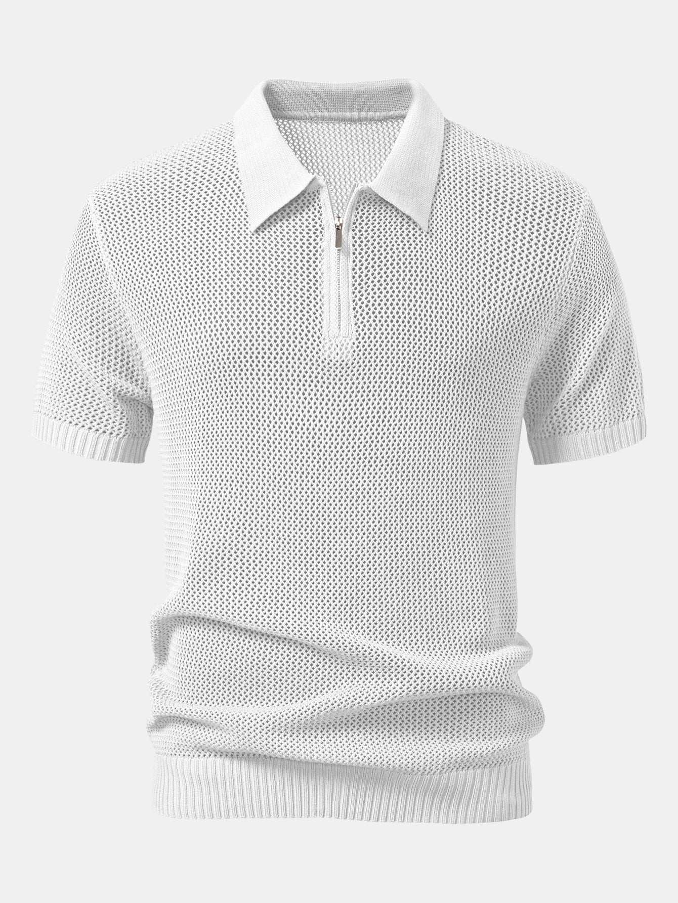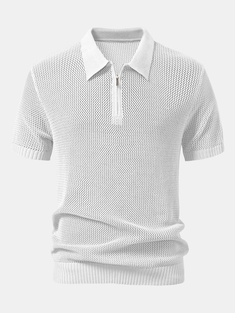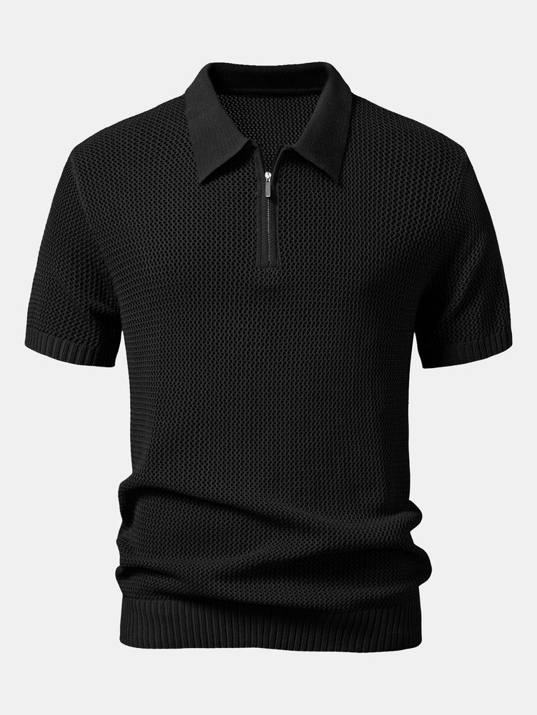 Designed with breathable eyelet fabric, it provides excellent ventilation and comfort¡ªideal for warm weather. The zip-up front and minimalist silhouette bring a contemporary edge to the classic polo style. Whether you're heading to a casual outing or a laid-back event, this shirt blends performance with sharp looks.