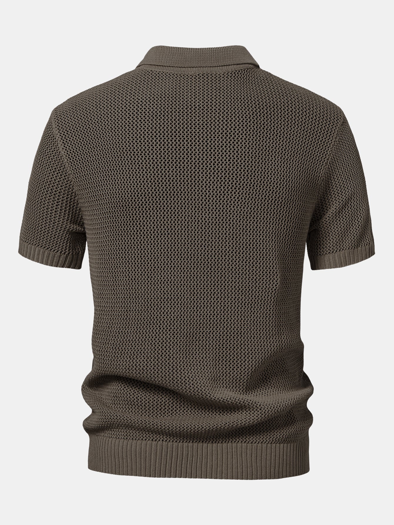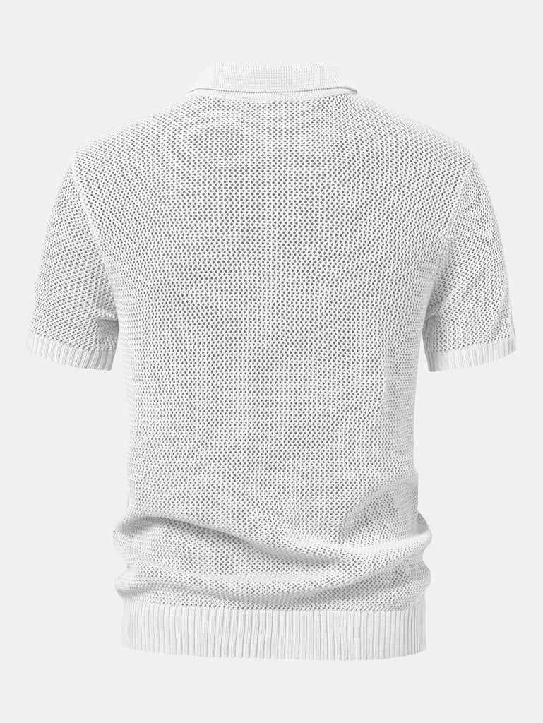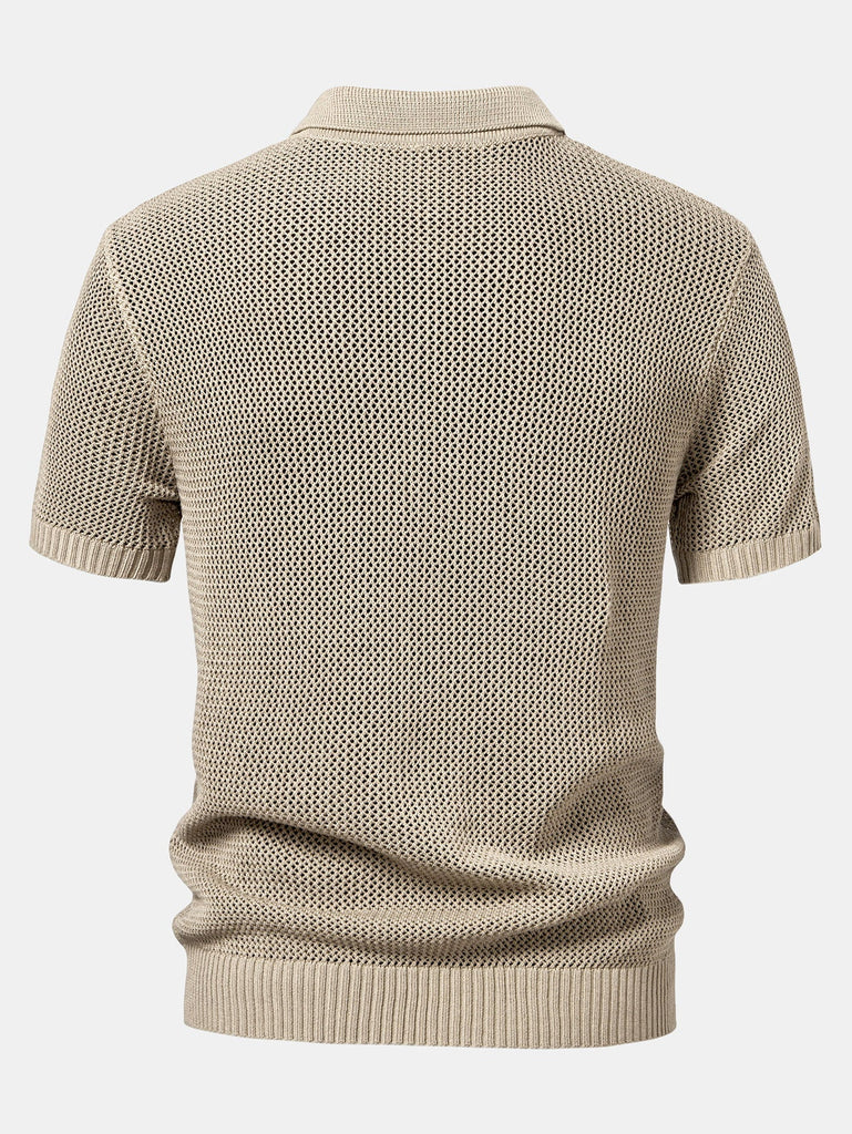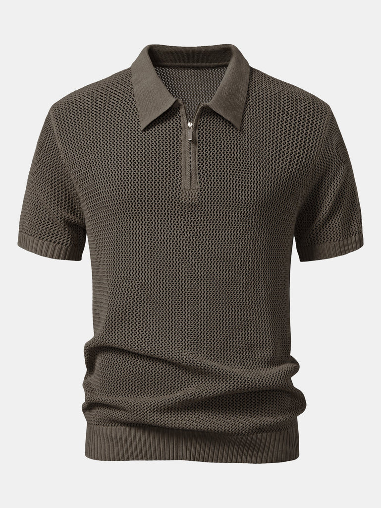 Designed with breathable eyelet fabric, it provides excellent ventilation and comfort¡ªideal for warm weather. The zip-up front and minimalist silhouette bring a contemporary edge to the classic polo style. Whether you're heading to a casual outing or a laid-back event, this shirt blends performance with sharp looks.