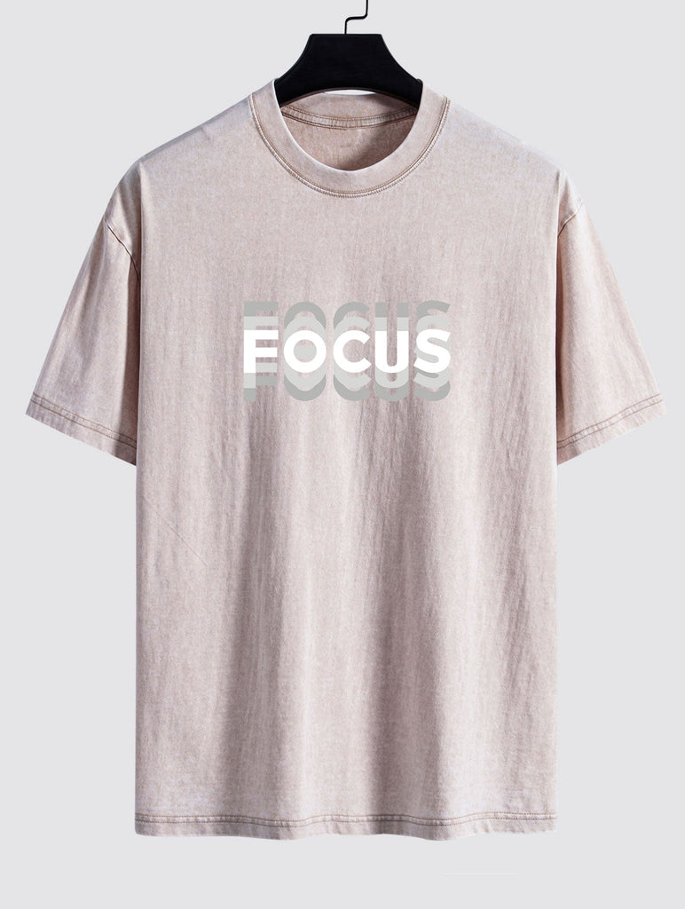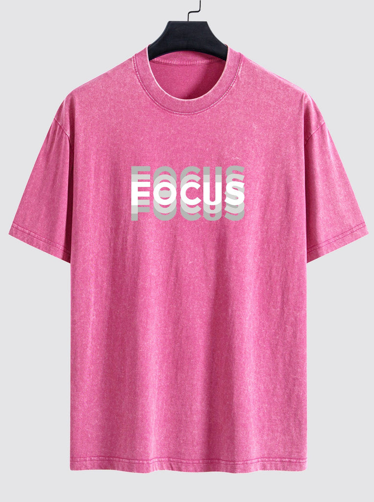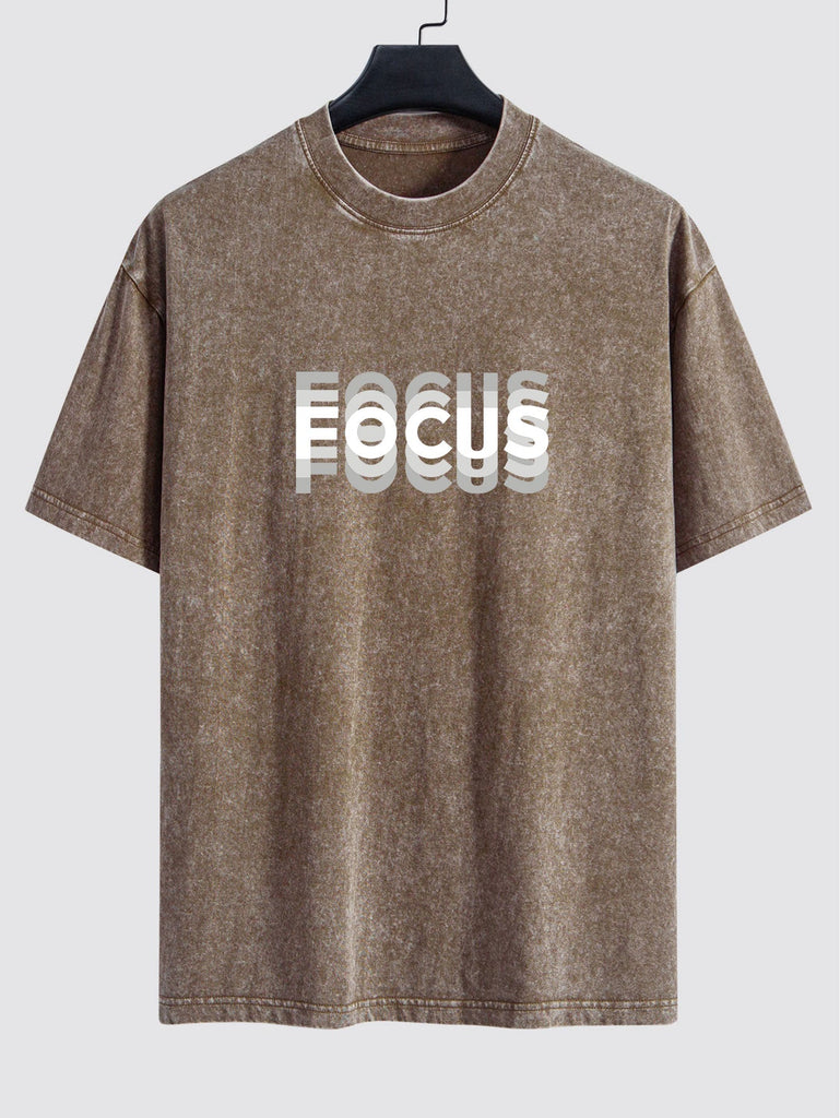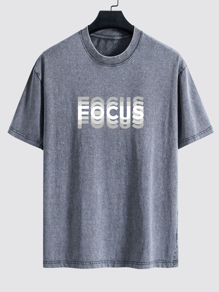 Focus Slogan Print Relax Fit Washed Distressed T-Shirt