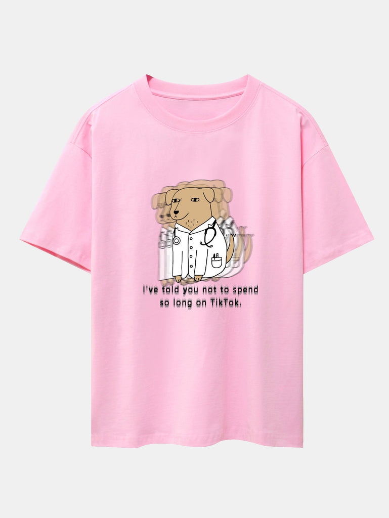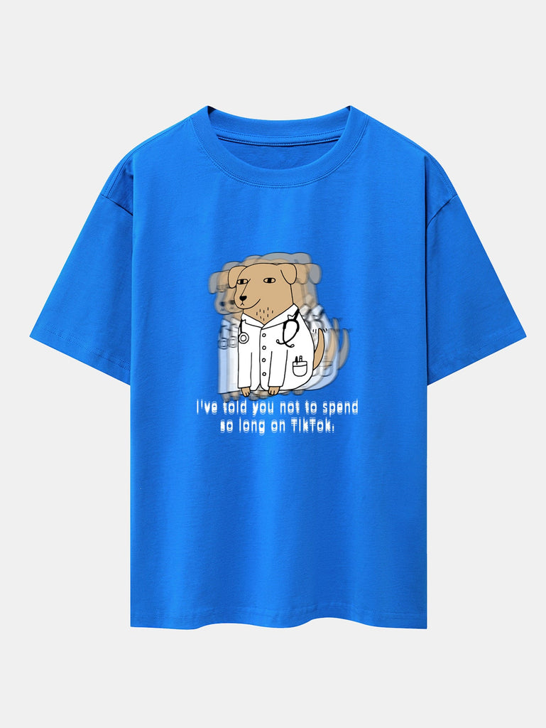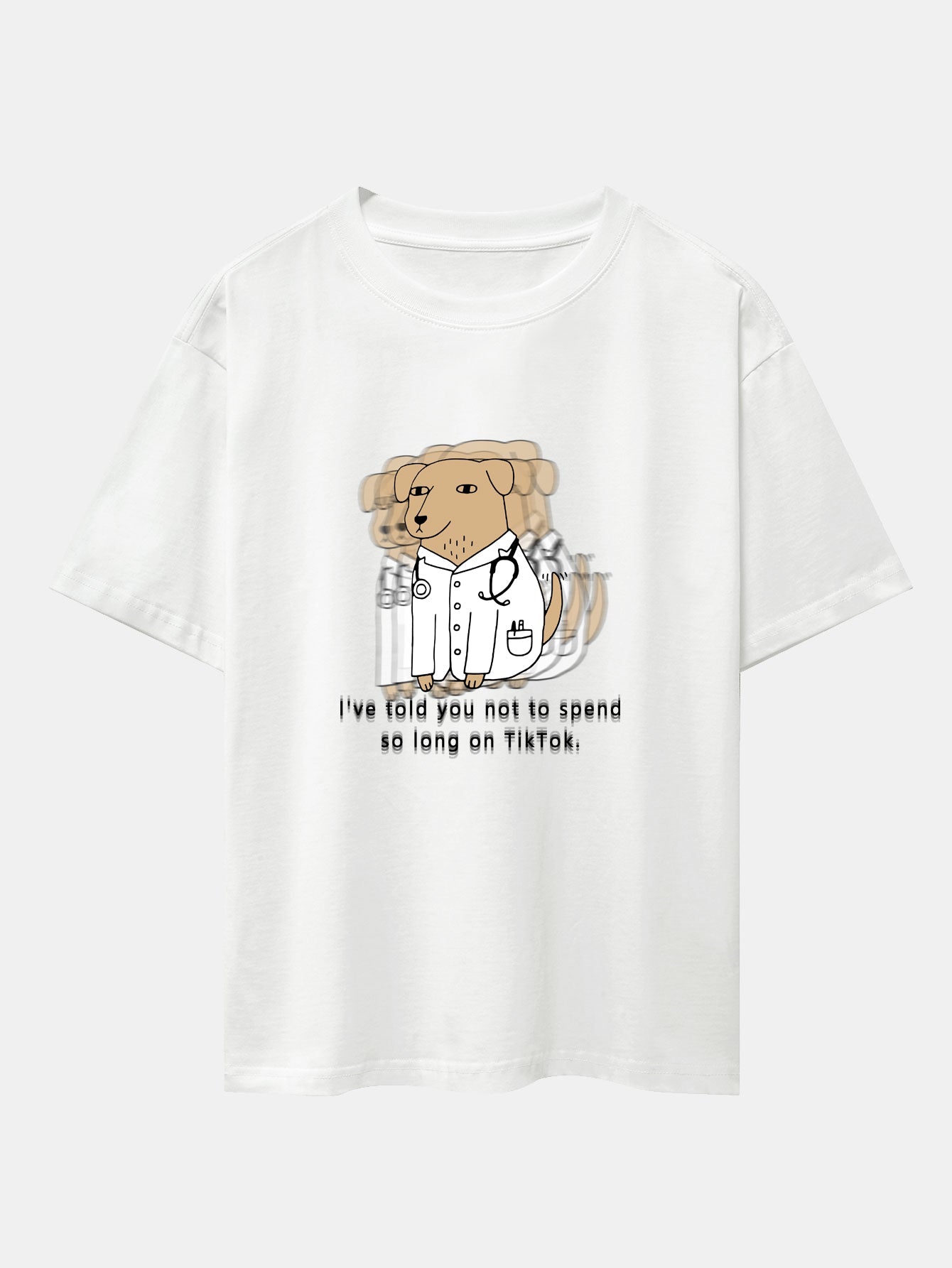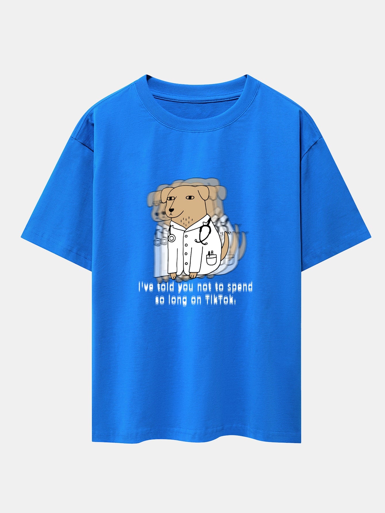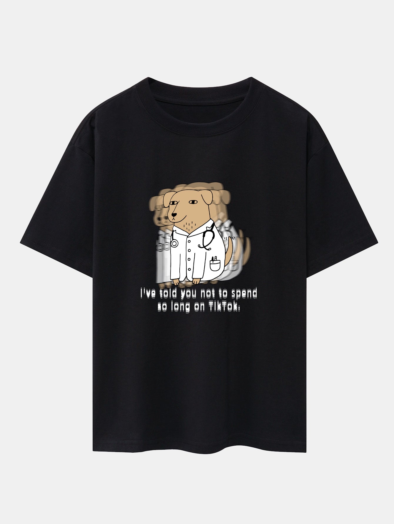Funny Doctor Dog Print Drop Shoulder Oversize T-Shirt